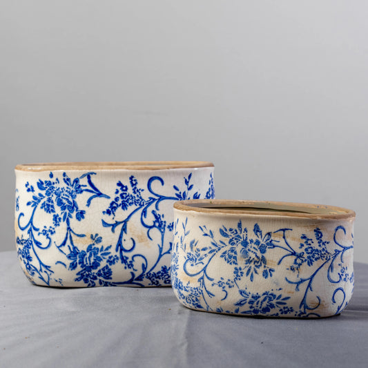 Vaso Flores Azul e Branco
