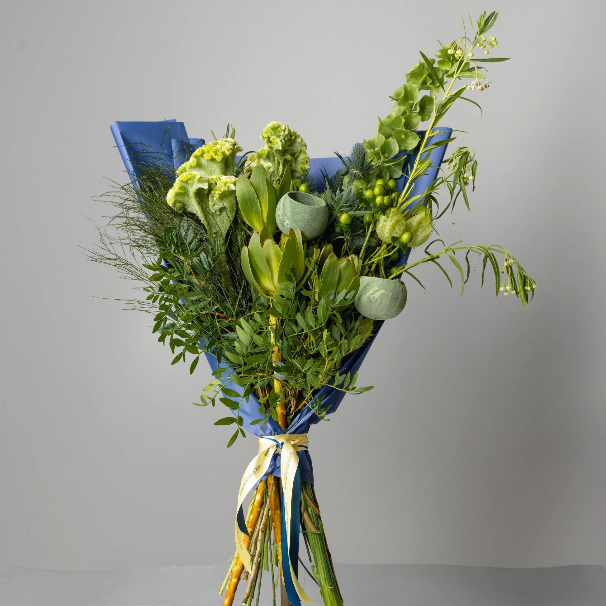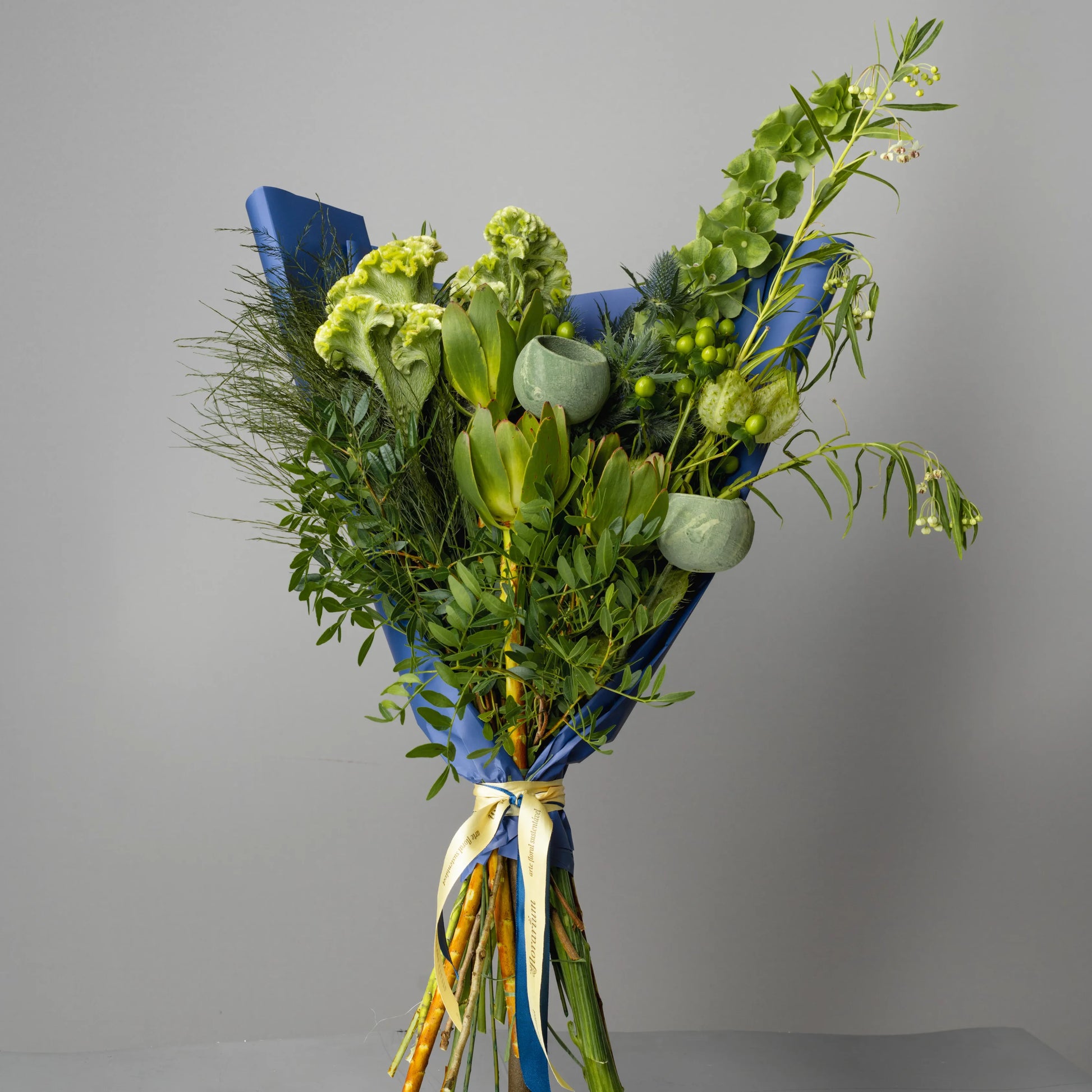The “Strength of Nature” bouquet embodies the strength and harmony of nature. The green wildflowers, carefully gathered and wrapped in dark blue paper, symbolize strength and resilience. This bouquet is perfect for a man who values the natural beauty and tranquility of nature. “Strength of Nature” is a reflection of inner strength, confidence and stylish simplicity, making it an excellent gift for any occasion.