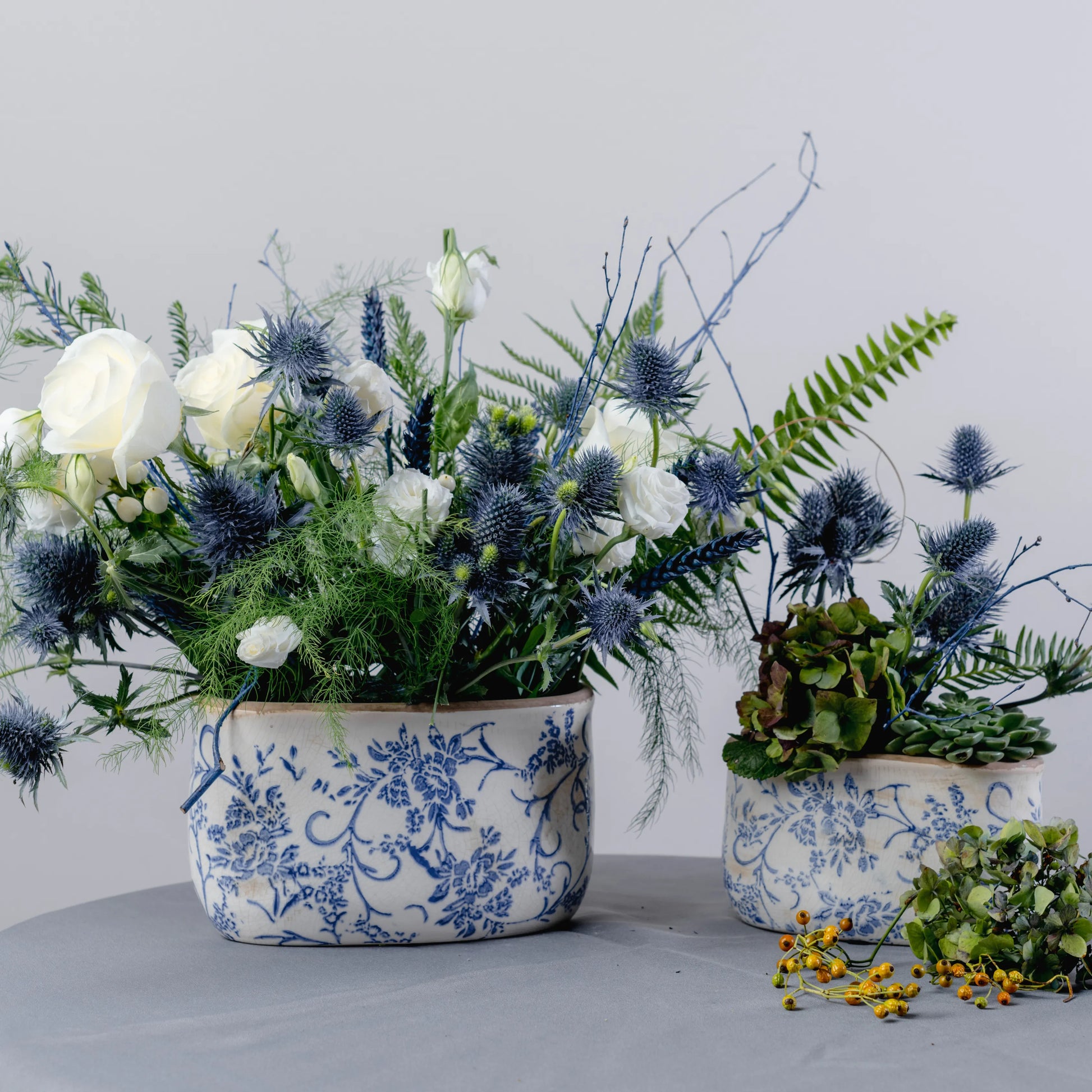Ajoutez une touche de charme classique à votre décor avec ce vase à fleurs ou plantes blanches, orné de délicates fleurs bleues dans un style vintage. Avec un design inspiré de la porcelaine antique, ce vase présente une belle peinture de fleurs bleues, qui rehausse la douceur du fond blanc, créant une combinaison harmonieuse et élégante. Réalisée avec le souci du détail, sa finition vieillie apporte un sentiment d'authenticité et de nostalgie, parfait pour mettre en valeur des compositions florales, des herbes aromatiques ou des plantes ornementales. Idéal pour ajouter une touche romantique et sophistiquée à n'importe quel environnement, du salon aux balcons ou cuisines