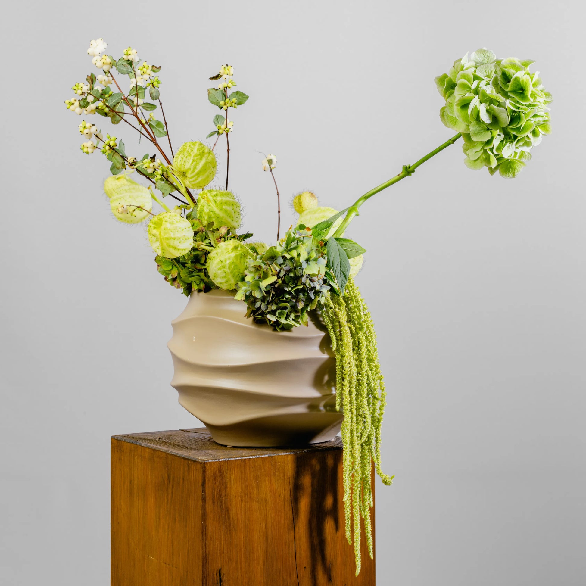 Enriqueça sua decoração com a taça de cerâmica em forma de ondas, uma peça única que combina elegância e movimento em seu design. Inspirada nas formas orgânicas e fluídas da natureza, esta taça possui bordas onduladas que conferem dinamismo e sofisticação. Disponível em três tonalidades encantadoras — o azul claro que remete à tranquilidade do mar, o beige neutro que traz uma sensação de leveza e o castanho escuro com acabamento em imitação de madeira para um toque rústico e natural. Perfeita para exibir frutas, arranjos decorativos ou como peça central em mesas e aparadores, esta taça de cerâmica une beleza e versatilidade, complementando qualquer estilo de decoração com um toque de arte e personalidade.