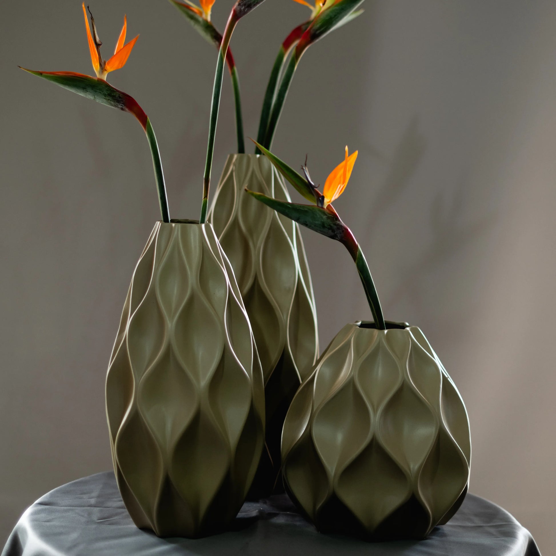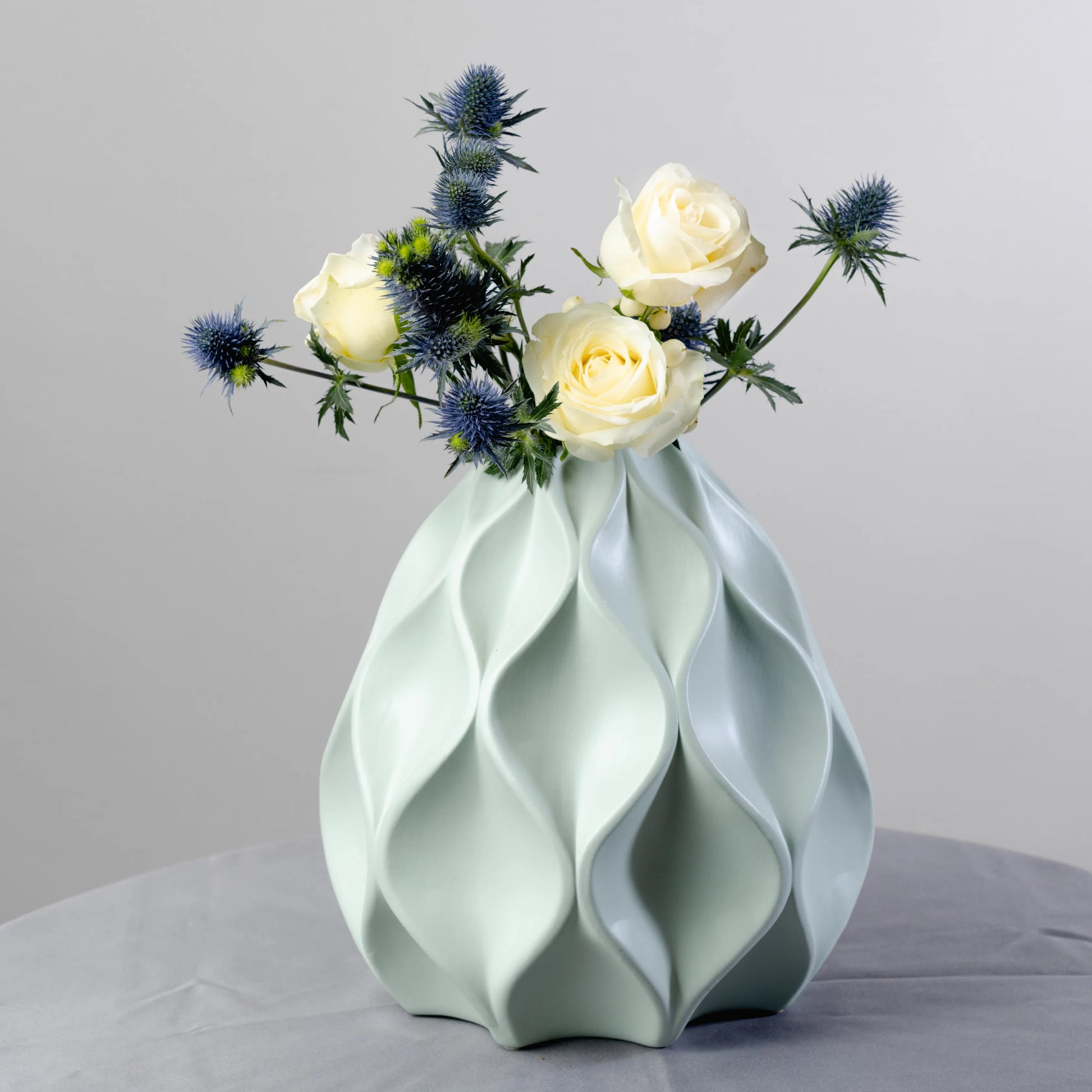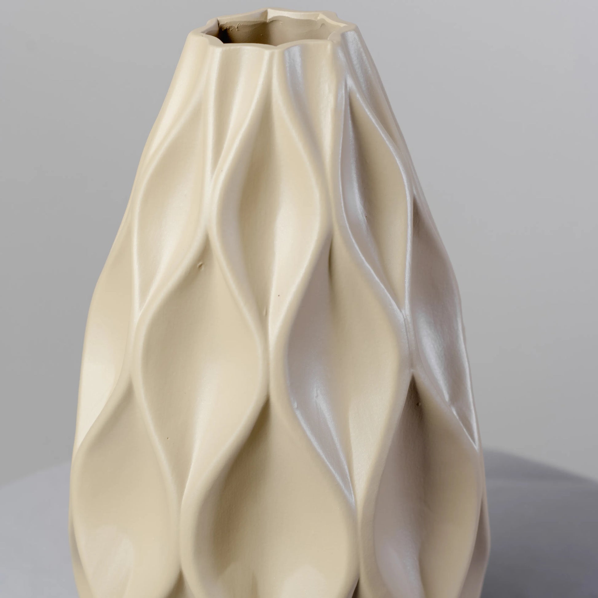 Adicione um toque de estilo e textura à sua decoração com este vaso decorativo de cerâmica, adornado com um elegante efeito losango. Com um design único que combina formas geométricas e cores suaves, este vaso apresenta um padrão de losangos em relevo, que cria um efeito visual interessante e contemporâneo. Disponível em duas tonalidades encantadoras — azul claro, que evoca serenidade e frescor, e beige, que traz uma sensação de aconchego e neutralidade. Ideal para exibir flores frescas, secas ou simplesmente como uma peça de destaque, este vaso une a simplicidade da cerâmica com um design sofisticado, tornando-o perfeito para qualquer ambiente que busca um toque de modernidade e charme atemporal.