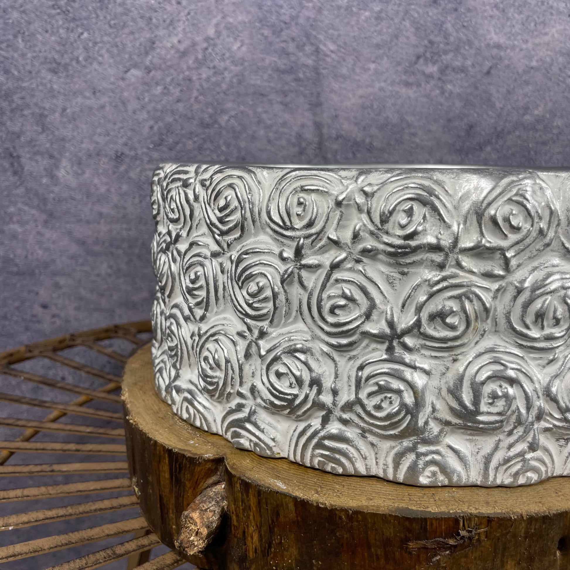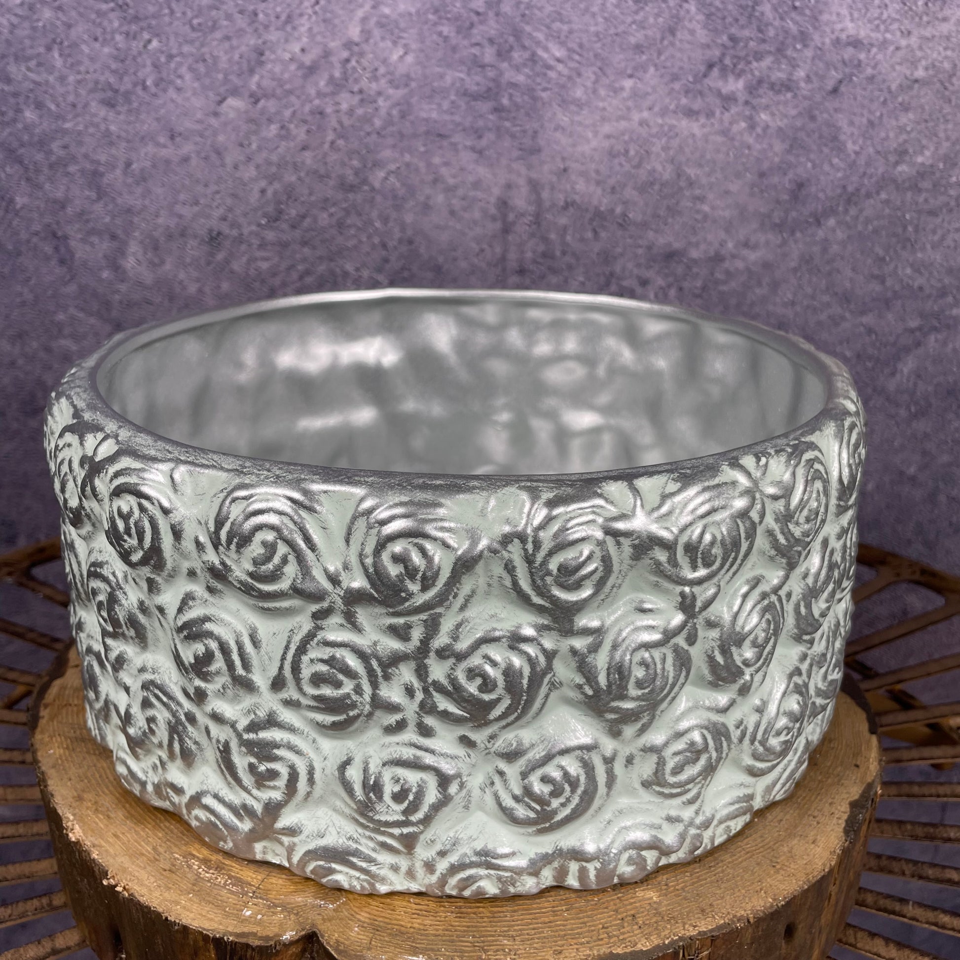 Esta taça em cerâmica, com delicado relevo em forma de flores, oferece uma combinação perfeita de elegância e suavidade. Na cor branco com detalhes prateados, exibe um charme subtil e sofisticado, ideal para trazer frescor e harmonia à sua mesa ou espaço decorativo.