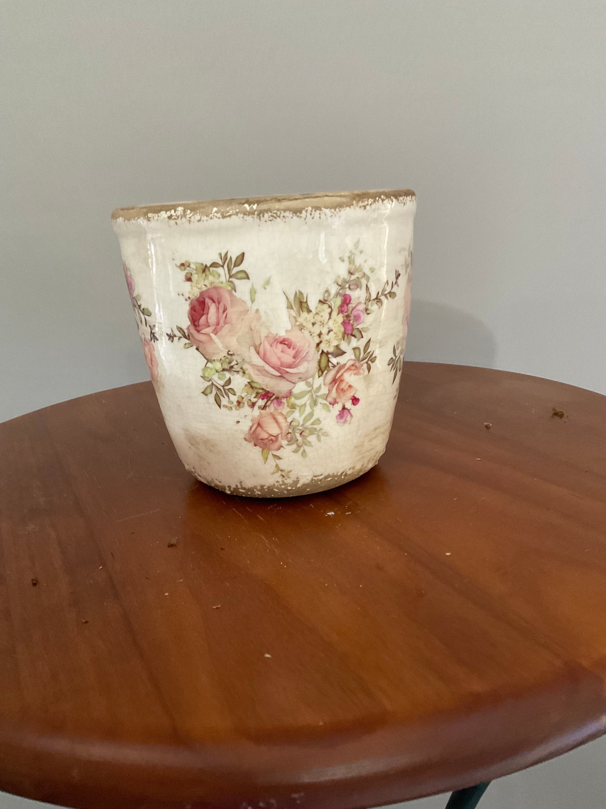 Vaso de Cerâmica Estilo Vintage – Efeito Envelhecido com Rosas de Jardim