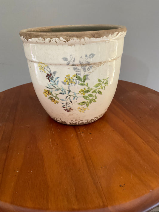 Vaso-pot de Cerâmica Estilo Vintage – Branco Sujo com Flores Silvestres