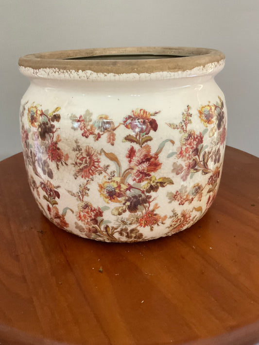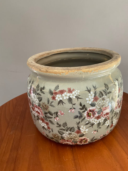 Vaso de Cerâmica Estilo Vintage – Efeito Envelhecido com Flores Bordô
