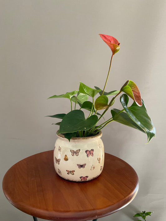 Vaso em Forma de Chávena com Asa – Estilo Jardim Vintage com Borboletas
