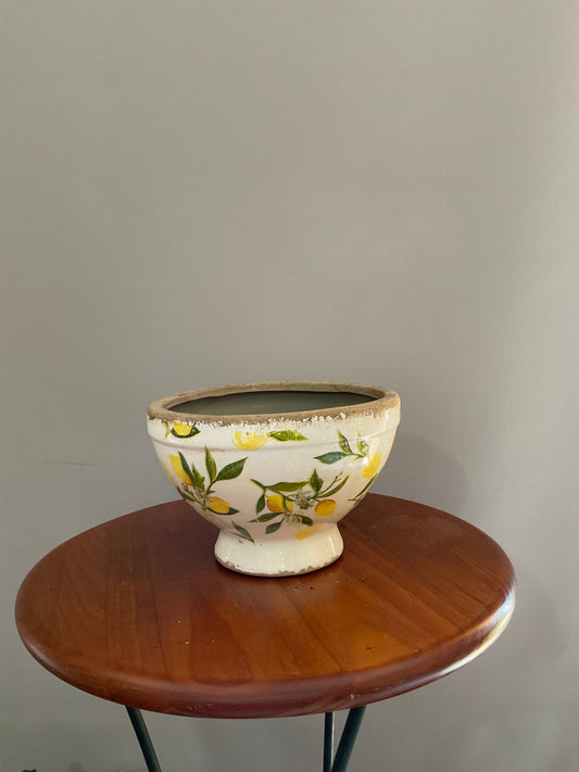 Vaso de Cerâmica Tipo Taça com Pé – Estilo Vintage com Limões