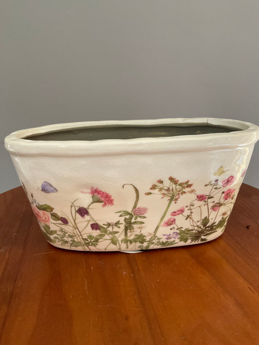 Vaso de Cerâmica em Forma de Barco – Estilo Vintage com Flores Silvestres