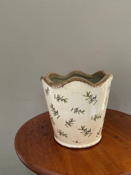 Vaso de Cerâmica Estilo Vintage Mediterrânico – Branco Envelhecido com Azeitonas