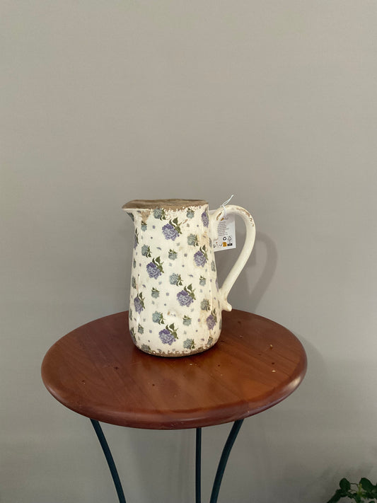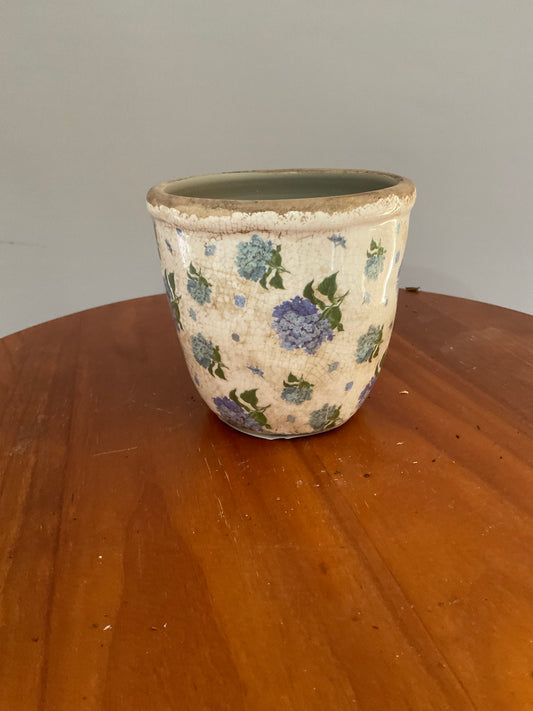 Vaso de Cerâmica Vintage com Hortênsias Azuis