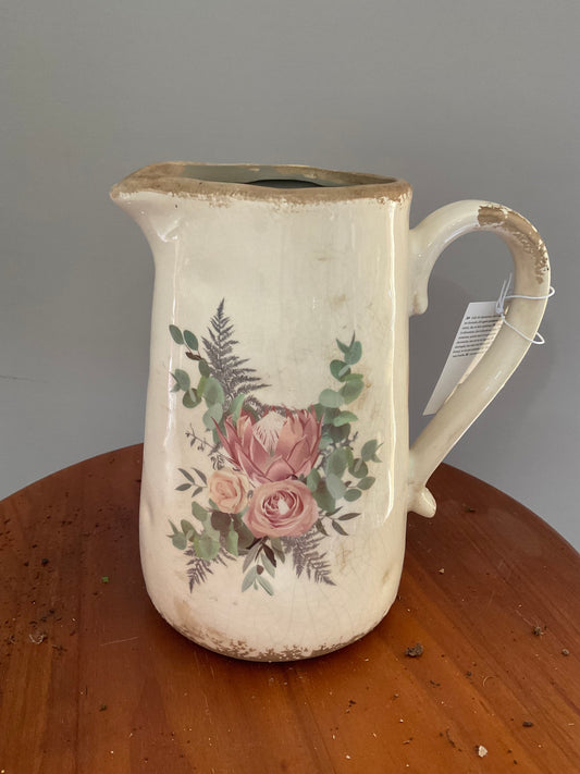 Vaso de Cerâmica em Forma de Caneca – Estilo Vintage com Proteas Cor-de-Rosa