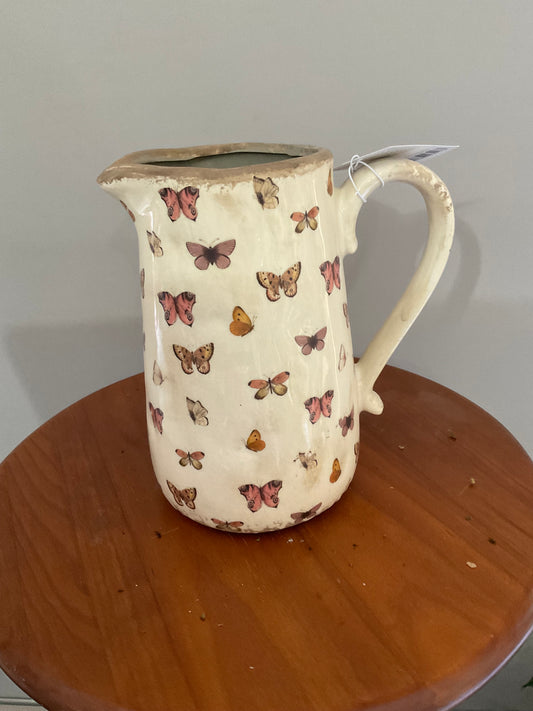 Vaso de Cerâmica em Forma de Caneca com borboletas