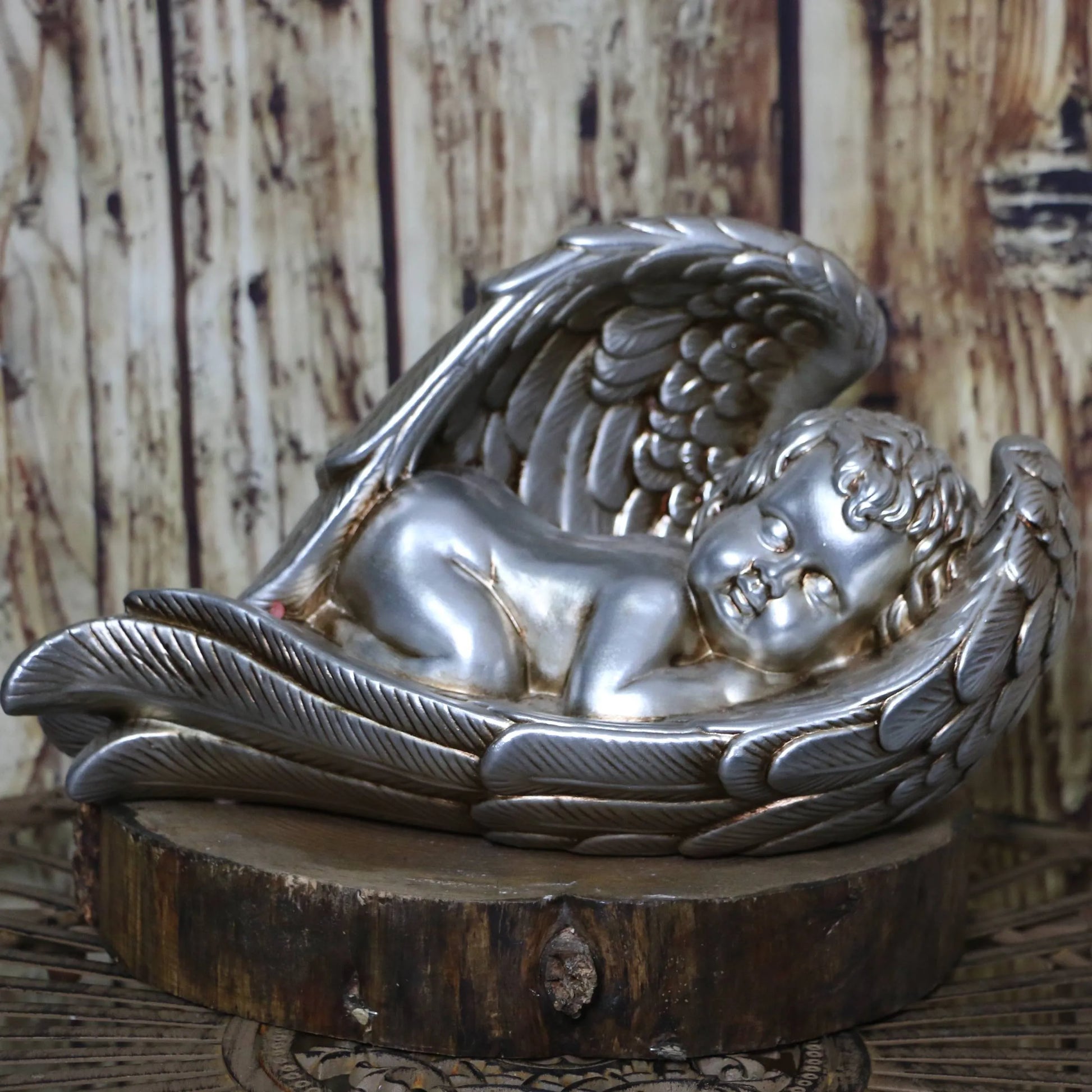 Este anjo deitado transmite paz e serenidade, oferecendo conforto nos momentos de perda. Com uma expressão tranquila e suave, simboliza a calma eterna e a memória carinhosa dos que partiram. Uma peça delicada e respeitosa, perfeita para honrar e lembrar com carinho.