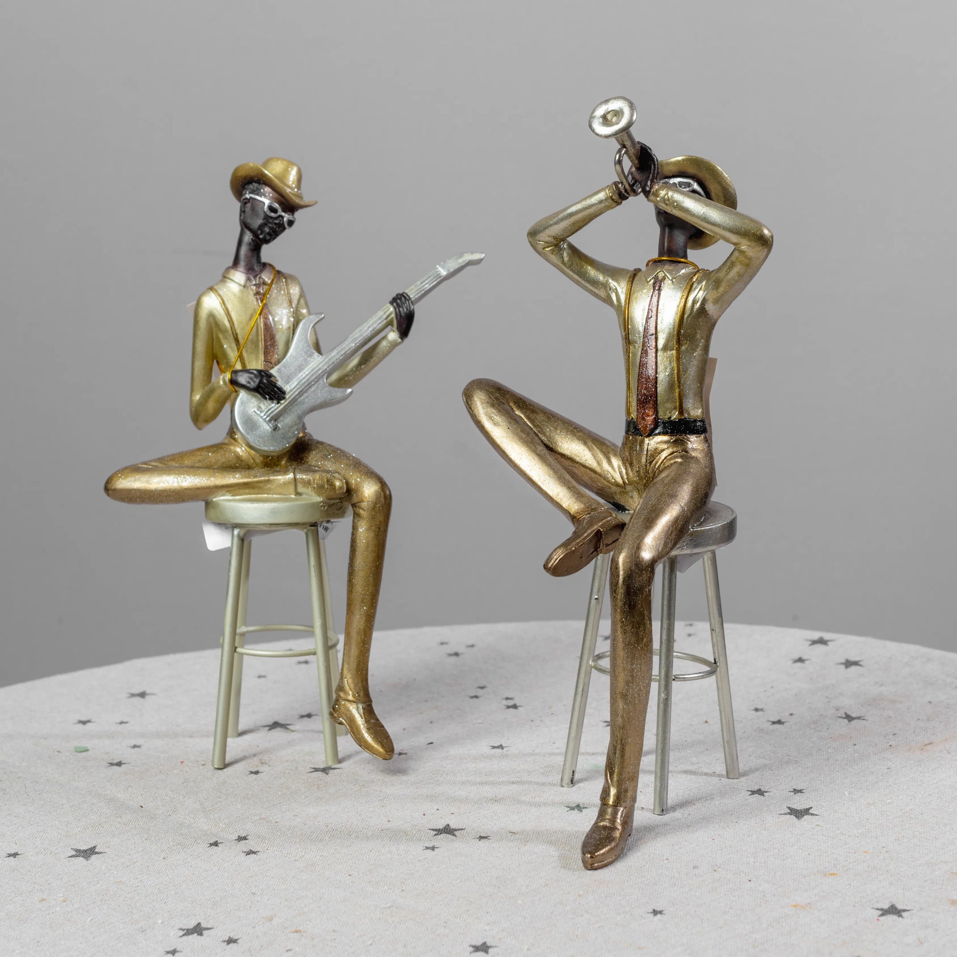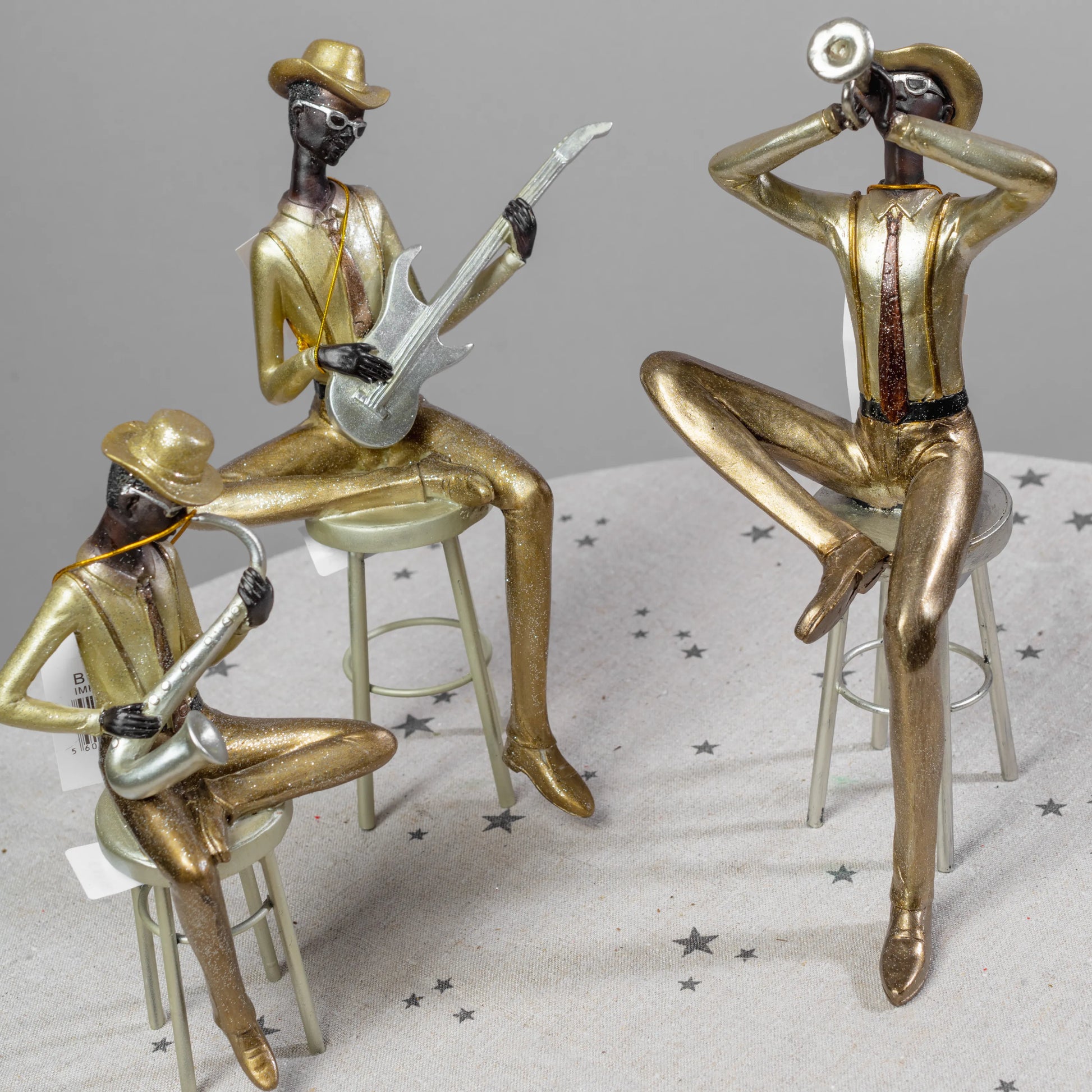 Esta encantadora banda de música em miniatura, com figuras douradas tocando saxofone, guitarra e trompete, traz sofisticação e ritmo à sua decoração. Elegante e versátil, é perfeita para adicionar um toque artístico e alegre ao ambiente natalino. Mas seu charme não se limita ao Natal—esta peça atemporal também será uma adição maravilhosa à decoração de qualquer época do ano, celebrando a música e a criatividade. Vendido em separado.