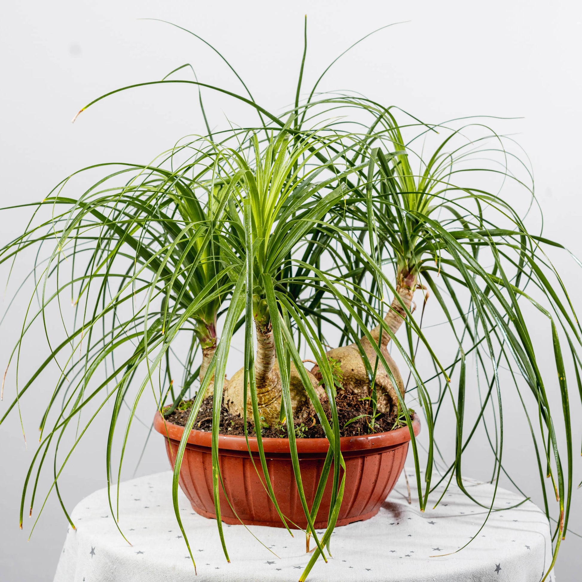 A Beaucarnea recurvata é resistente e ideal para principiantes. O seu tronco armazena água, permitindo longos períodos sem rega. É uma planta não tóxica para animais, sendo uma excelente escolha para casas com cães ou gatos.