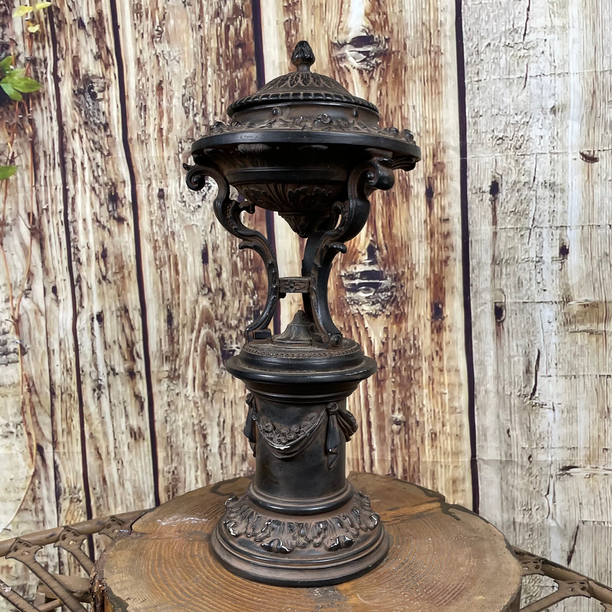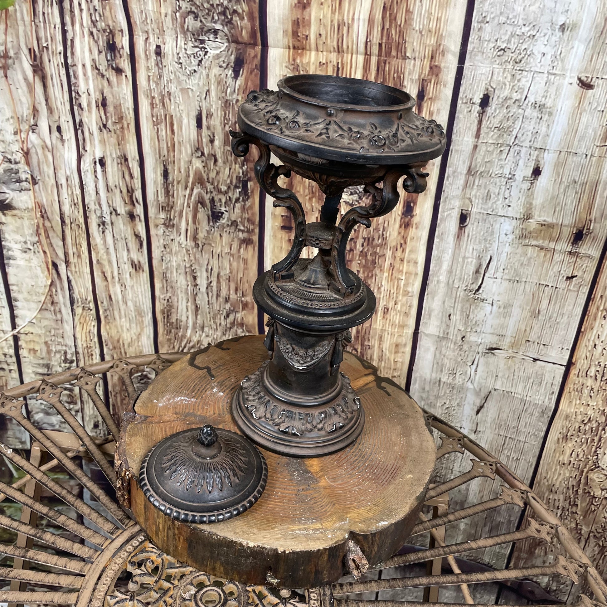 Uma peça robusta e sofisticada, esta bomboneira em ferro fundido destaca-se pela sua durabilidade e pelo seu design repleto de detalhes intrincados. Com um acabamento elegante que remete aos tempos antigos, é perfeita para quem aprecia peças de decoração com carácter e história. Ideal para guardar pequenos doces, a sua presença traz um toque de charme rústico e intemporal a qualquer espaço. Uma verdadeira obra de arte funcional, que combina beleza e utilidade de forma singular.