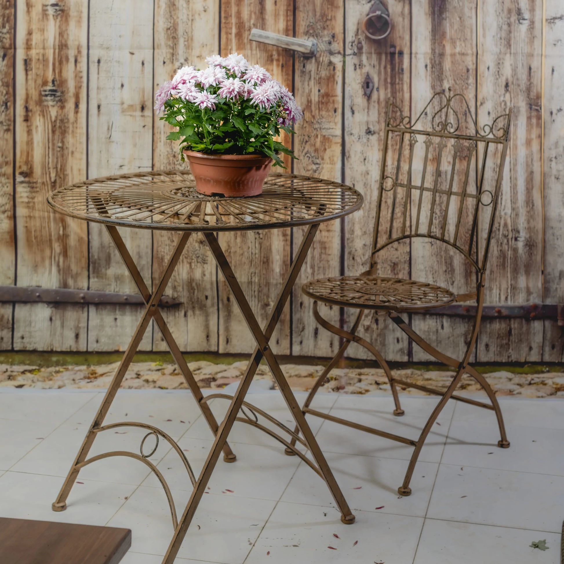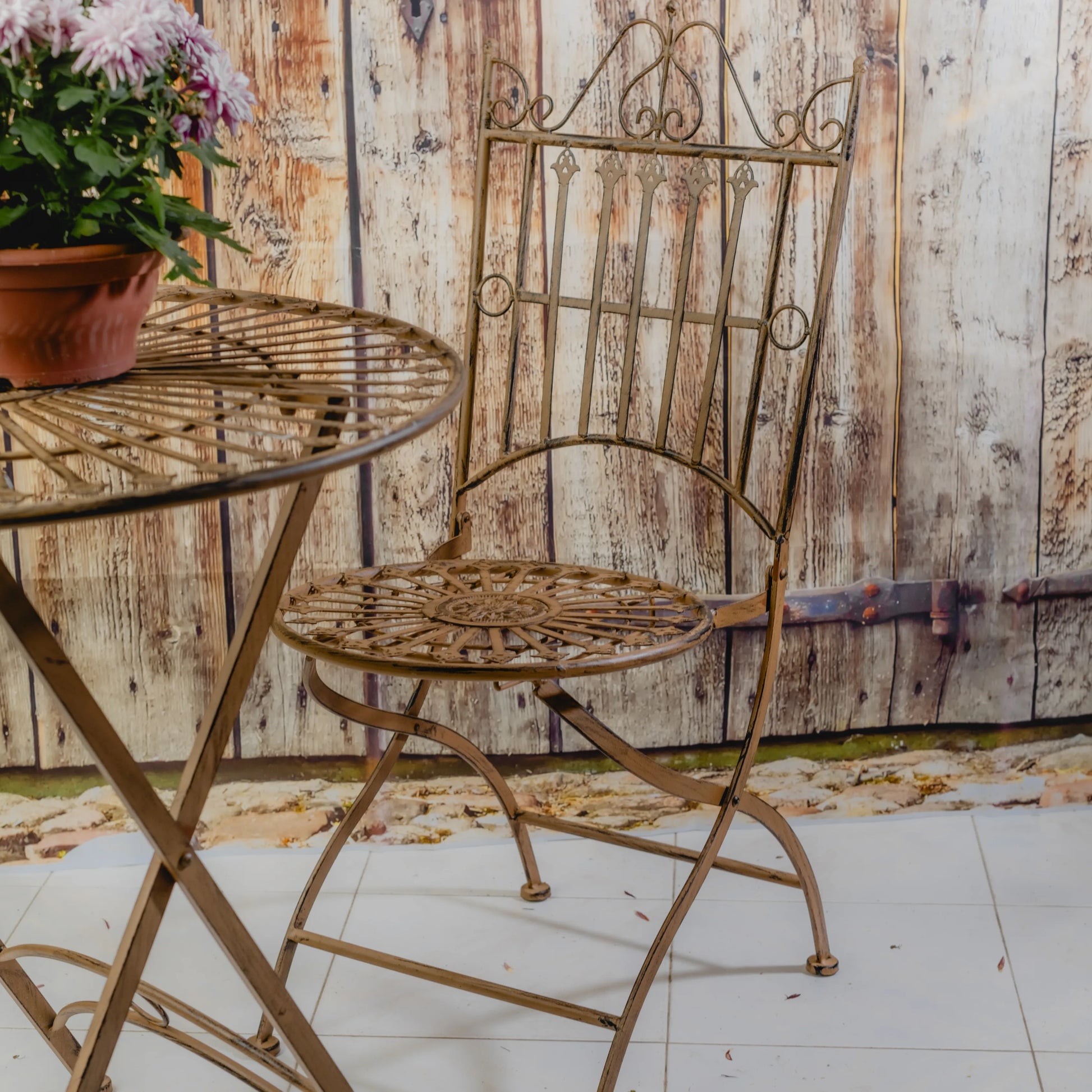 Esta cadeira de jardim em metal, com um acabamento envelhecido pela ferrugem, traz todo o charme do estilo vintage para o seu espaço exterior. Sua aparência desgastada confere personalidade e autenticidade, como se tivesse sido parte de um jardim ao longo do tempo, absorvendo histórias e memórias. O design clássico e os detalhes ornamentais em metal reforçam o apelo nostálgico, tornando-a uma peça decorativa e funcional. Perfeita para criar um ambiente acolhedor e romântico no seu jardim, varanda ou terraço, esta cadeira oferece um toque rústico e elegante, convidando ao relaxamento em meio à natureza