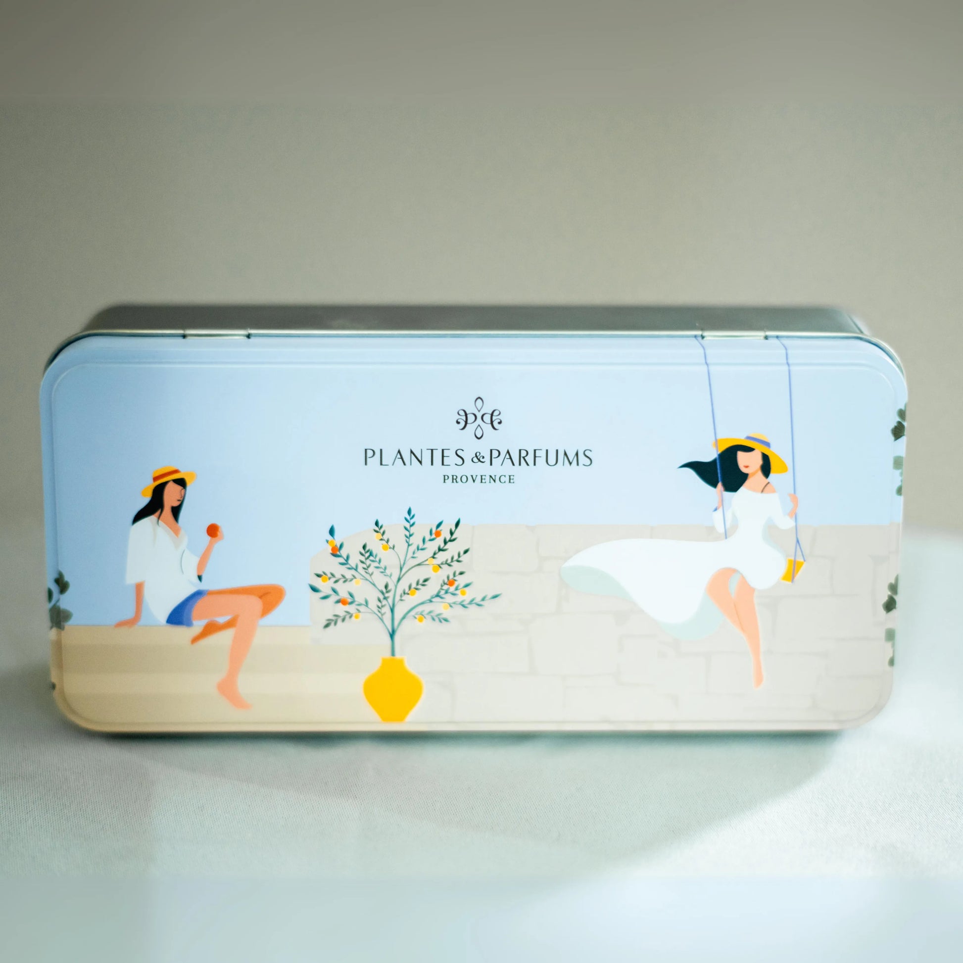 Surpreenda com um presente encantador que captura a essência da Provence! Esta caixa de metal elegante contém um conjunto harmonioso para cuidados diários, incluindo um sabonete artesanal perfumado com notas delicadas, um sachê de alfazema para perfumar ambientes ou gavetas com o aroma relaxante dos campos provençais, e um pequeno creme para mãos, enriquecido com manteiga de karité e óleos essenciais, para hidratação profunda e toque macio. Perfeita para presentear ou para um mimo pessoal, esta combinação oferece uma experiência sensorial completa, com um toque de elegância e sofisticação francesa.