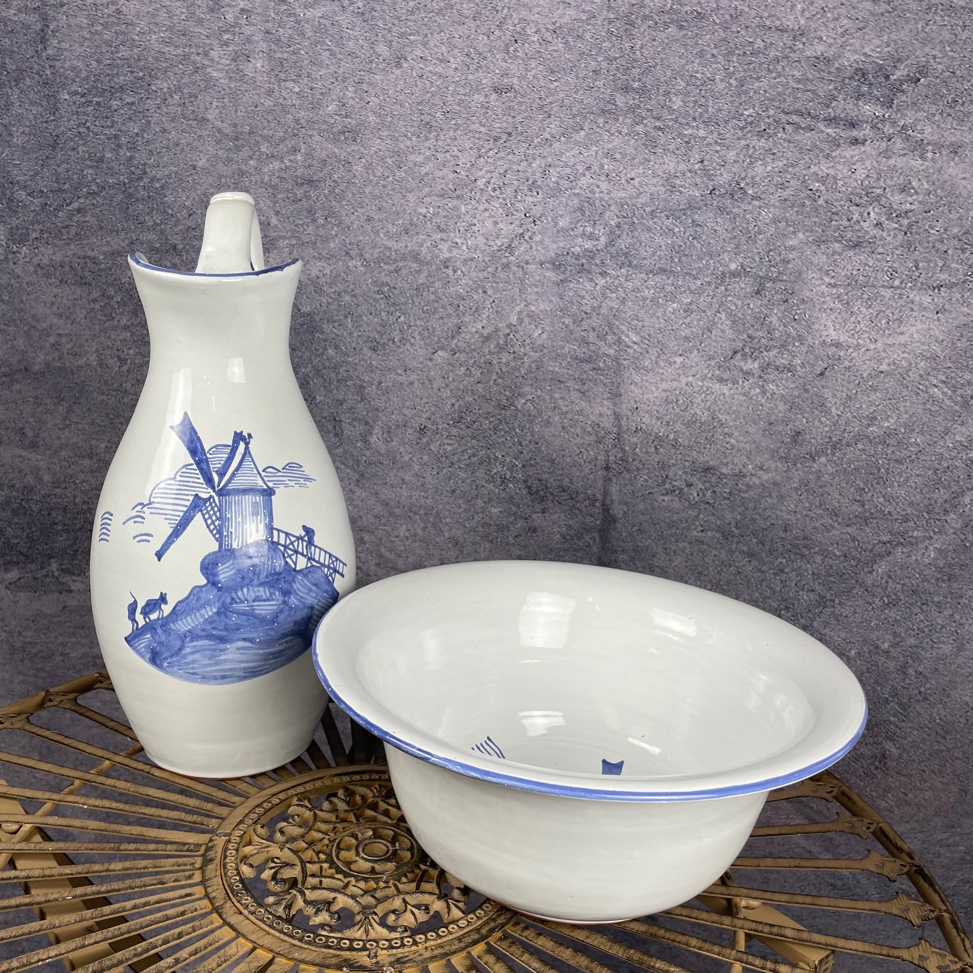 Este encantador conjunto de cerâmica pintado à mão, representado um moinho capturando a tranquilidade e a beleza do campo. O delicado padrão em azul, com traços refinados, confere-lhe um toque clássico e atemporal. Perfeito para adicionar um charme rústico e sofisticado à sua mesa ou espaço decorativo, este conjunto é uma verdadeira obra de arte, que combina a tradição da cerâmica com a delicadeza dos detalhes pintados à mão. Uma peça que traz consigo a serenidade e o encanto de paisagens antigas.