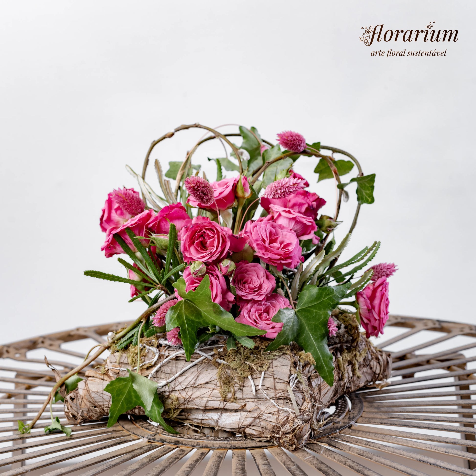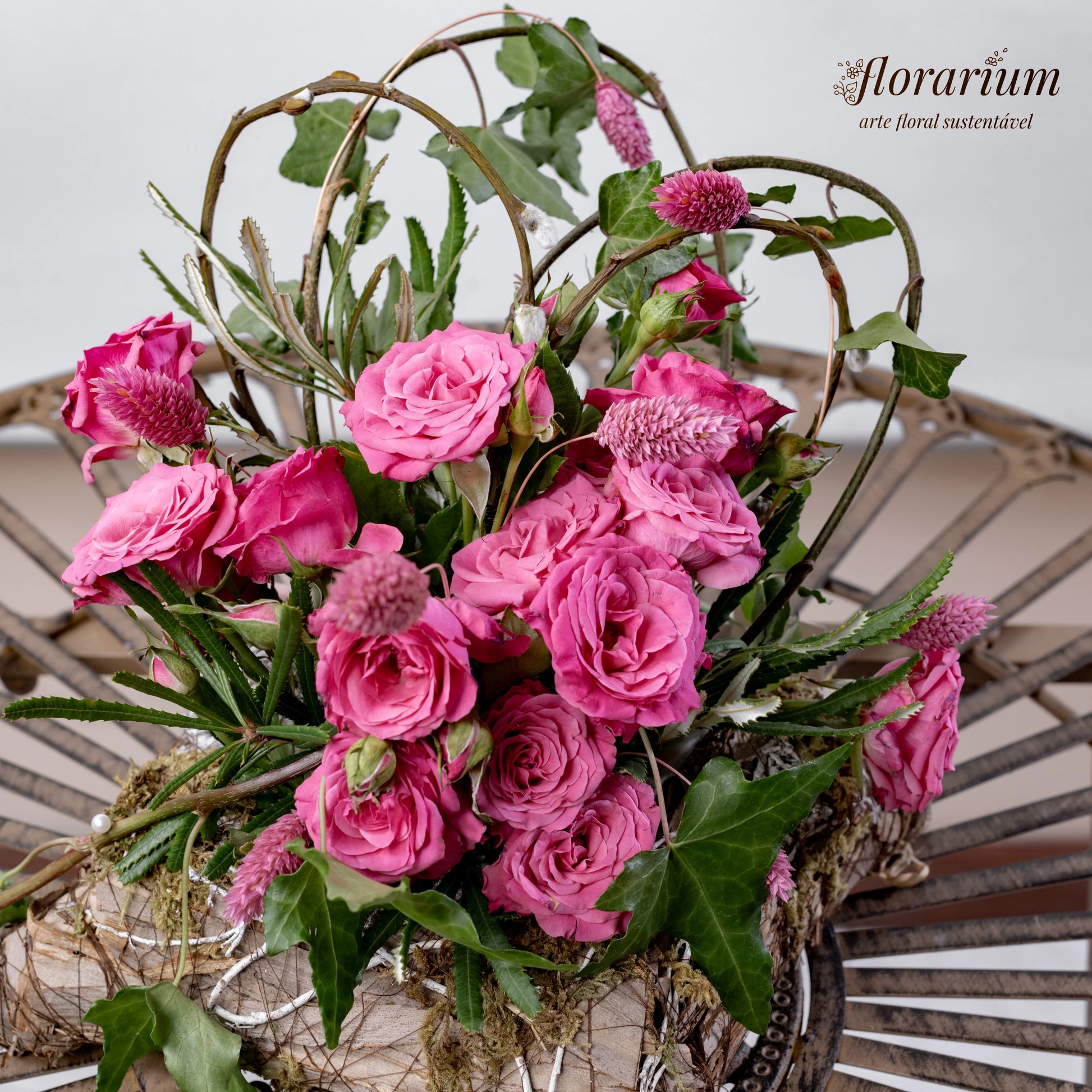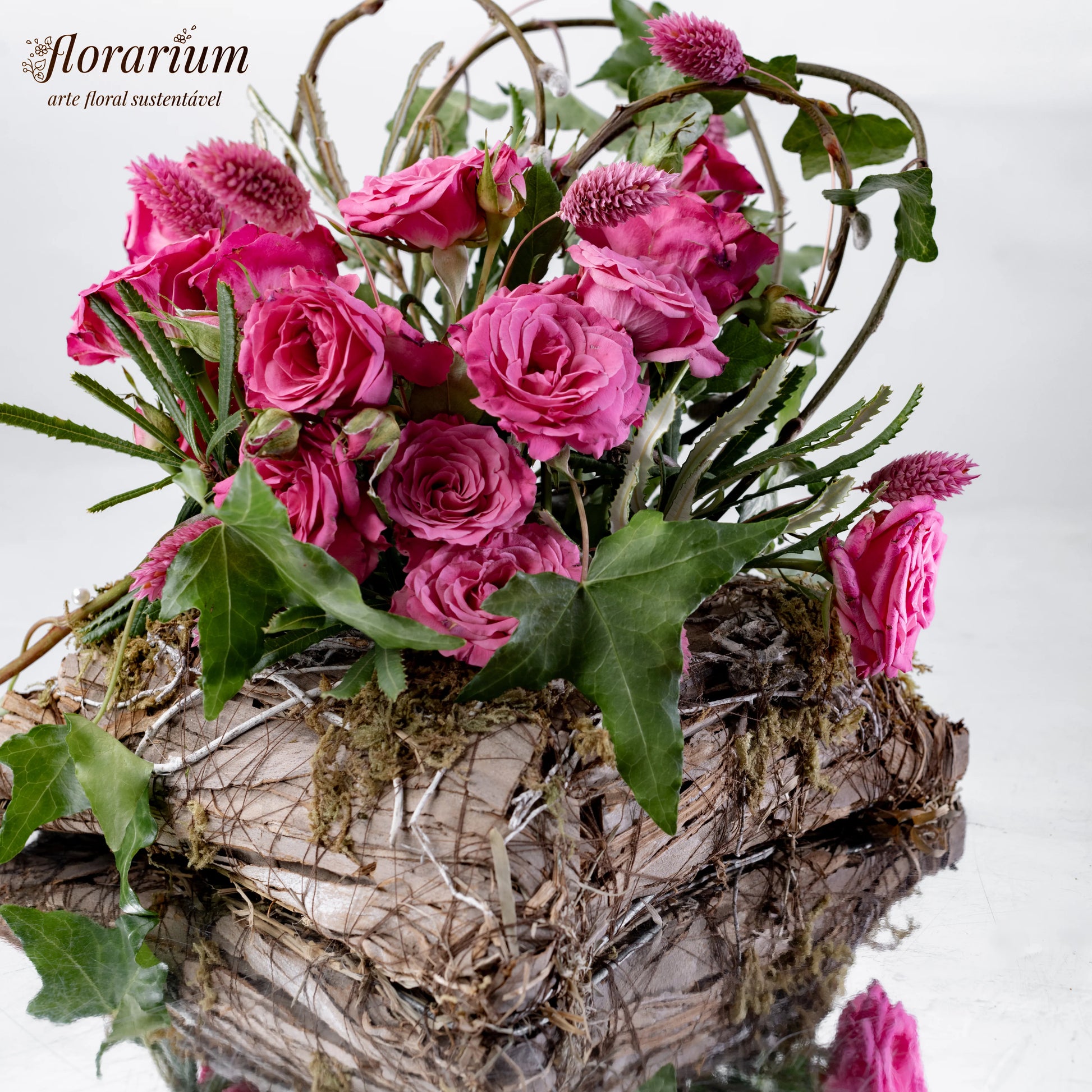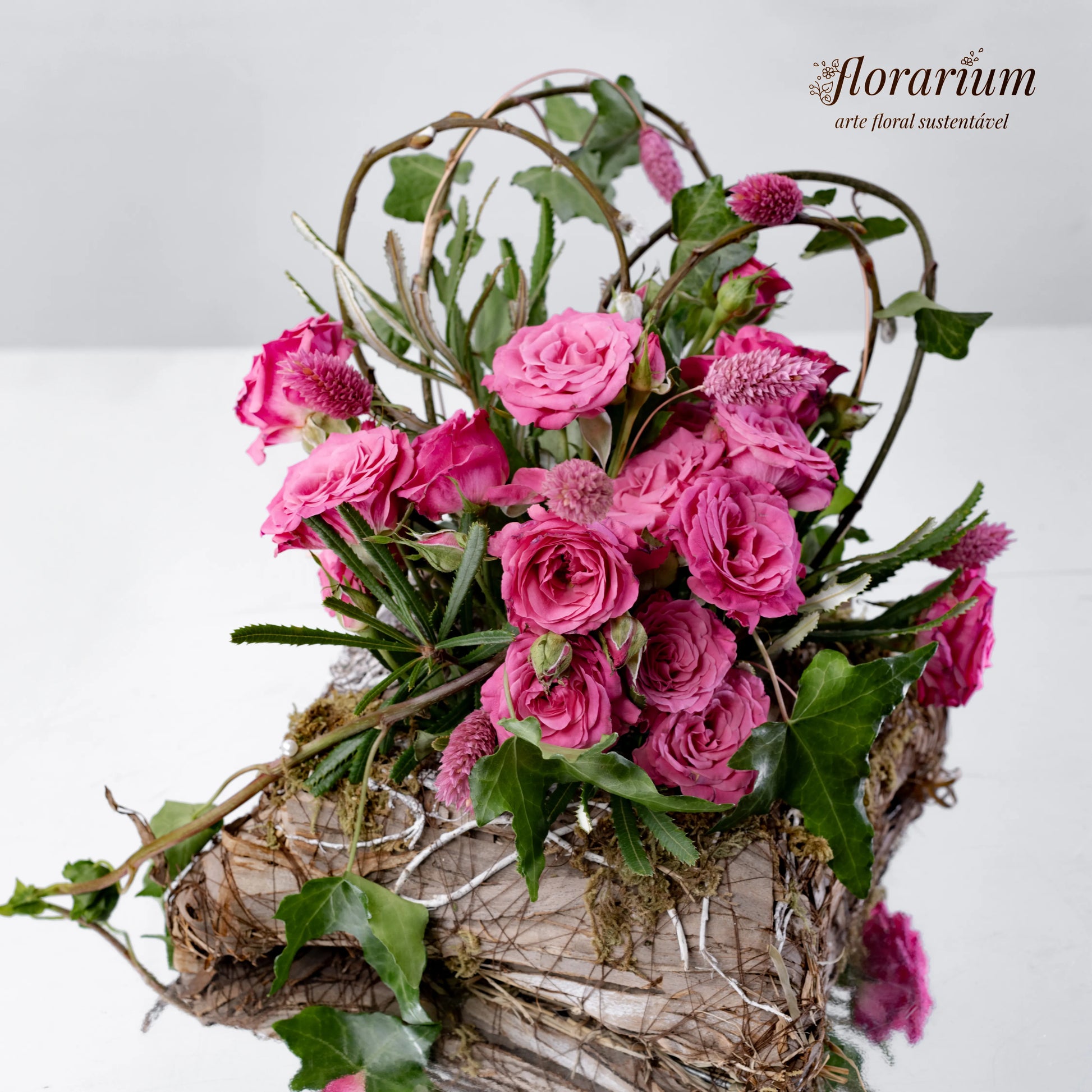 O amor mais verdadeiro é aquele que cresce livremente, sem amarras, como a natureza em estado puro. "Coração Selvagem" é um arranjo que celebra a beleza autêntica dos sentimentos intensos e espontâneos. As rosas rosa intenso simbolizam paixão e ternura, enquanto a hera, com os seus ramos delicados, representa laços profundos e eternos. A textura natural da casca de árvore em forma de coração dá um toque rústico e intemporal, tornando este arranjo perfeito para expressar emoções genuínas e apaixonadas.