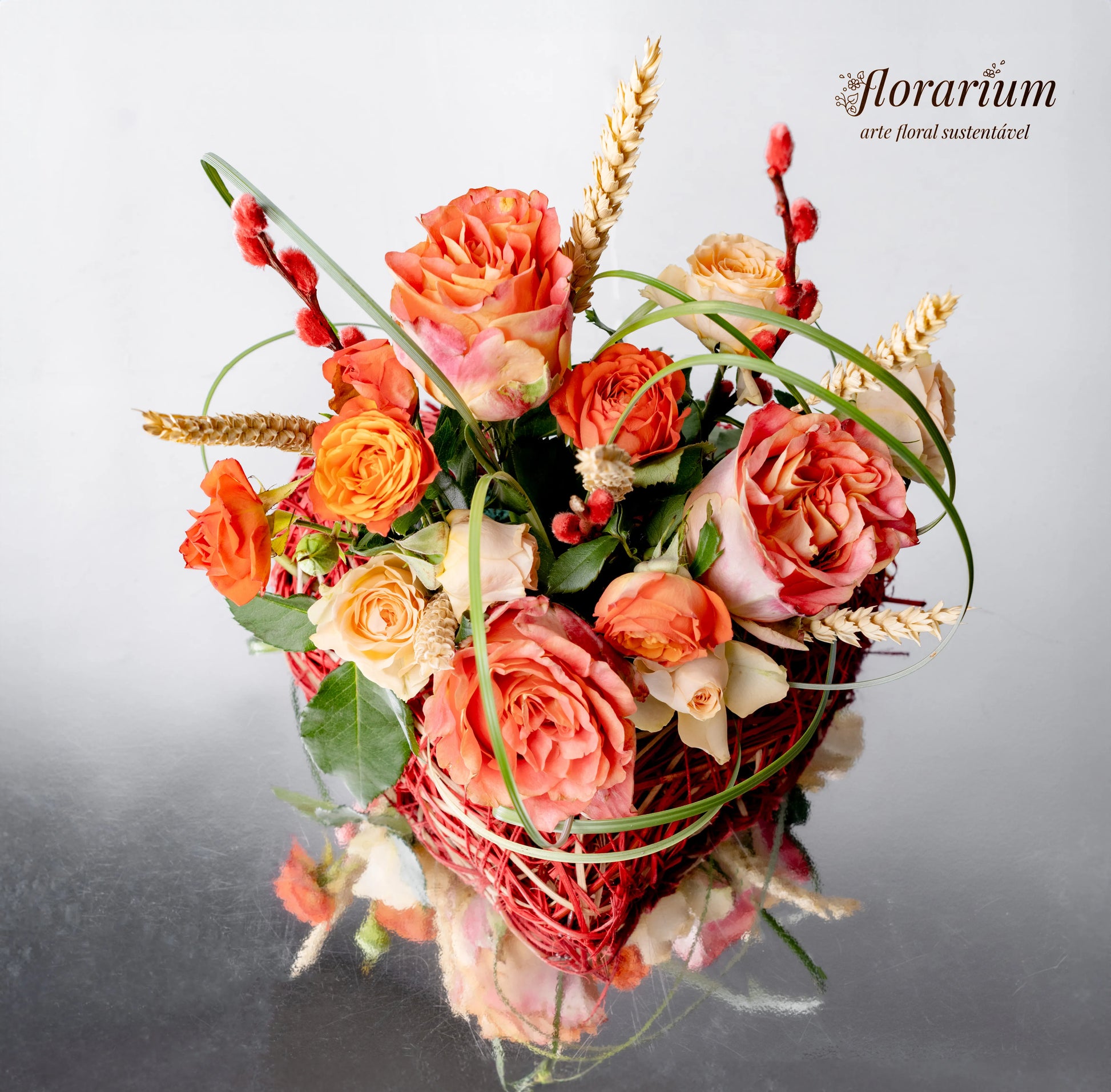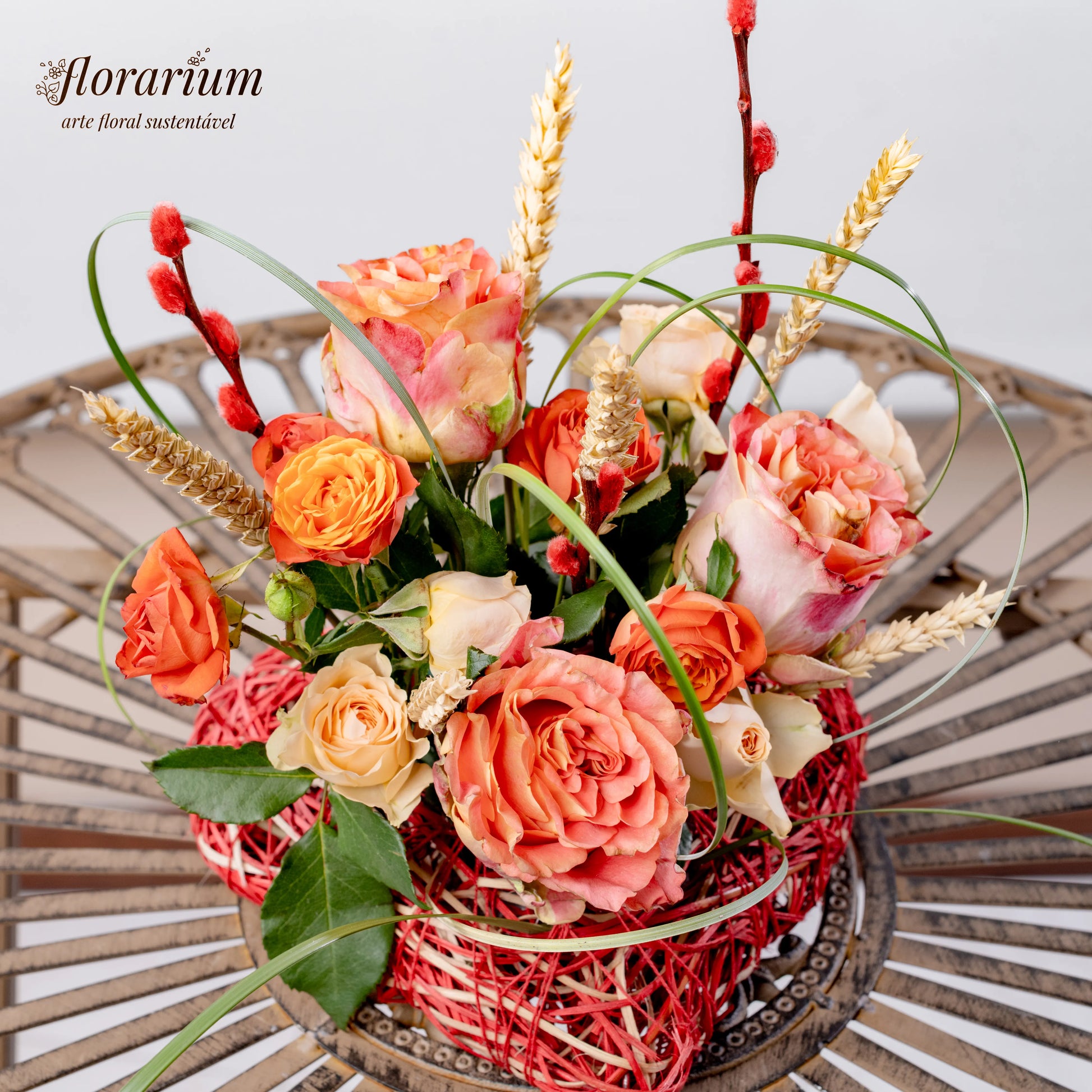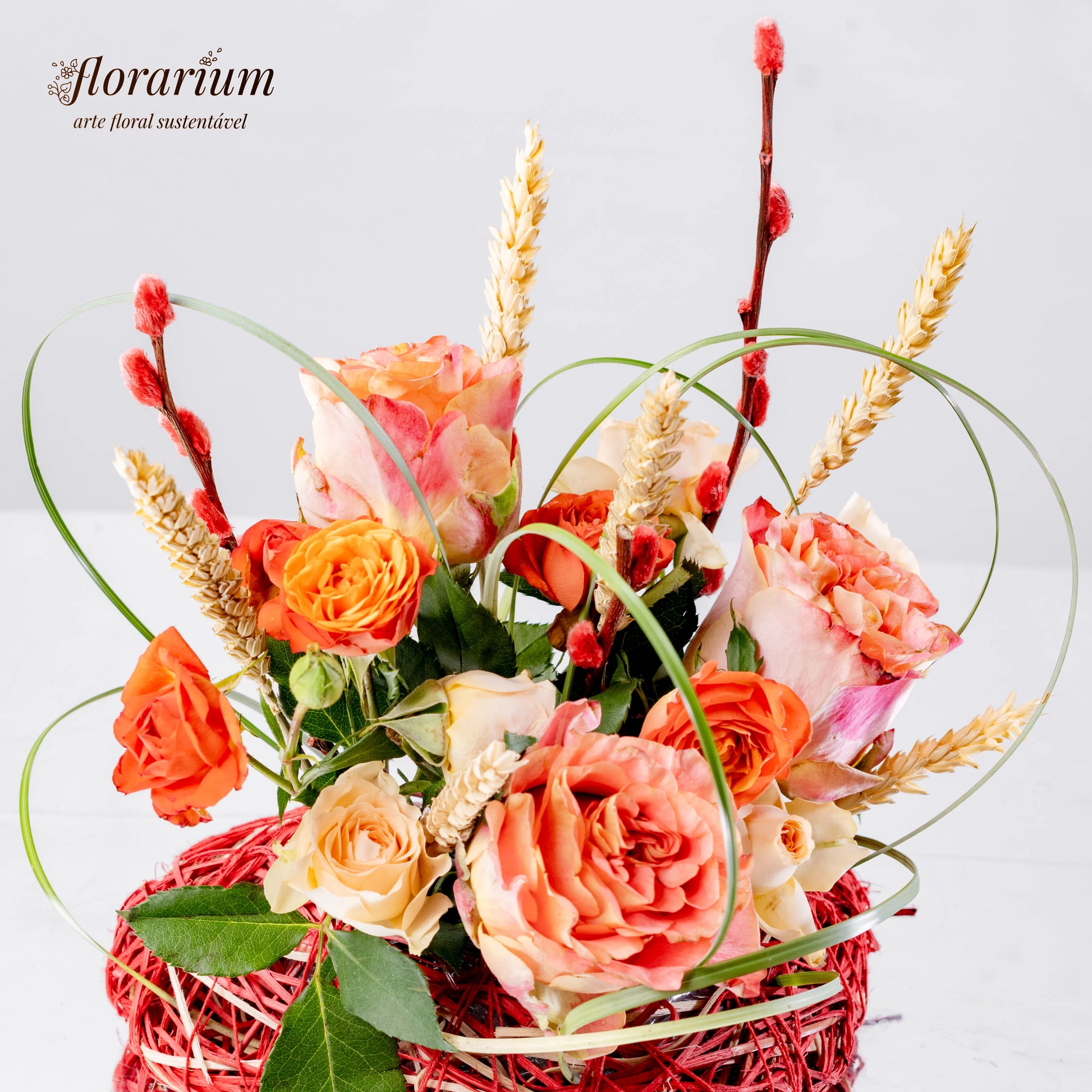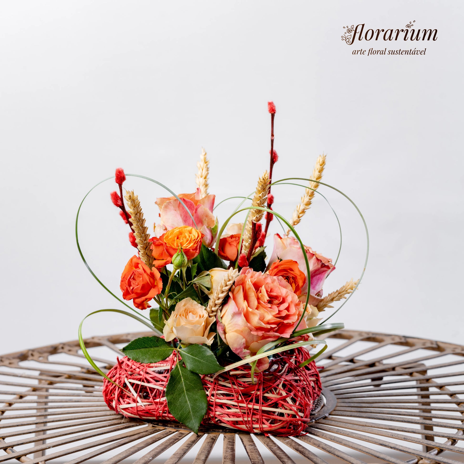 O amor verdadeiro é como a natureza—suave, autêntico e eterno. "Coração Enlaçado" é um arranjo que simboliza a harmonia entre delicadeza e força, com as rosas salmão e bege a refletirem ternura e sofisticação, enquanto as espiguetas secas e os raminhos com botões vermelhos adicionam um toque de rusticidade e paixão. O detalhe especial? Um coração verde feito de uma planta flexível, entrelaçado como os sentimentos que nos unem.