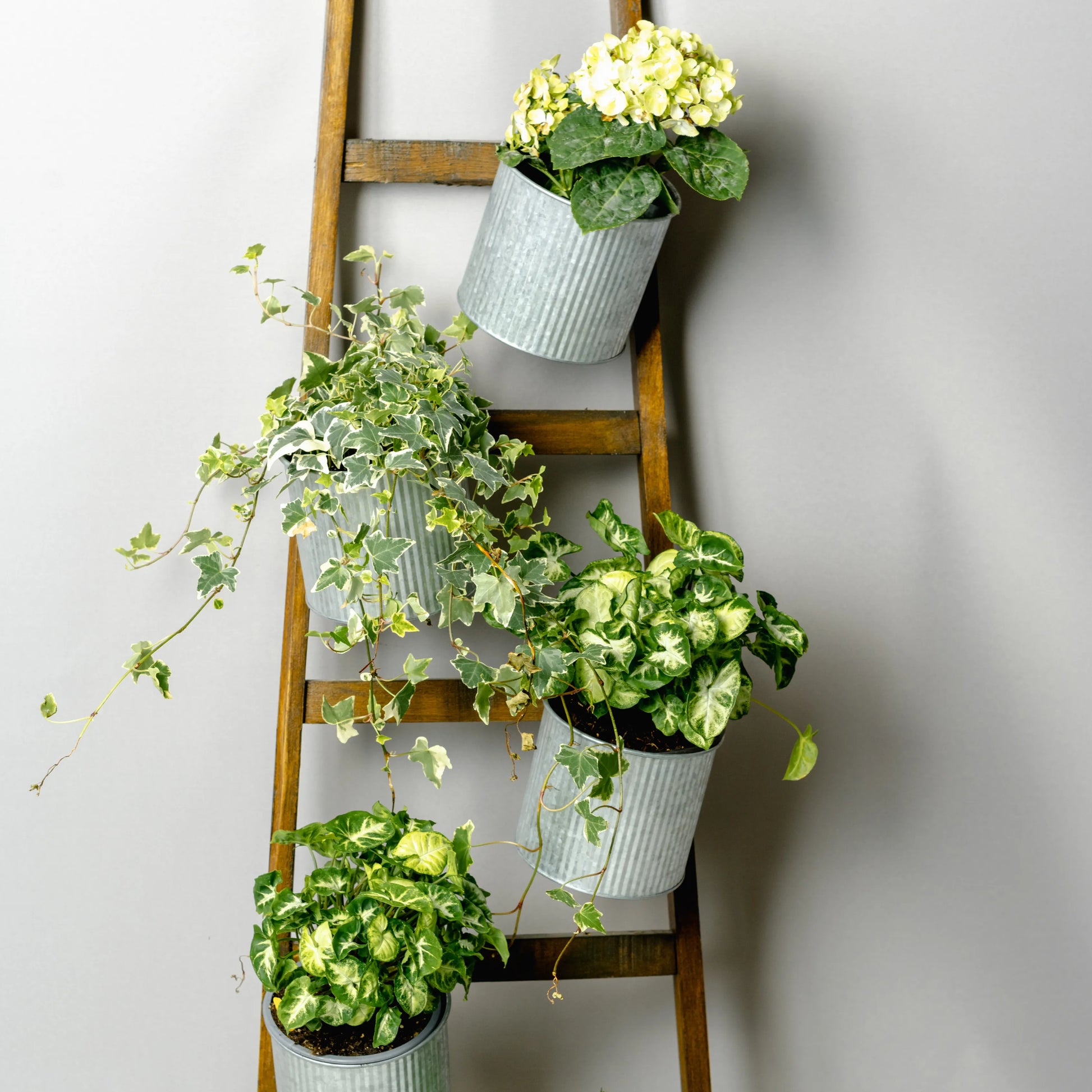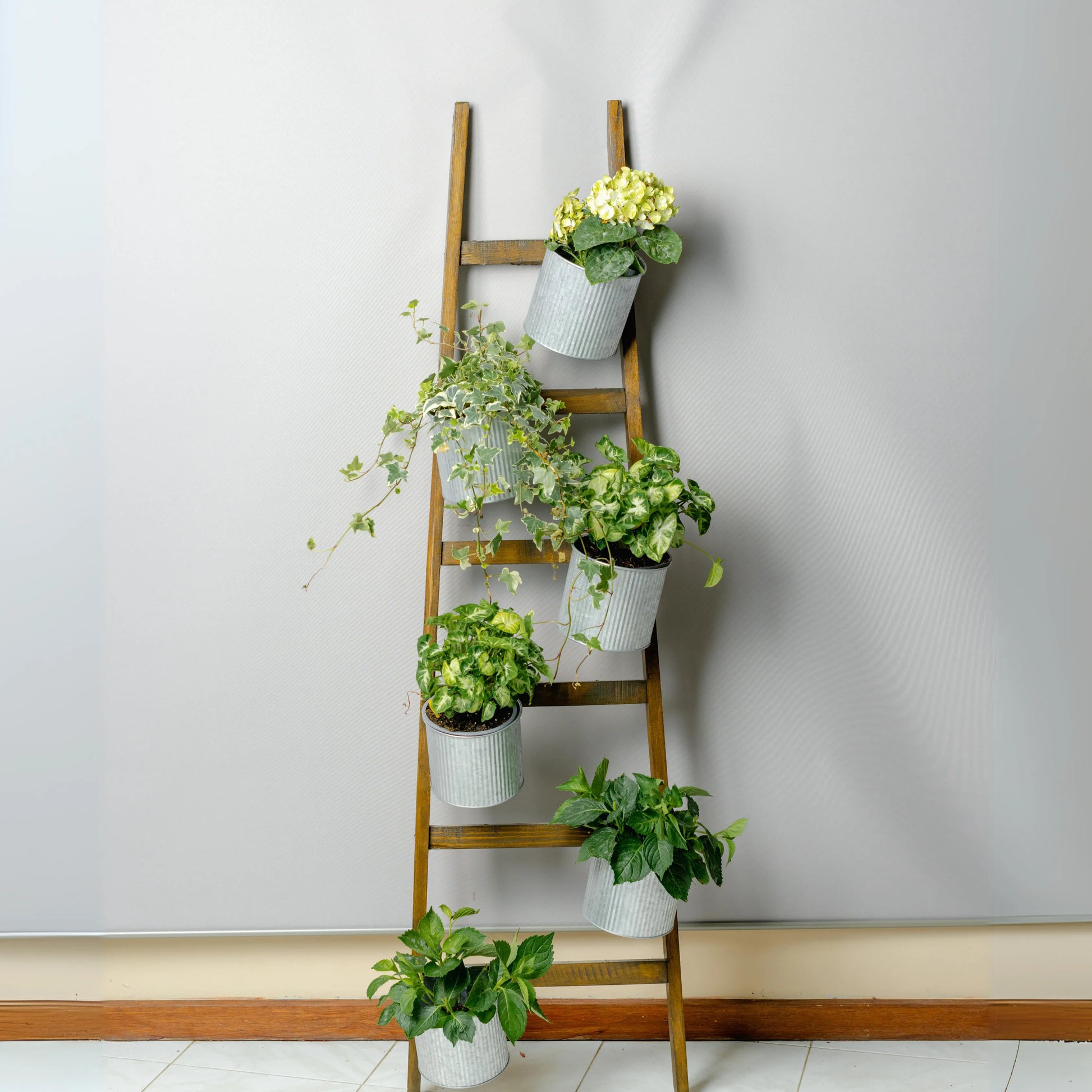 Adicione um toque de rusticidade e charme natural ao seu ambiente com este escadote decorativo, que vem acompanhado de 6 vasos de zinco para pendurar. Feito de madeira natural, o escadote possui uma estrutura robusta e elegante, ideal para ser usado como suporte vertical para suas plantas favoritas. Os vasos de zinco, pendurados em diferentes alturas, oferecem um contraste encantador com a madeira, criando um visual rústico e contemporâneo que se adapta a qualquer espaço — desde varandas e jardins internos até cozinhas e salas de estar. Perfeito para criar um jardim vertical ou exibir uma variedade de plantas, este escadote decorativo é uma forma criativa e estilosa de trazer um pouco da natureza para dentro de casa.