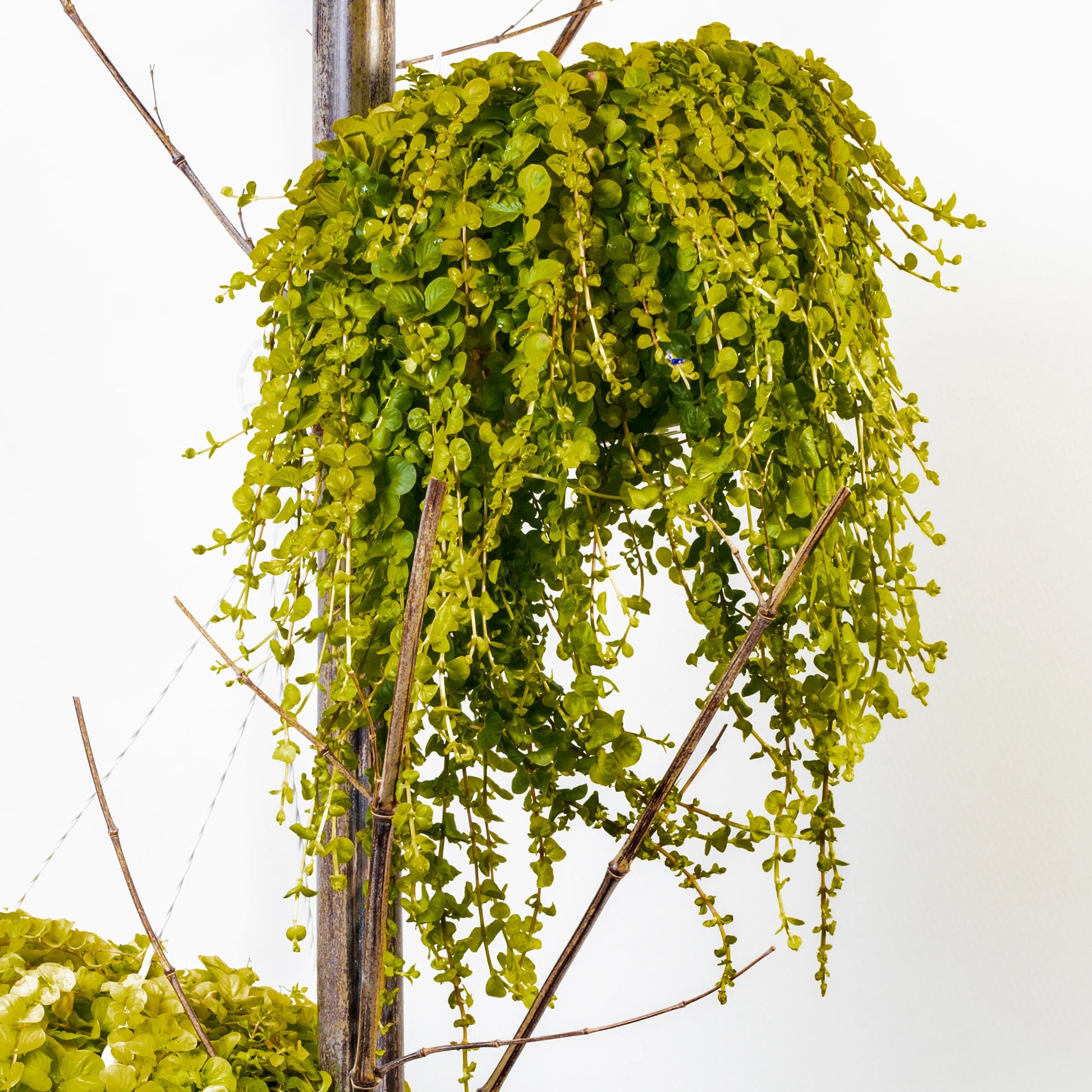 A lysimachia nummularia 'Goldilocks' é conhecida por seu hábito vigoroso de crescimento e folhagem verde-limão animada, tornando-a uma planta popular como cobertura de solo e destaque. Prospera em solo úmido e bem drenado, com exposição ao sol parcial a pleno. Pontos importantes de cuidado incluem garantir umidade consistente sem encharcar e controlar sua tendência invasiva nos jardins por meio de podas regulares ou contenção.