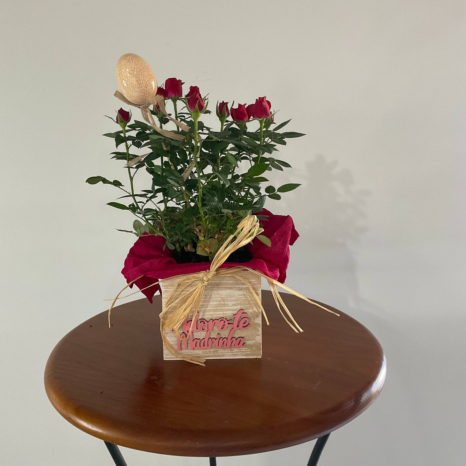 Dentro de uma caixa de madeira simples e encantadora, gravada com as palavras “Madrinha adoro”, repousa uma pequena rosa — delicada, cheia de significado e amor. Uma prenda para a madrinha que tem um lugar especial no coração, perfeita para expressar carinho de uma forma subtil e profunda. Ideal para quem valoriza o gesto sincero e a beleza das coisas simples.