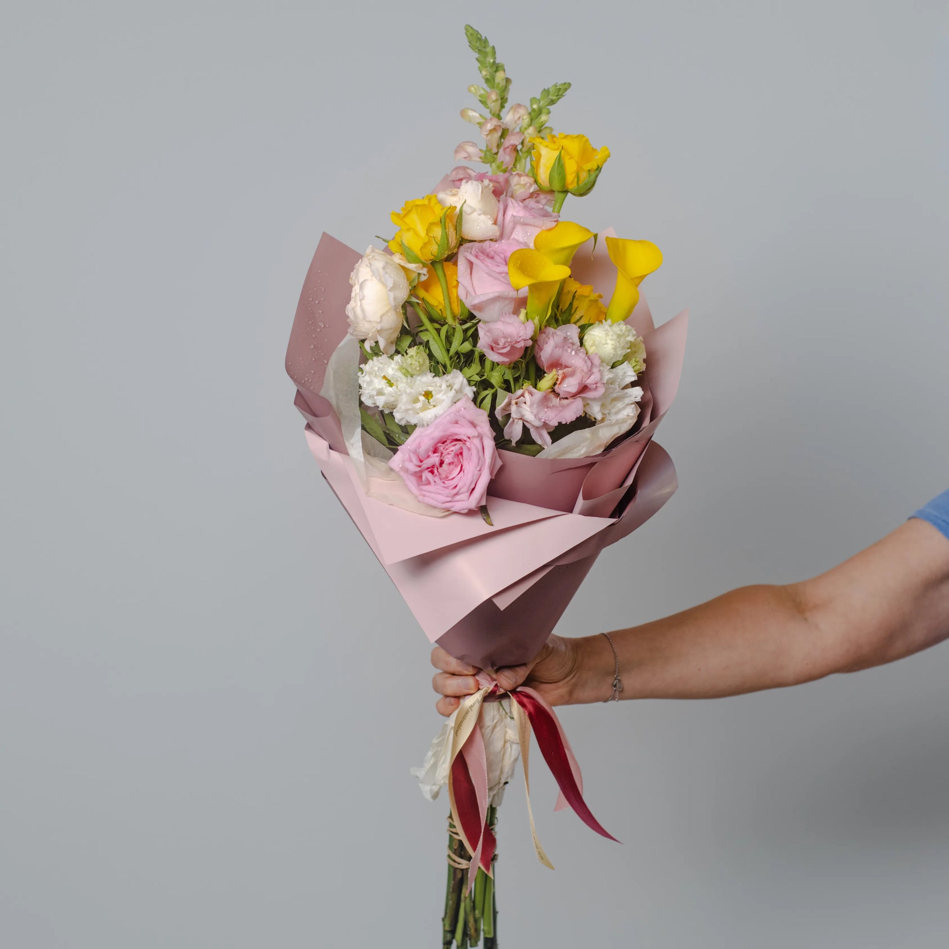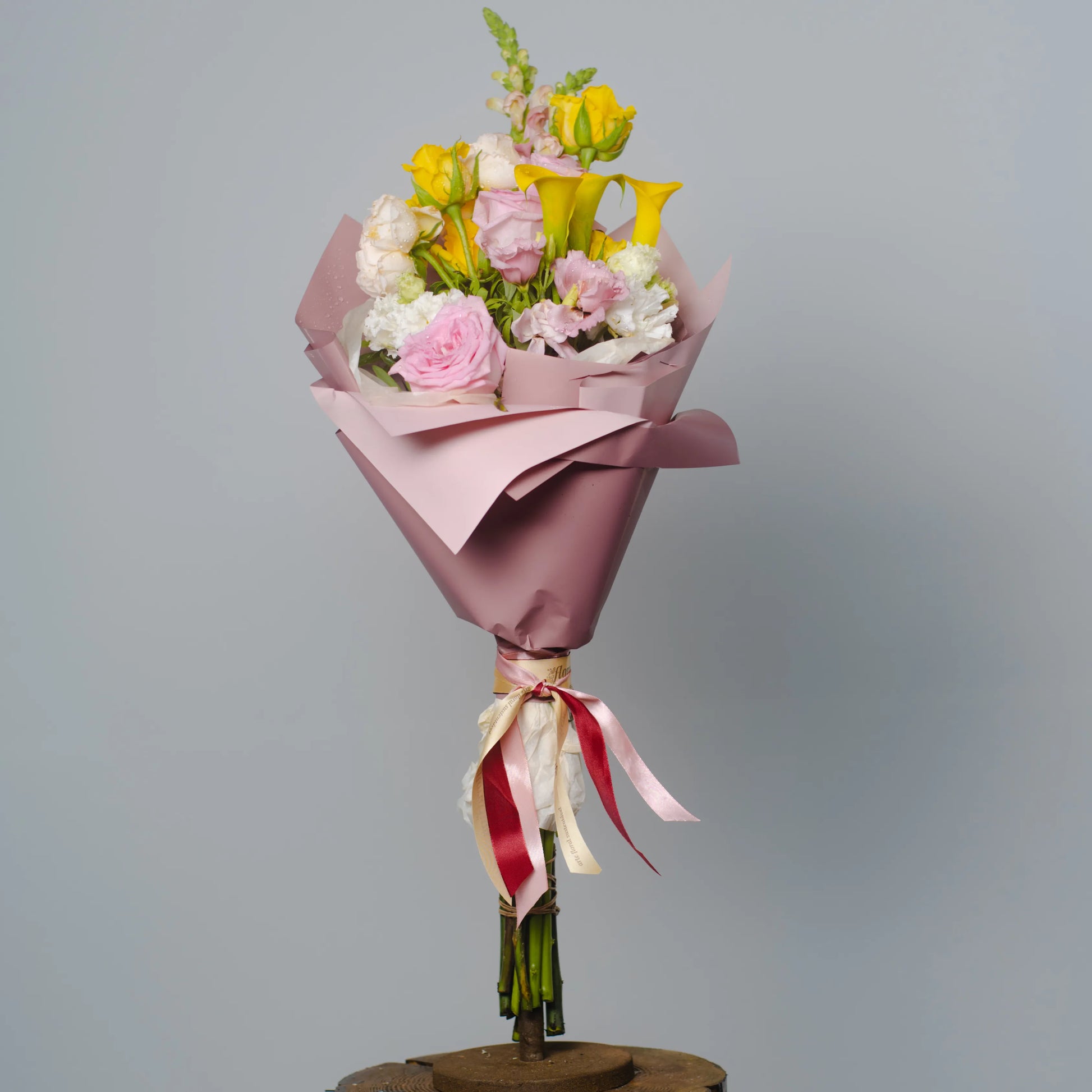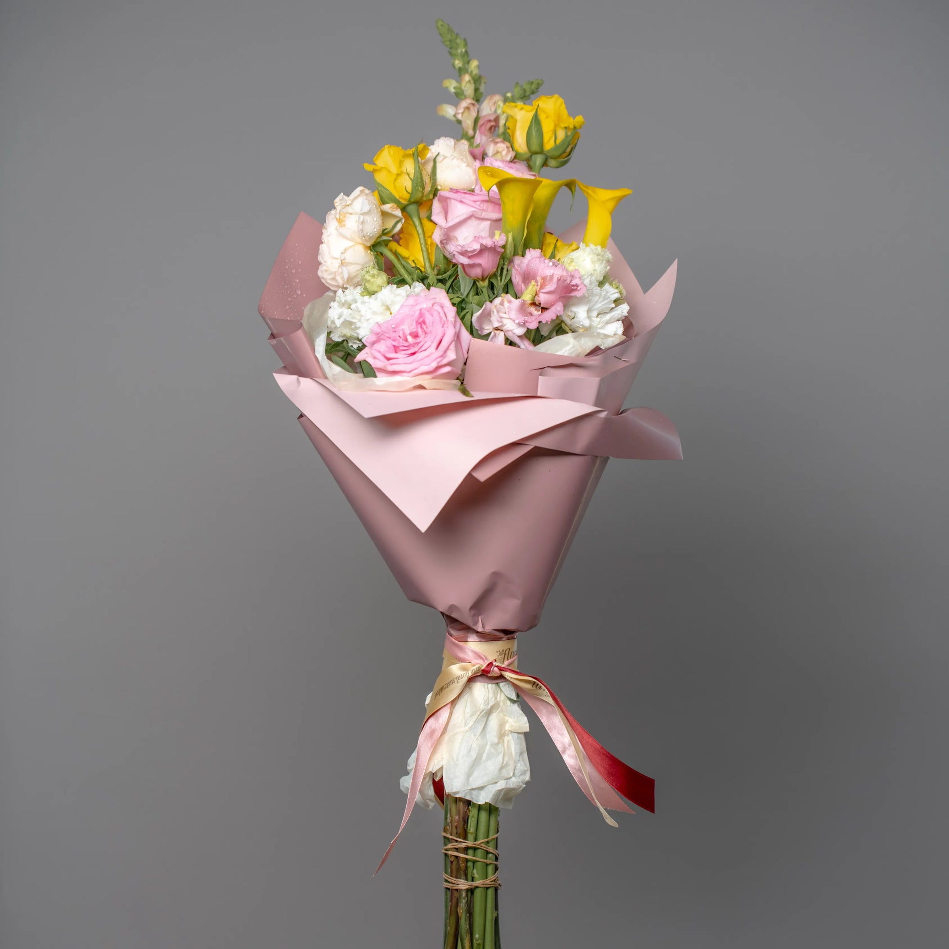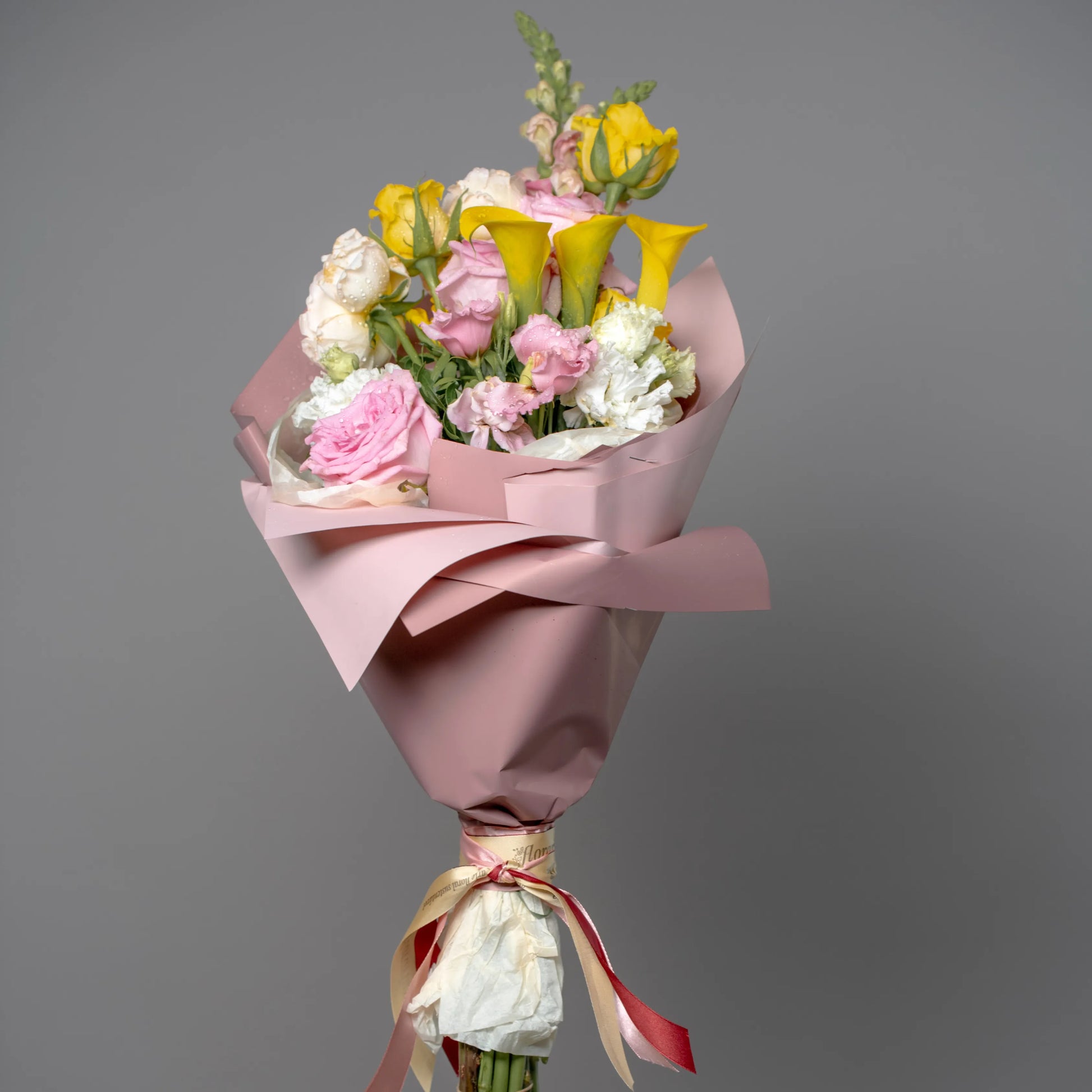 O ramo “Cores do Pôr do Sol” é uma paleta delicada de tons quentes e pastéis que capturam a beleza do entardecer. As vibrantes calas e rosas amarelas criam uma atmosfera de um pôr do sol dourado, trazendo uma sensação de calor e luz à composição. O lírio branco adiciona frescor e pureza, como os últimos raios de sol iluminando o horizonte. O antirrínio rosa e as rosas delicadas realçam o romantismo da noite, enquanto a hortênsia rosa completa o cenário com suavidade e ternura. “Cores do Pôr do Sol” é a escolha perfeita para quem deseja guardar no coração a luz e a beleza do momento.