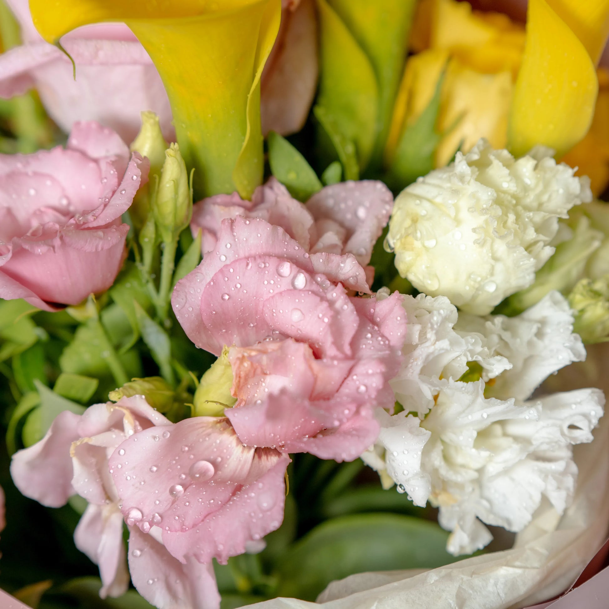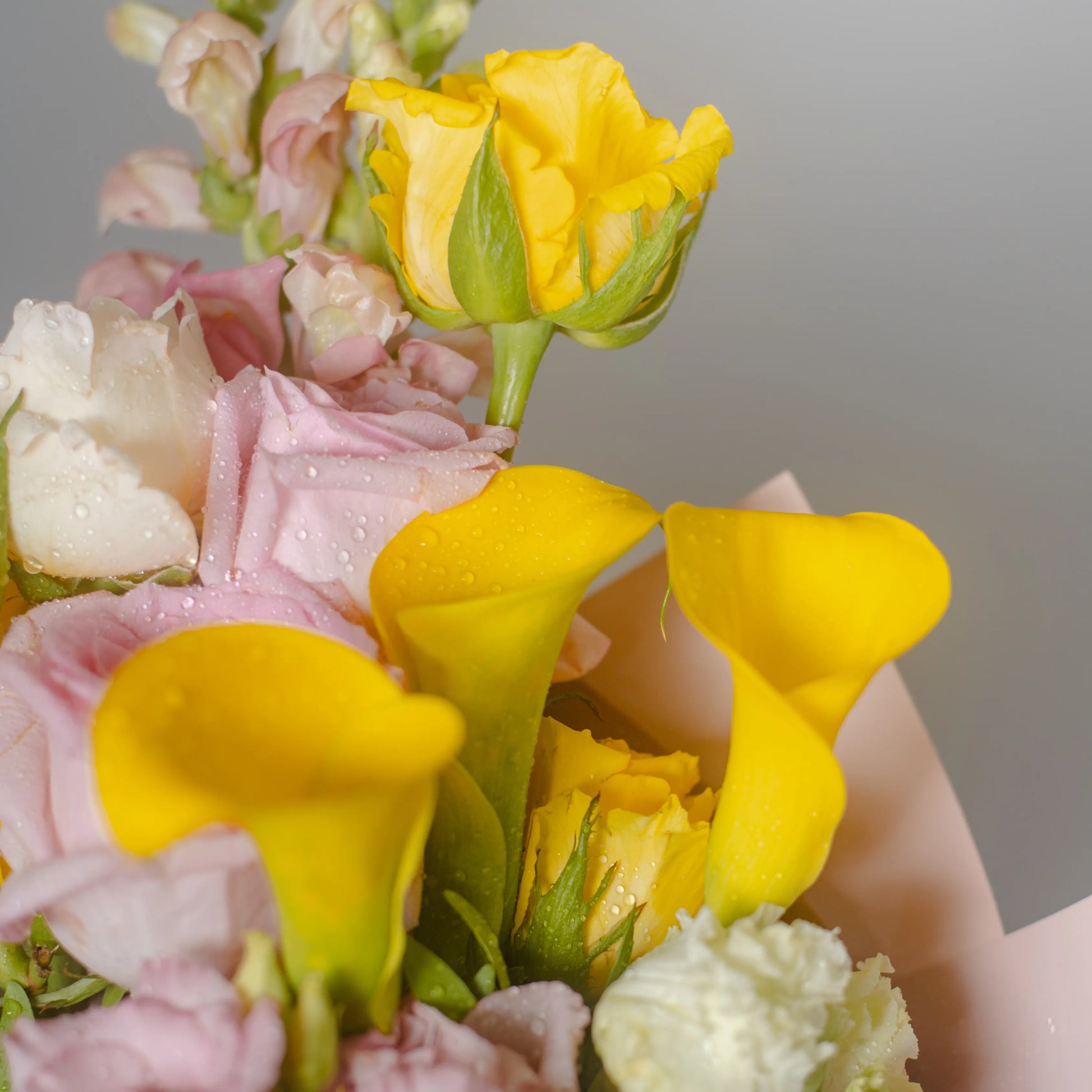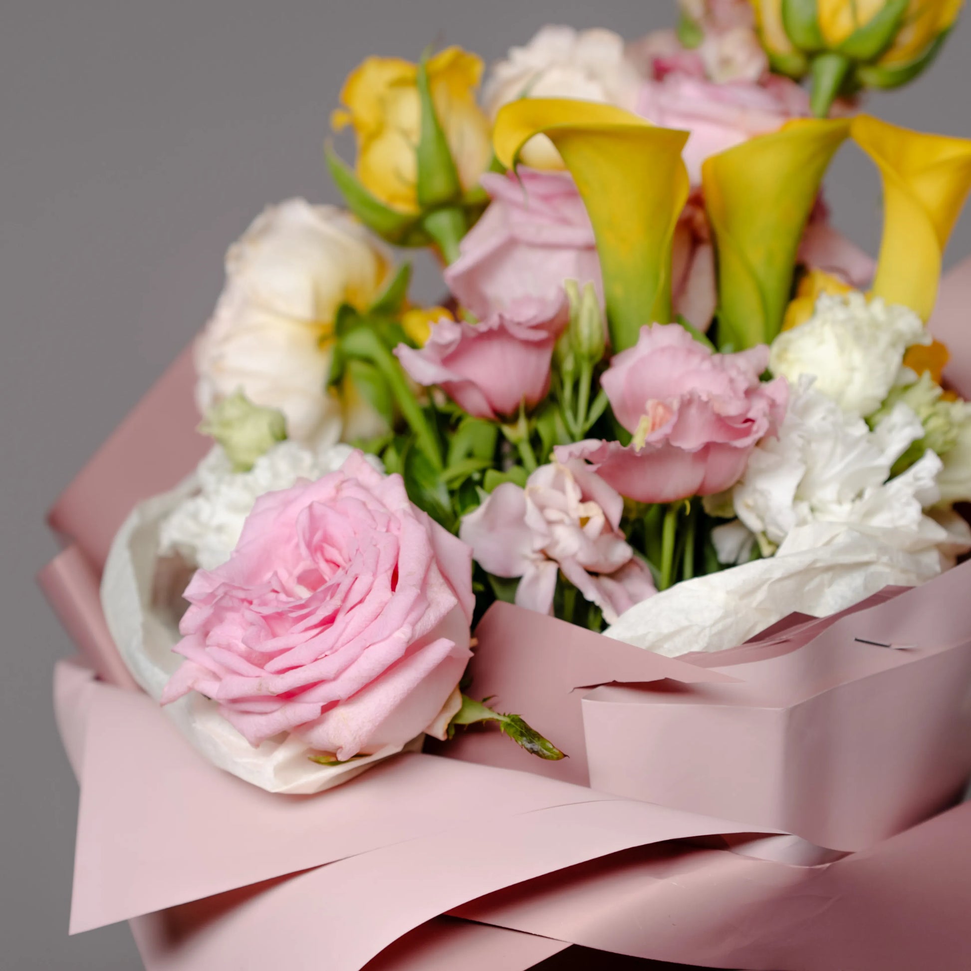 O ramo “Cores do Pôr do Sol” é uma paleta delicada de tons quentes e pastéis que capturam a beleza do entardecer. As vibrantes calas e rosas amarelas criam uma atmosfera de um pôr do sol dourado, trazendo uma sensação de calor e luz à composição. O lírio branco adiciona frescor e pureza, como os últimos raios de sol iluminando o horizonte. O antirrínio rosa e as rosas delicadas realçam o romantismo da noite, enquanto a hortênsia rosa completa o cenário com suavidade e ternura. “Cores do Pôr do Sol” é a escolha perfeita para quem deseja guardar no coração a luz e a beleza do momento.