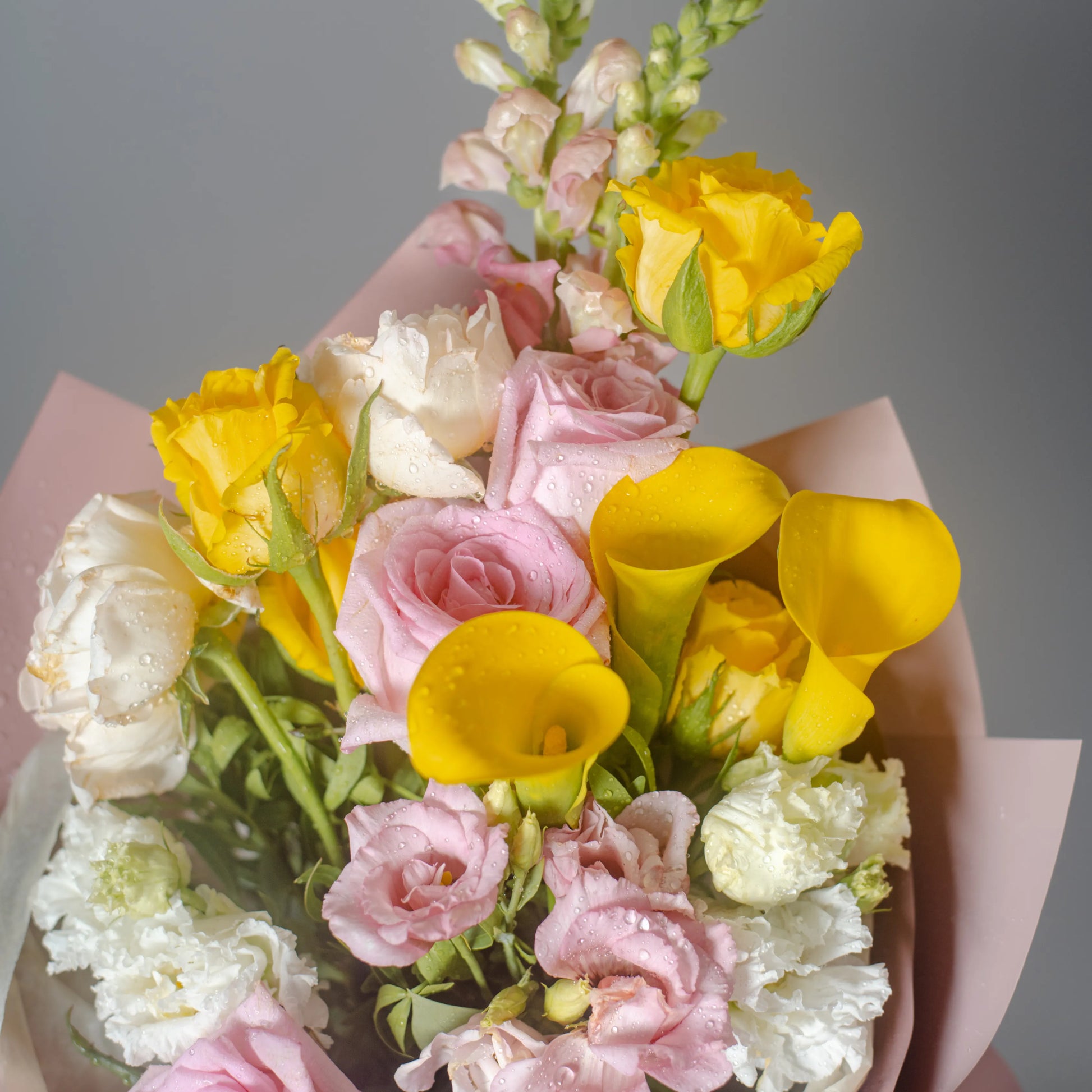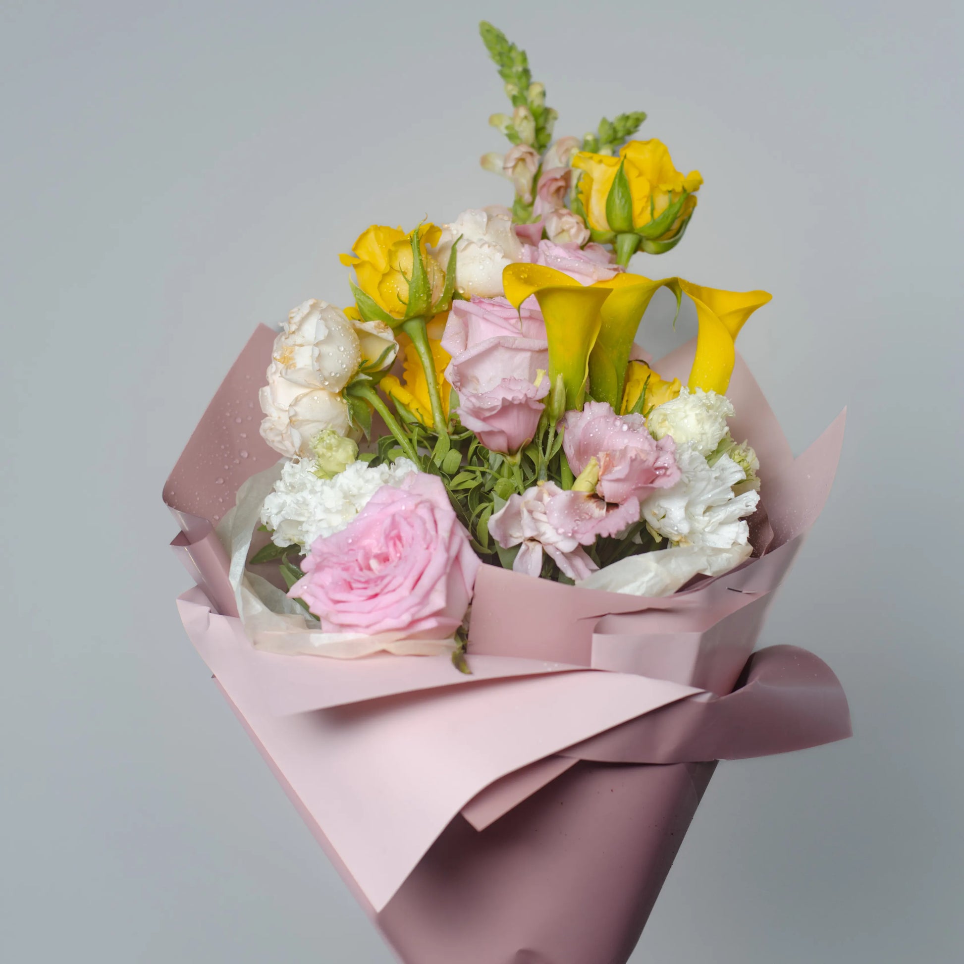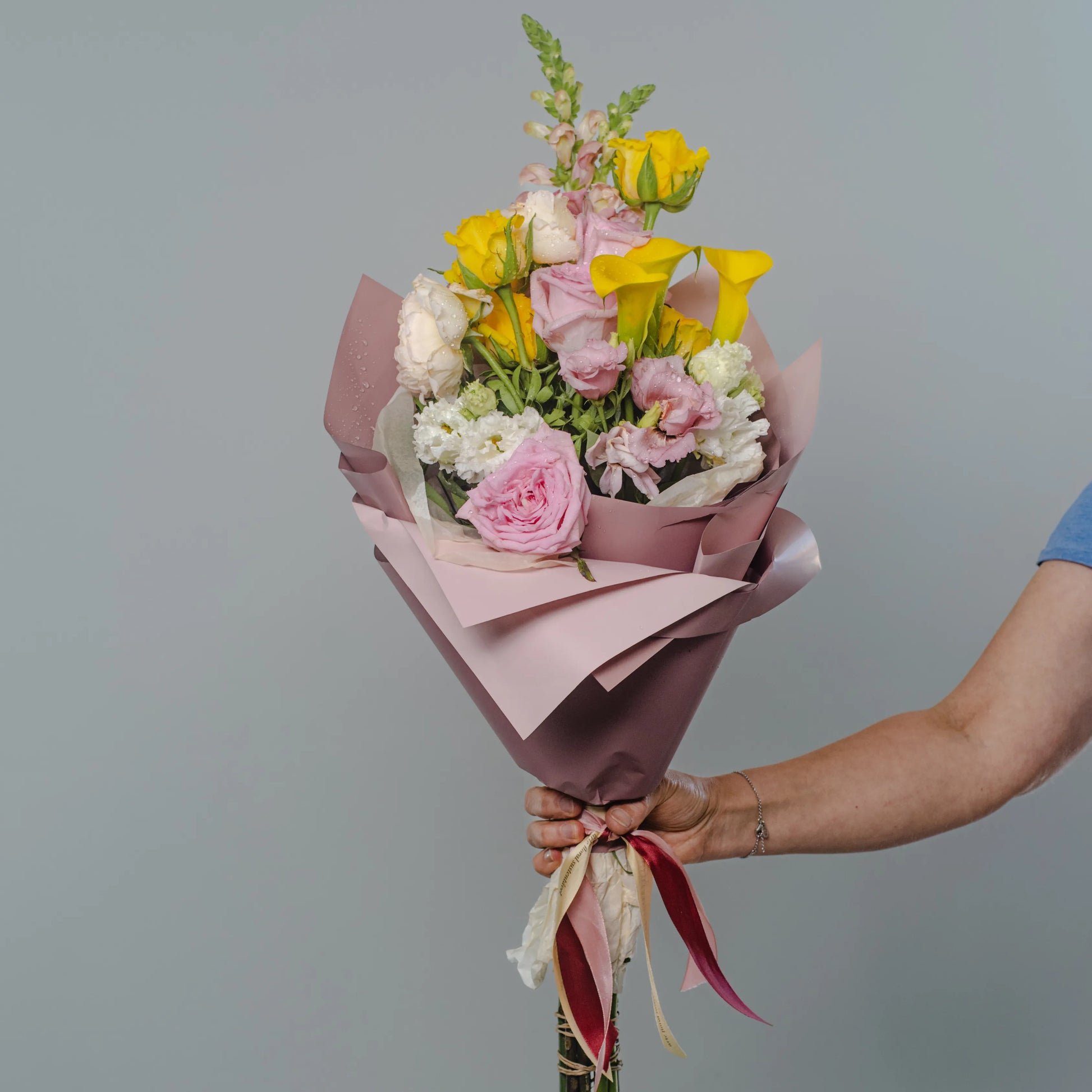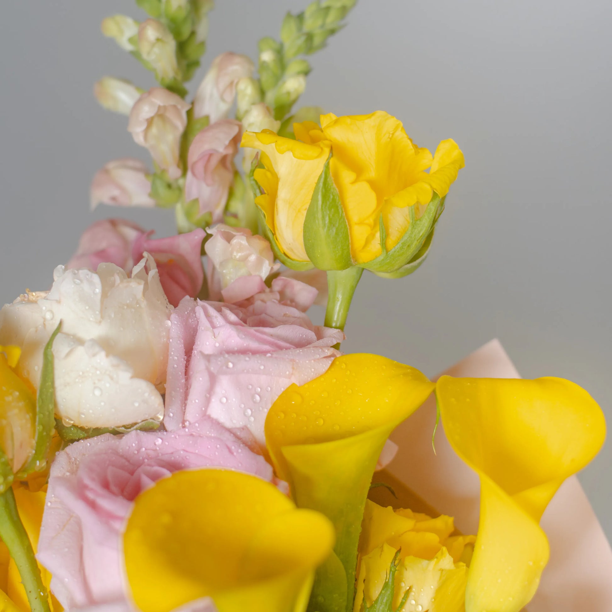 O ramo “Cores do Pôr do Sol” é uma paleta delicada de tons quentes e pastéis que capturam a beleza do entardecer. As vibrantes calas e rosas amarelas criam uma atmosfera de um pôr do sol dourado, trazendo uma sensação de calor e luz à composição. O lírio branco adiciona frescor e pureza, como os últimos raios de sol iluminando o horizonte. O antirrínio rosa e as rosas delicadas realçam o romantismo da noite, enquanto a hortênsia rosa completa o cenário com suavidade e ternura. “Cores do Pôr do Sol” é a escolha perfeita para quem deseja guardar no coração a luz e a beleza do momento.