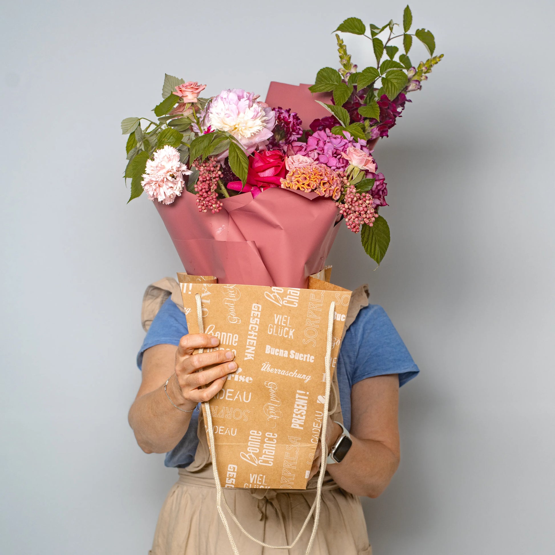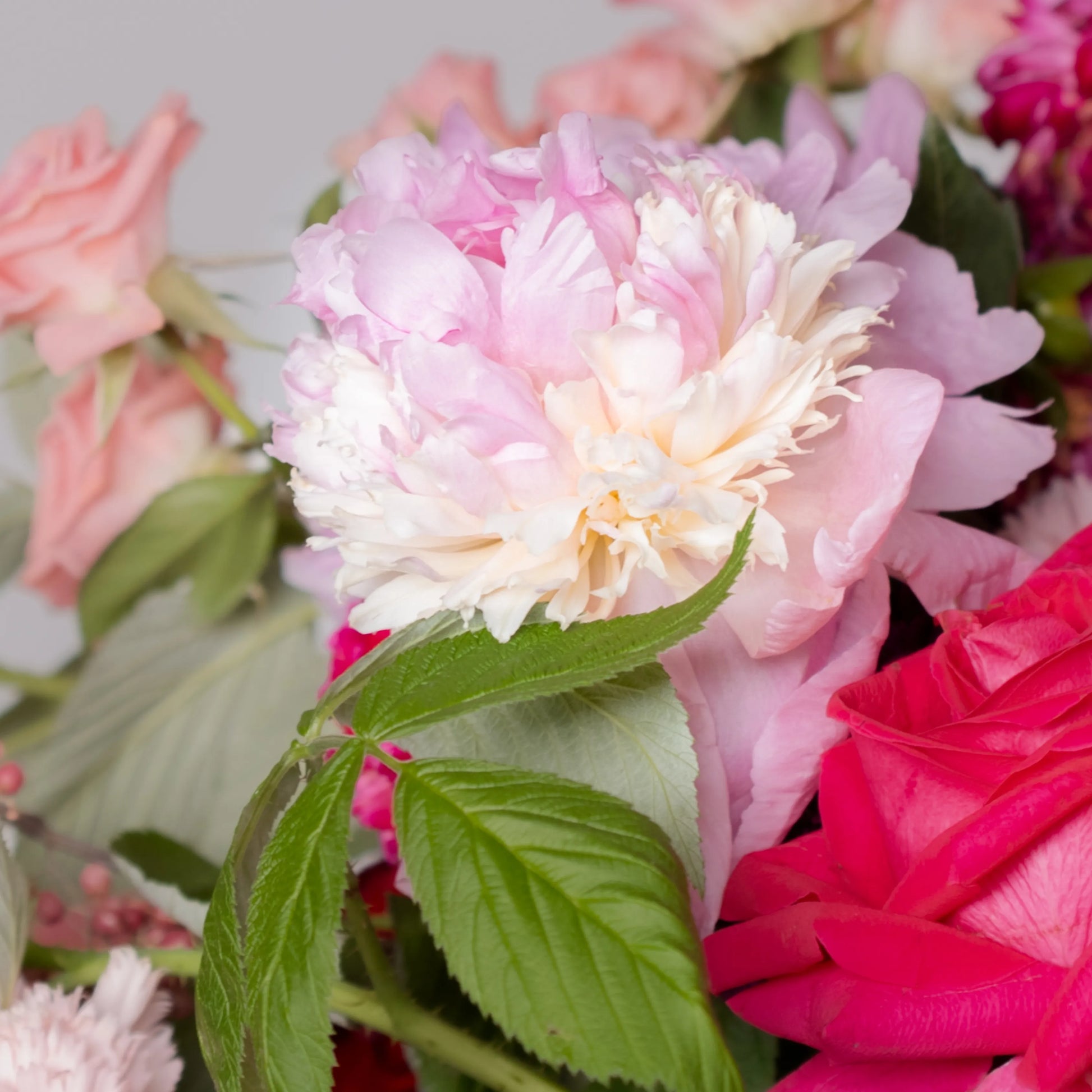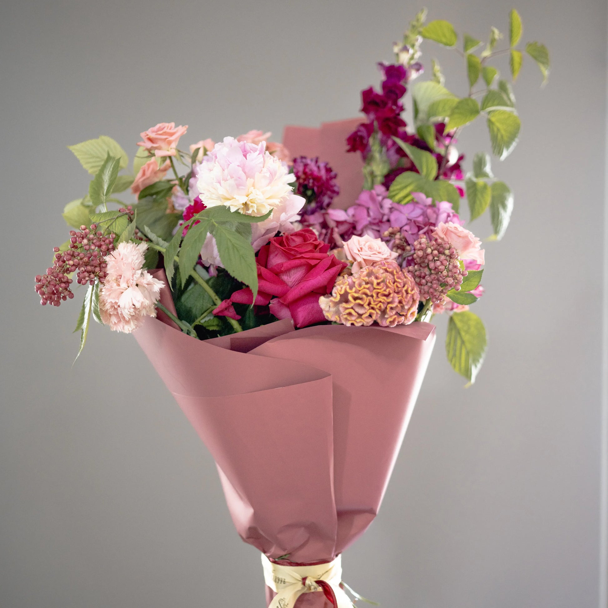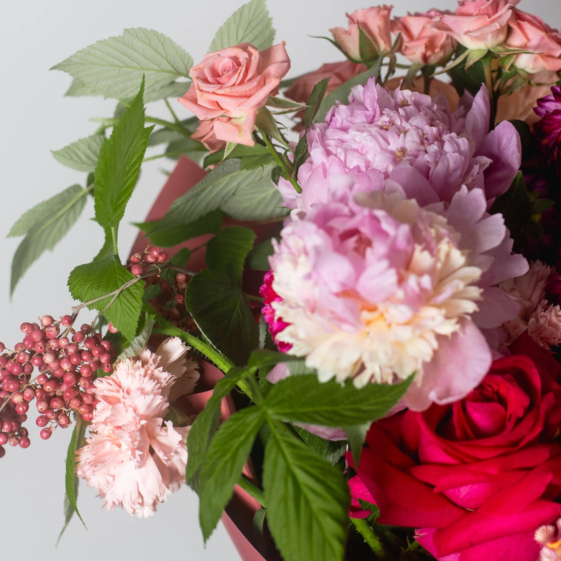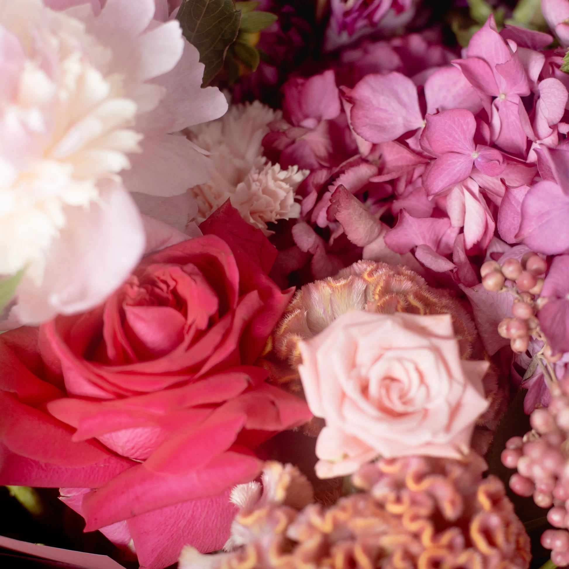 O ramo “Encanto do Jardim” é uma representação refinada do romantismo de um jardim, combinando suaves e ricos tons de rosa e bordô. A hortênsia rosa cria a base da composição, conferindo ao buquê plenitude e delicadeza. As peônias e rosas rosas adicionam leveza e elegância, destacando o caráter romântico do buquê. As rosas bordô e o antirrínio aportam profundidade e intensidade, intensificando a expressividade da composição. As celósias rosa e as bagas de pimenta rosa trazem acentos texturais, enquanto os ramos de framboesa acrescentam um toque de selvageria natural e unicidade. “Encanto do Jardim” é a escolha perfeita para quem valoriza a beleza requintada e a suavidade dos tons naturais.