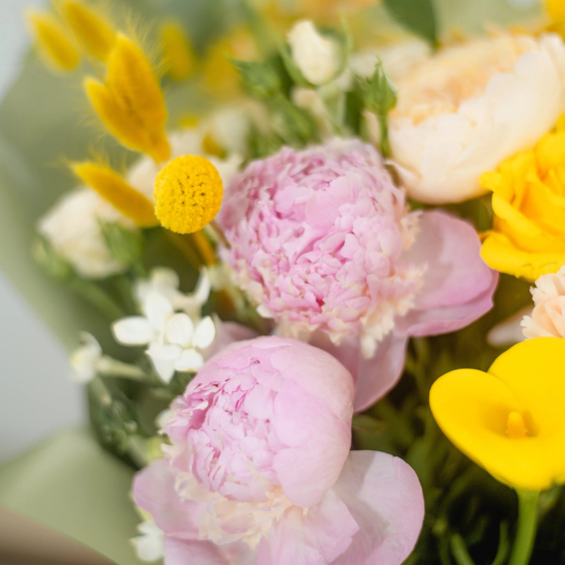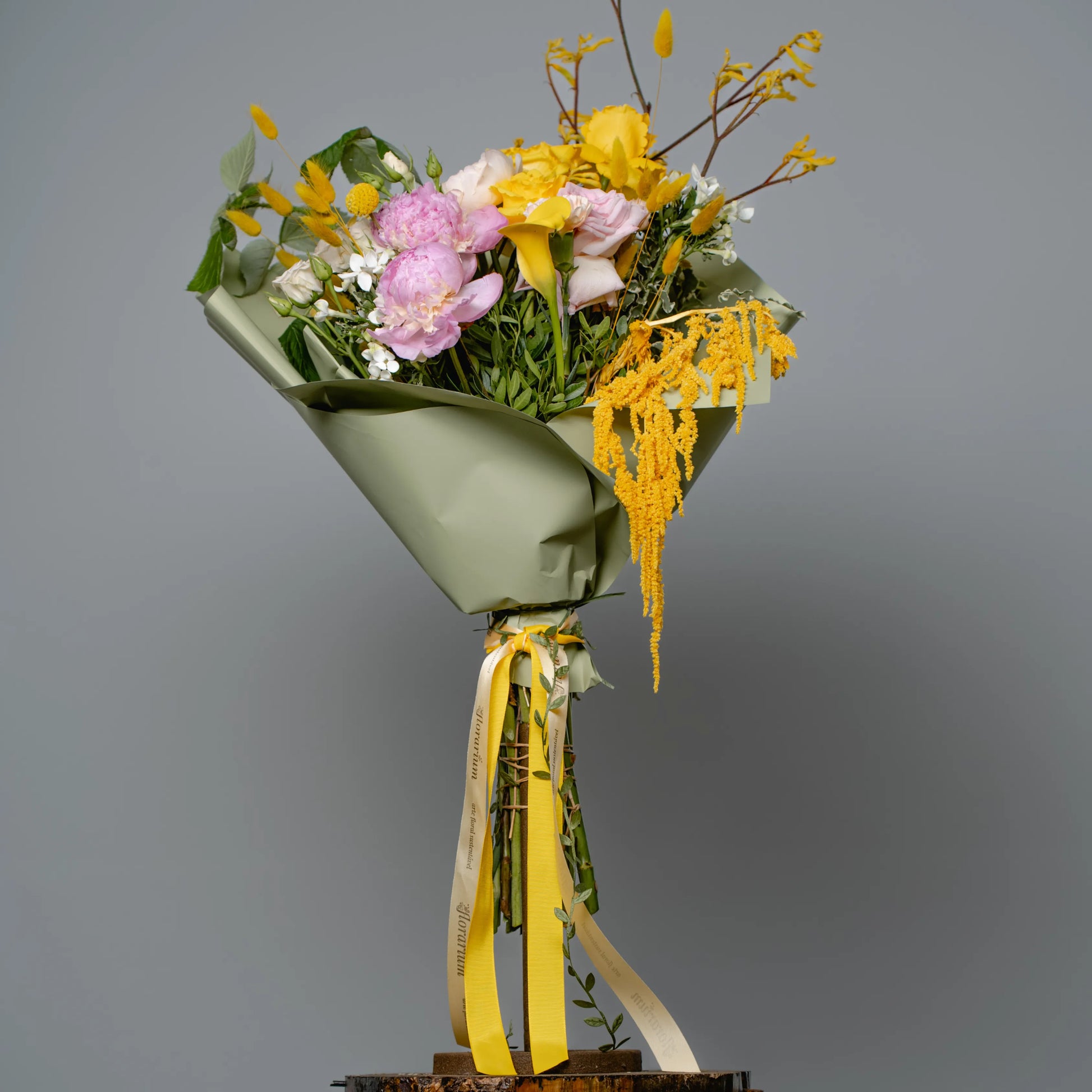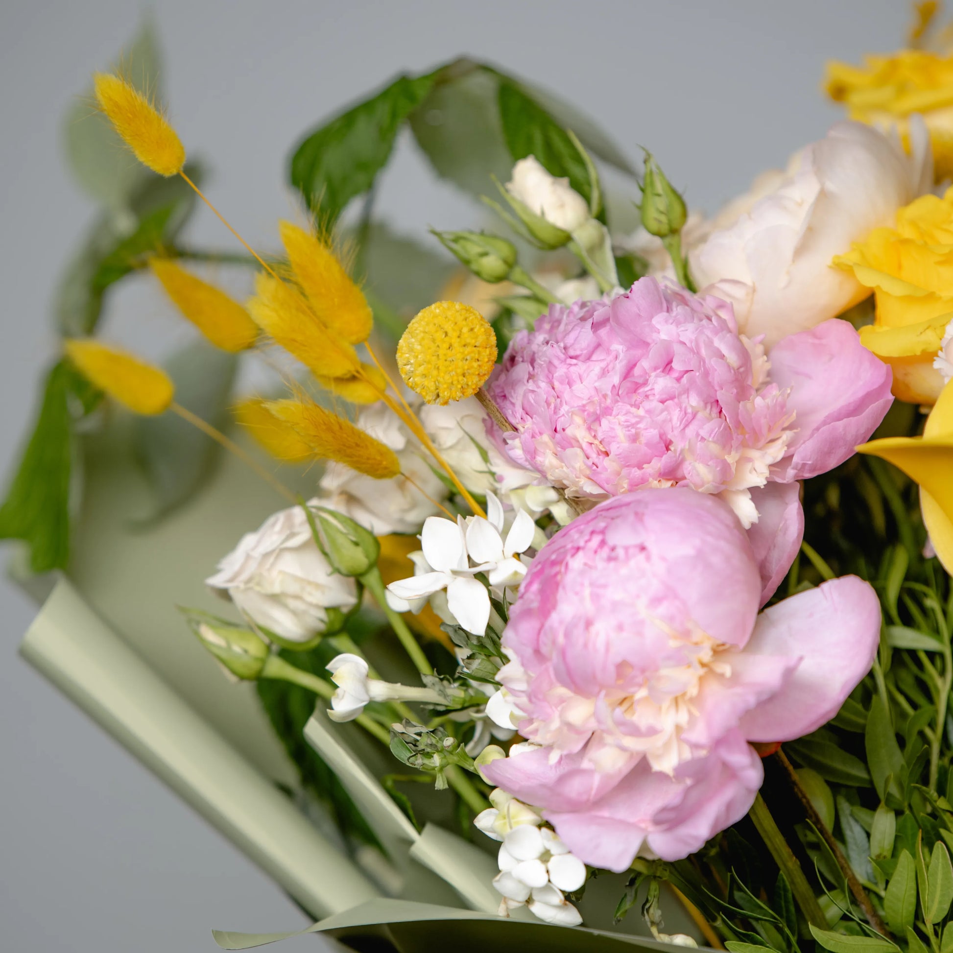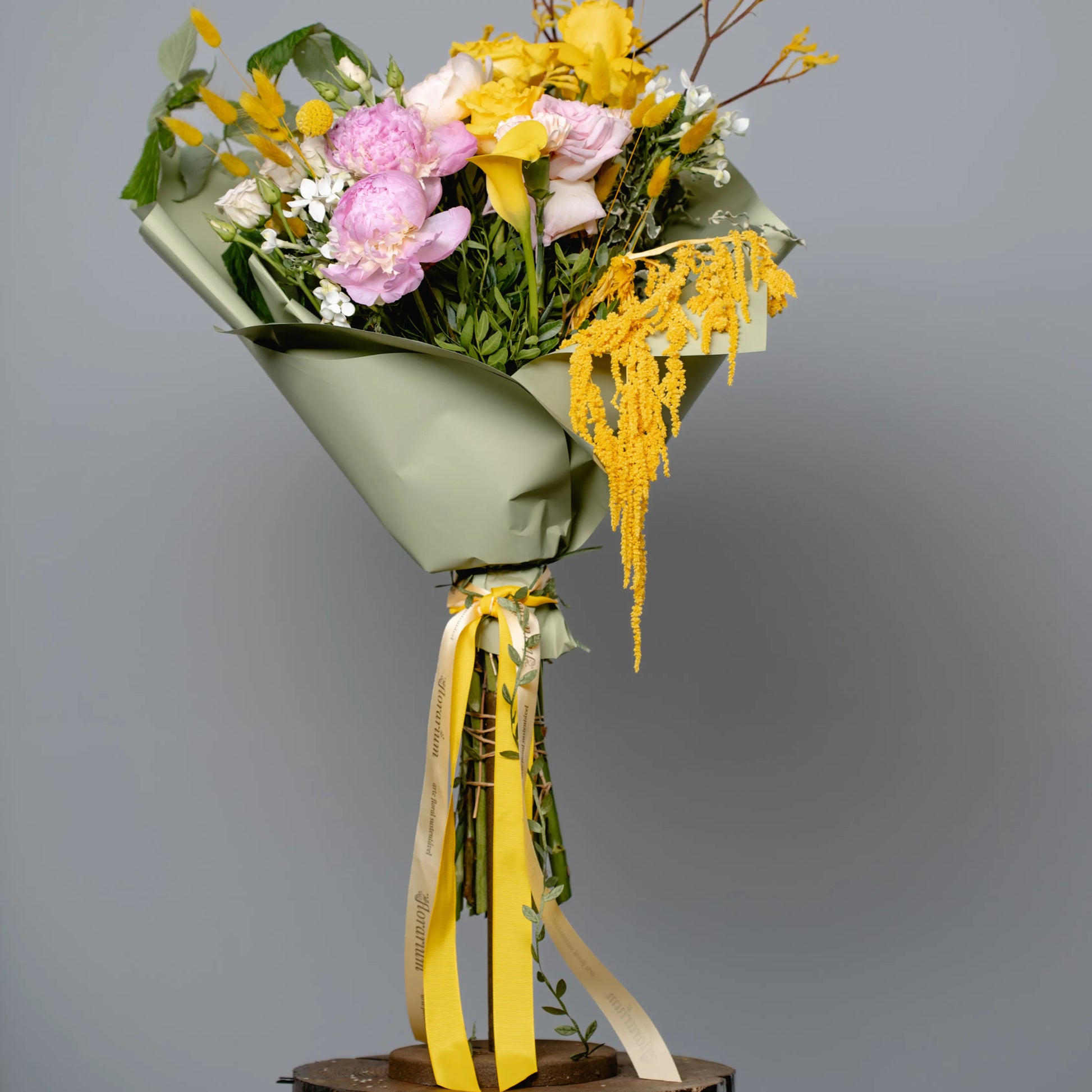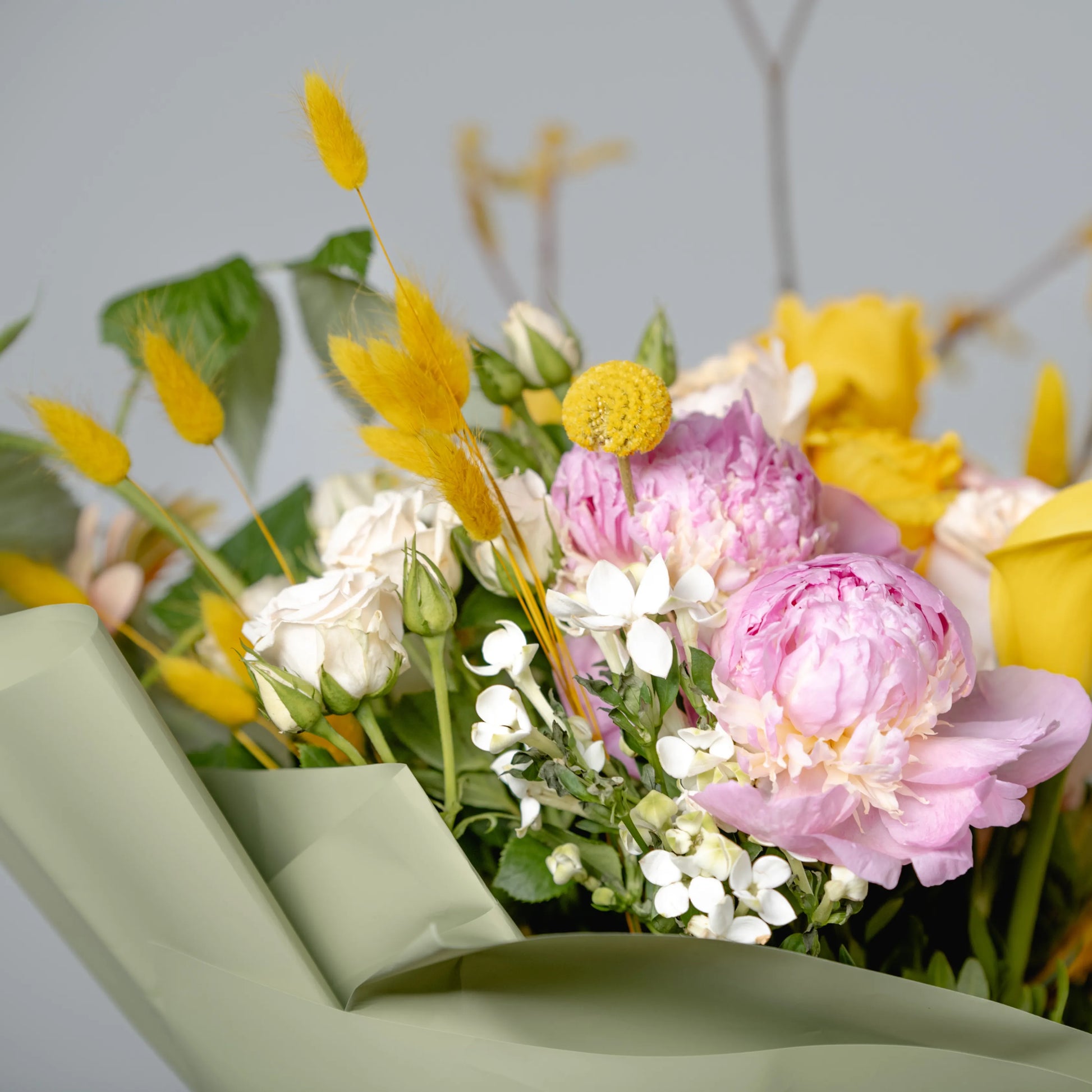 O ramo “Energia da Manhã Ensolorada” é uma combinação vibrante e alegre de flores que transmite a frescura revigorante e o calor dos primeiros raios de sol. As peônias rosas simbolizam a ternura e o romantismo da manhã, entrelaçando-se suavemente com as rosas rosa claro, que adicionam ao buquê uma elegância refinada. As rosas e jarros amarelas brilhantes personificam a luz solar e a alegria de um novo dia, enchendo a composição de energia e otimismo. O oxipétalo branco traz um toque de frescor e pureza, enquanto os ramos de anigozanthos amarelos acrescentam acentos texturais, destacando a beleza natural do ramo. “Energia da Manhã Ensolorado” é a maneira perfeita de começar o dia com positividade e pensamentos iluminados.