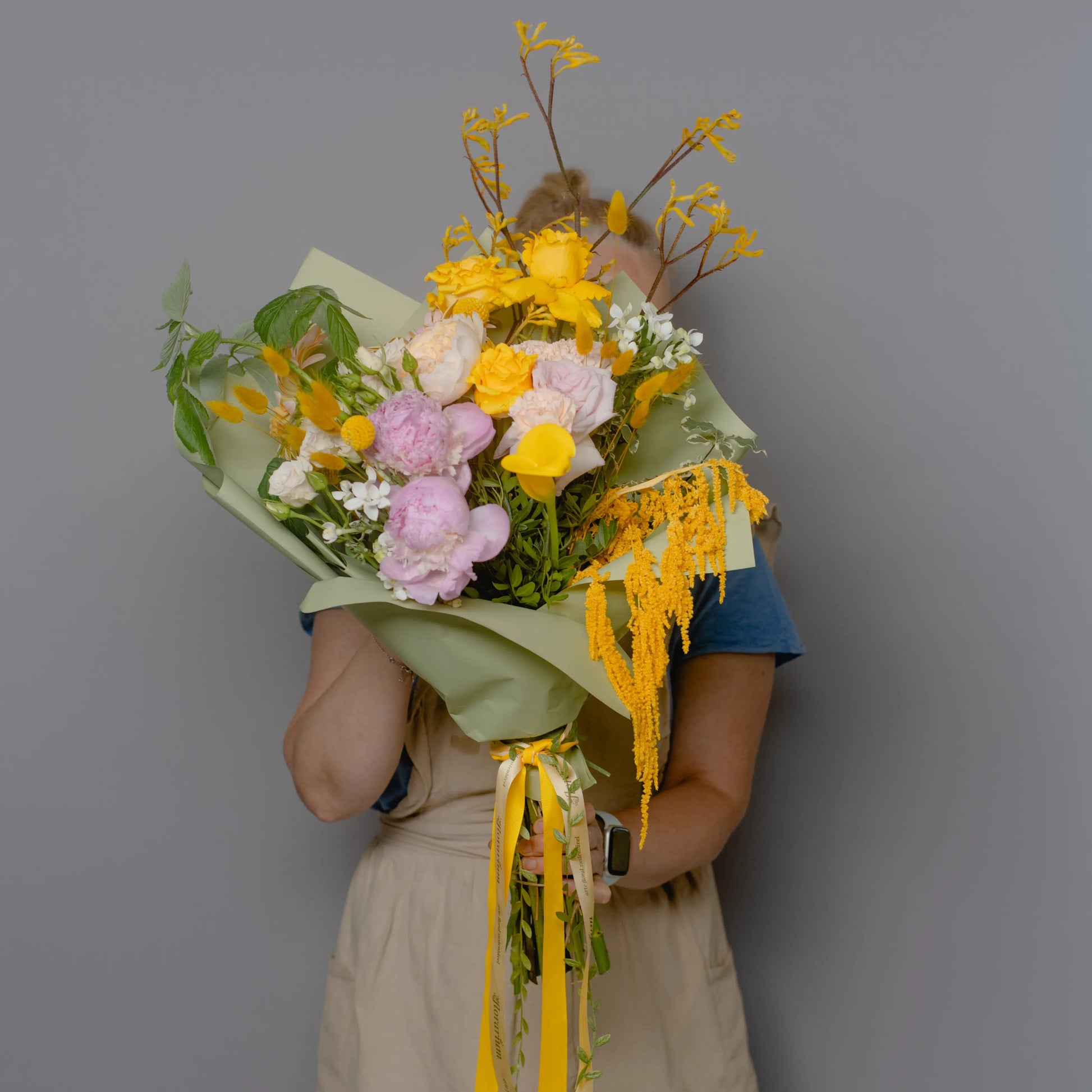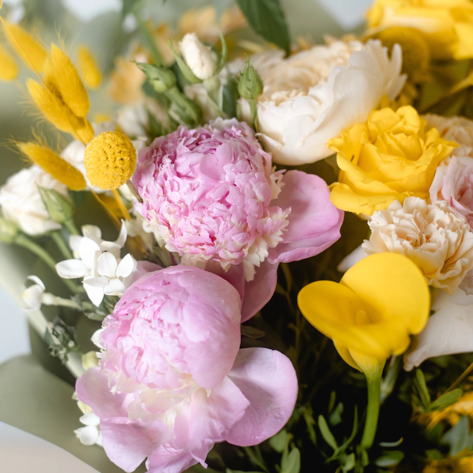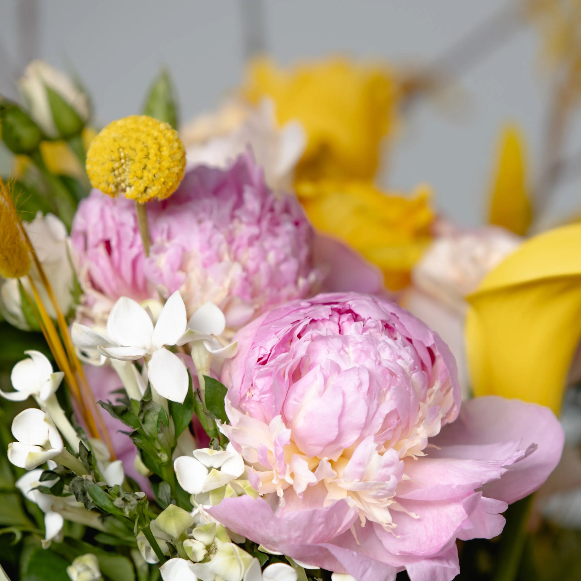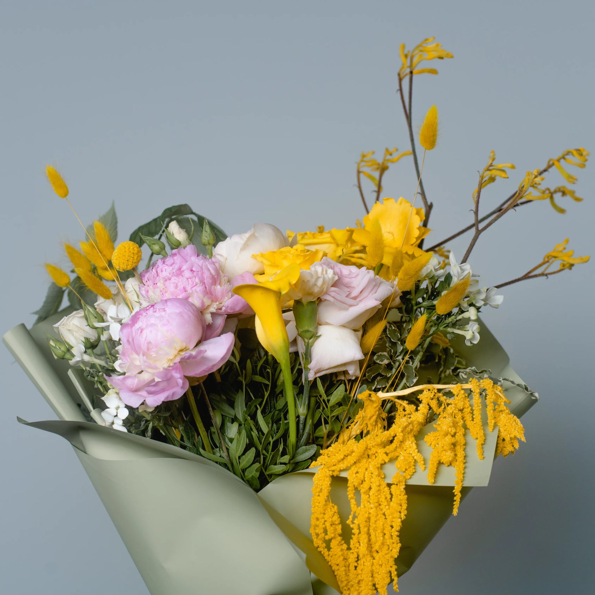 O ramo “Energia da Manhã Ensolorada” é uma combinação vibrante e alegre de flores que transmite a frescura revigorante e o calor dos primeiros raios de sol. As peônias rosas simbolizam a ternura e o romantismo da manhã, entrelaçando-se suavemente com as rosas rosa claro, que adicionam ao buquê uma elegância refinada. As rosas e jarros amarelas brilhantes personificam a luz solar e a alegria de um novo dia, enchendo a composição de energia e otimismo. O oxipétalo branco traz um toque de frescor e pureza, enquanto os ramos de anigozanthos amarelos acrescentam acentos texturais, destacando a beleza natural do ramo. “Energia da Manhã Ensolorado” é a maneira perfeita de começar o dia com positividade e pensamentos iluminados.