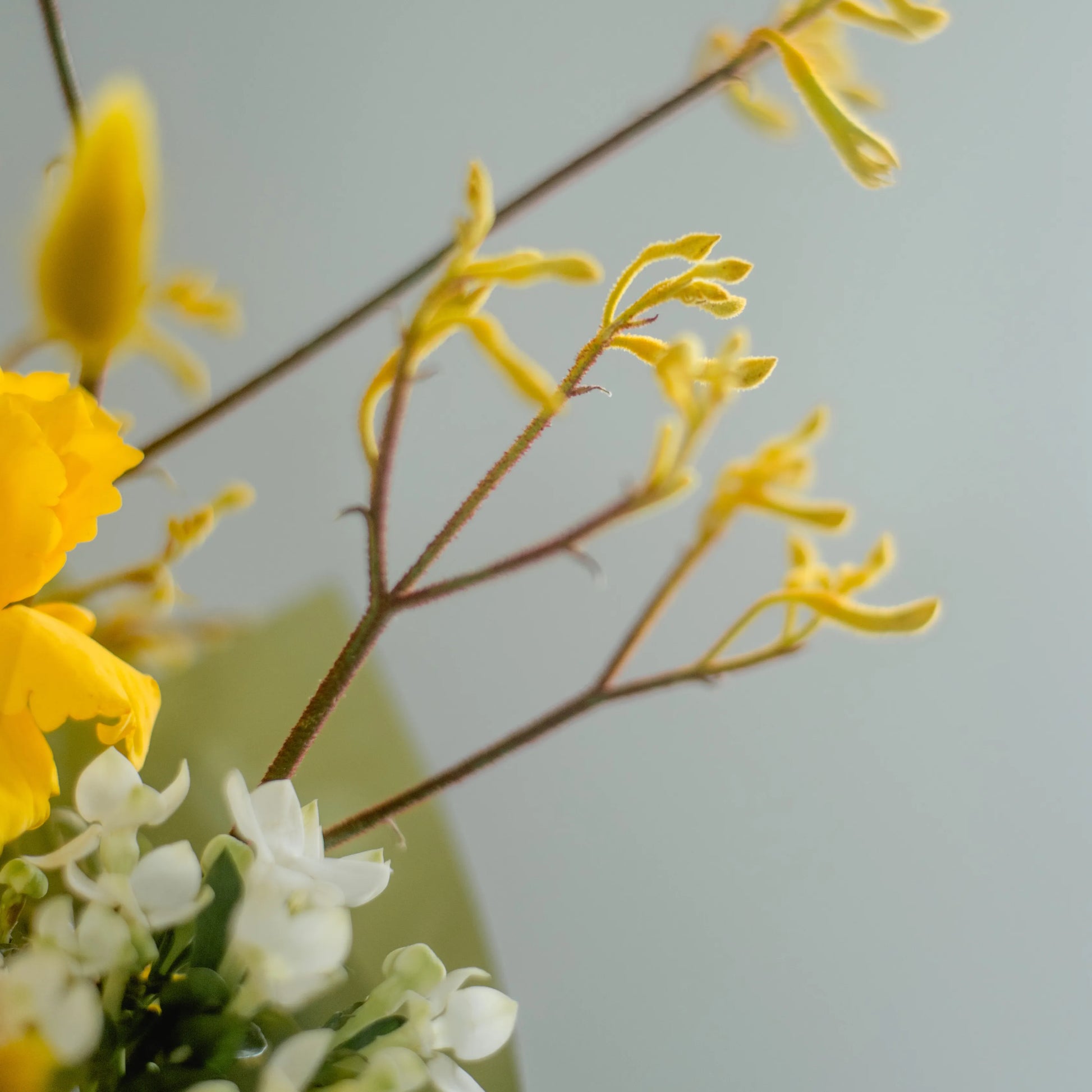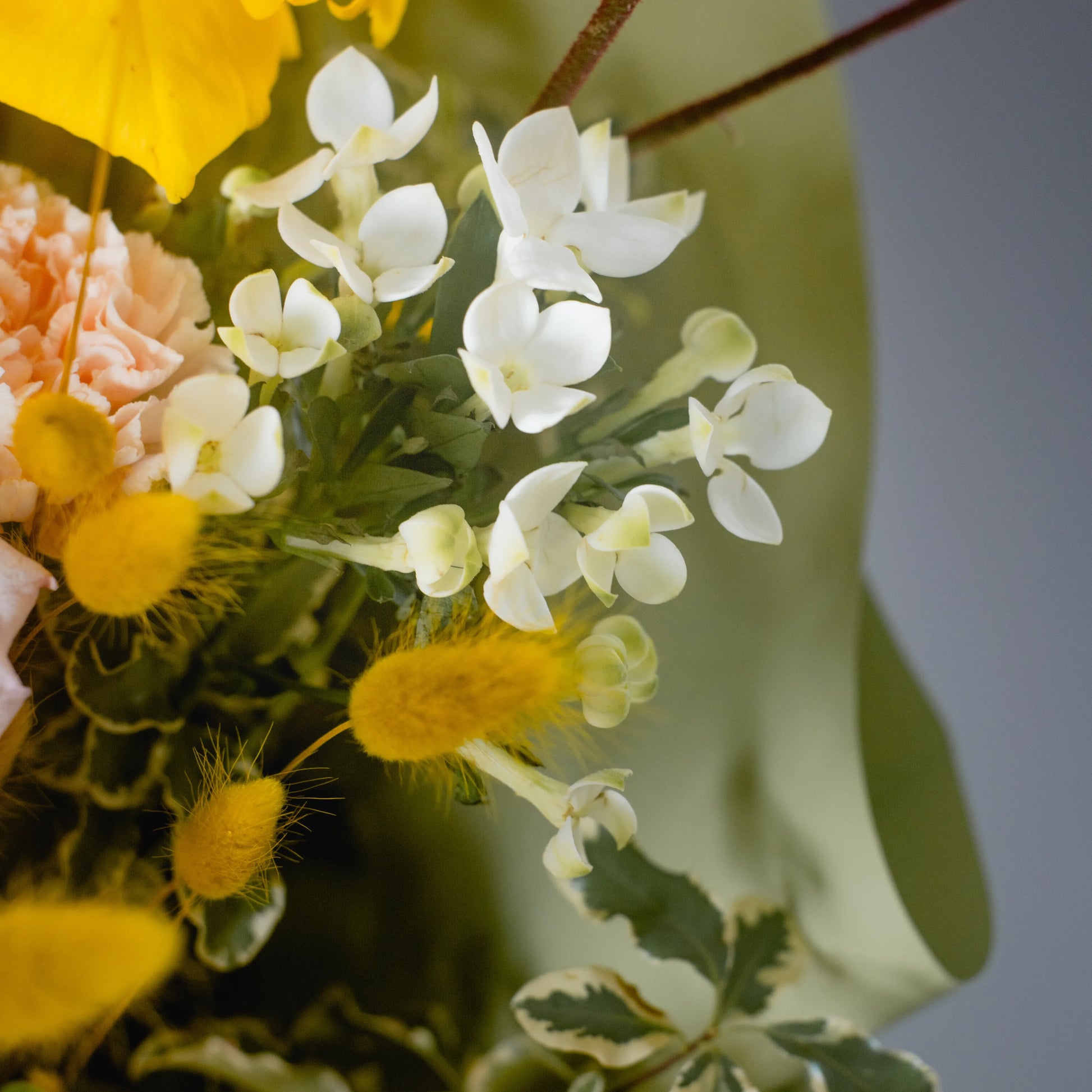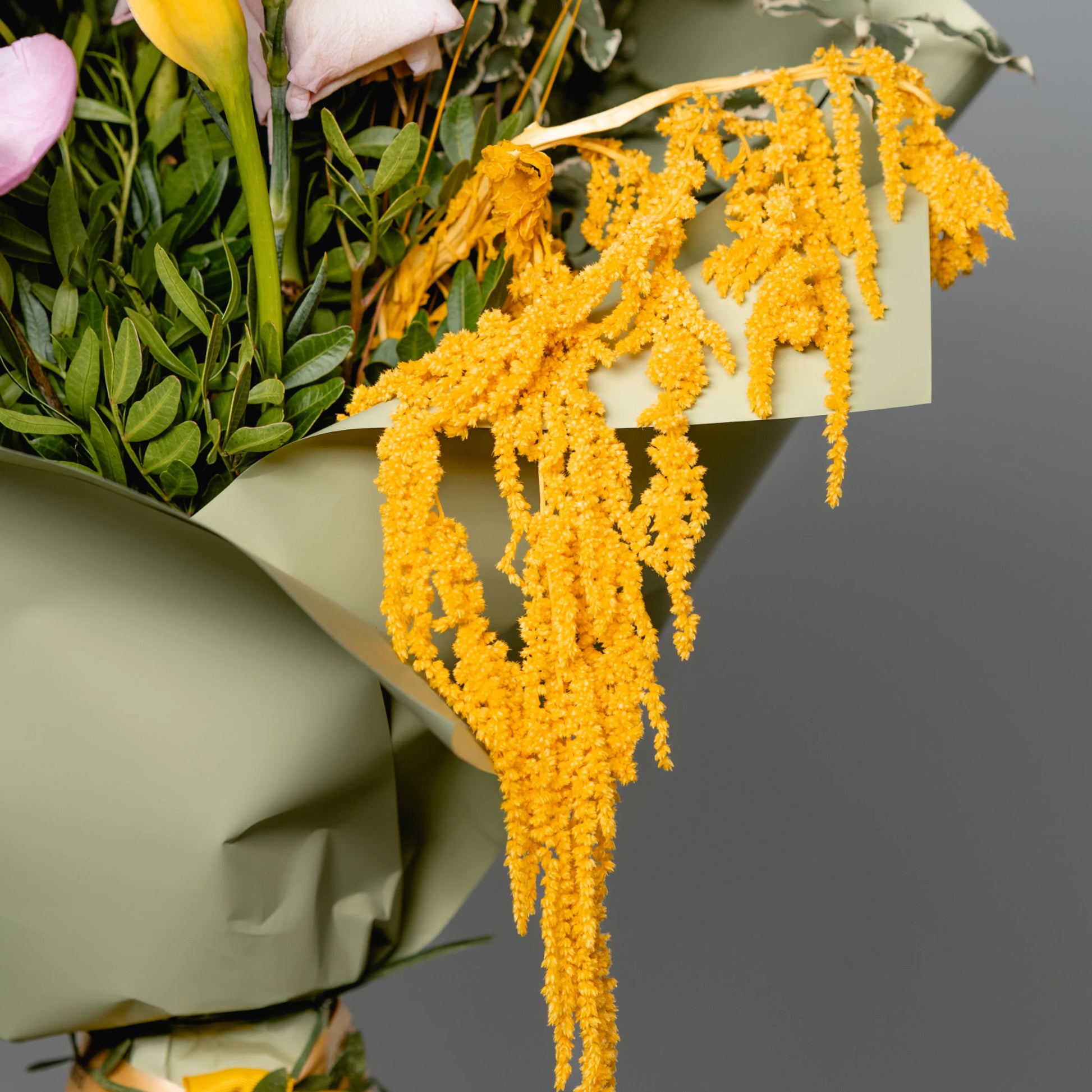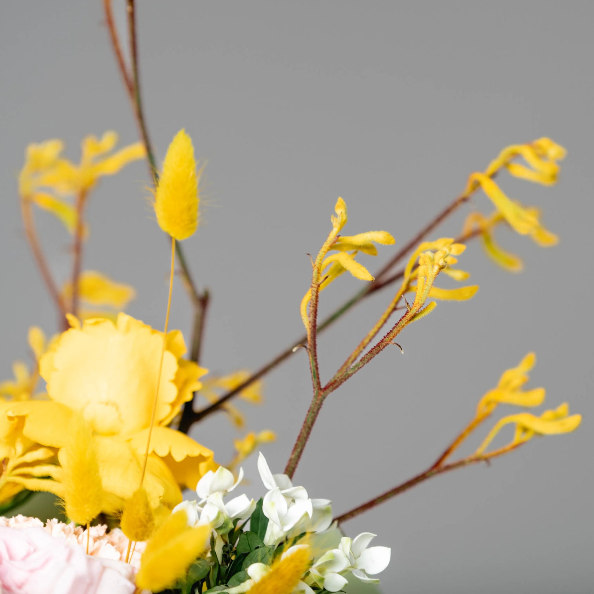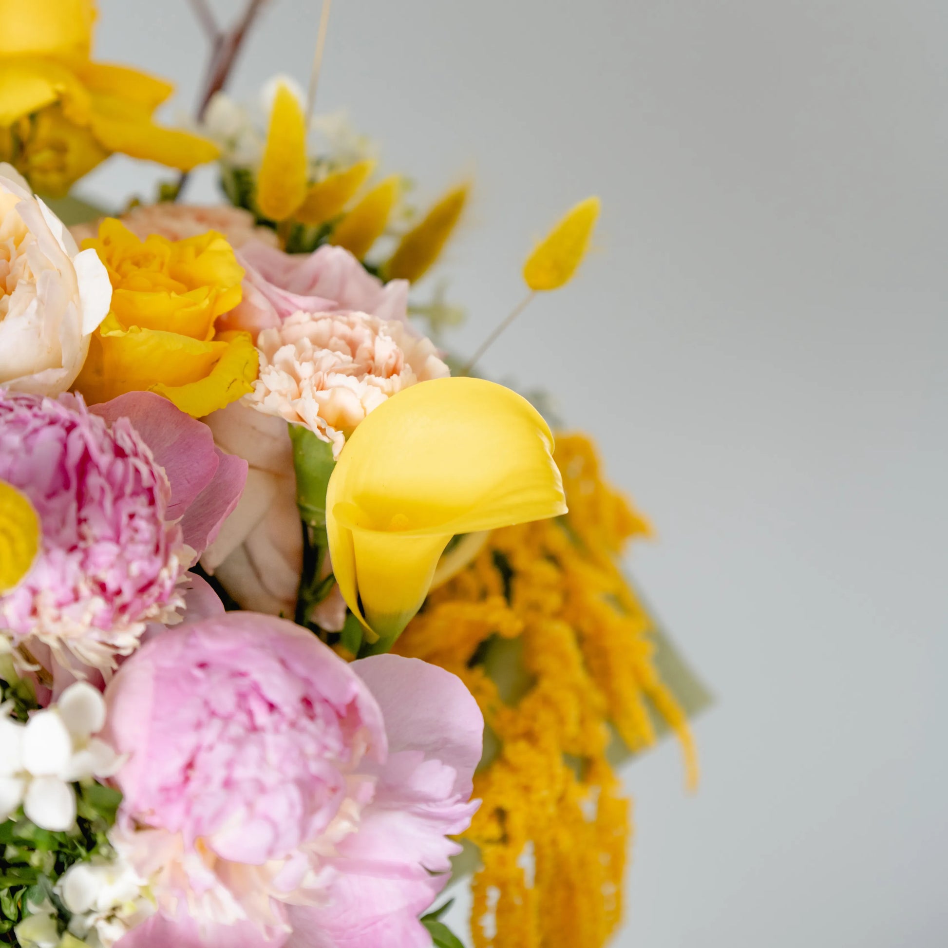 O ramo “Energia da Manhã Ensolorada” é uma combinação vibrante e alegre de flores que transmite a frescura revigorante e o calor dos primeiros raios de sol. As peônias rosas simbolizam a ternura e o romantismo da manhã, entrelaçando-se suavemente com as rosas rosa claro, que adicionam ao buquê uma elegância refinada. As rosas e jarros amarelas brilhantes personificam a luz solar e a alegria de um novo dia, enchendo a composição de energia e otimismo. O oxipétalo branco traz um toque de frescor e pureza, enquanto os ramos de anigozanthos amarelos acrescentam acentos texturais, destacando a beleza natural do ramo. “Energia da Manhã Ensolorado” é a maneira perfeita de começar o dia com positividade e pensamentos iluminados.