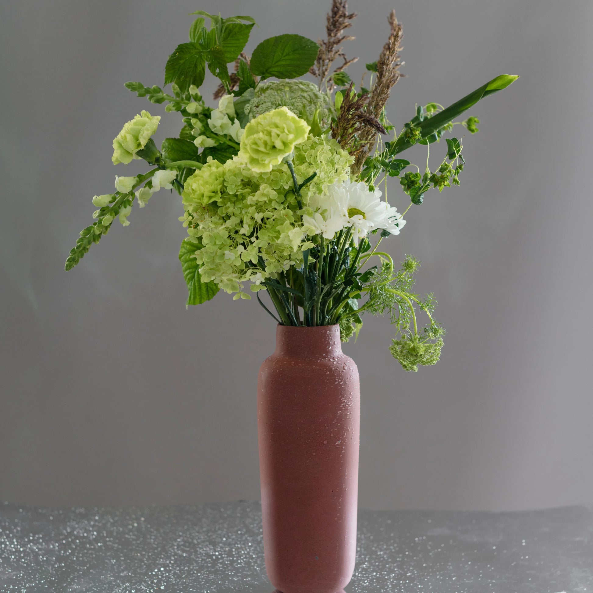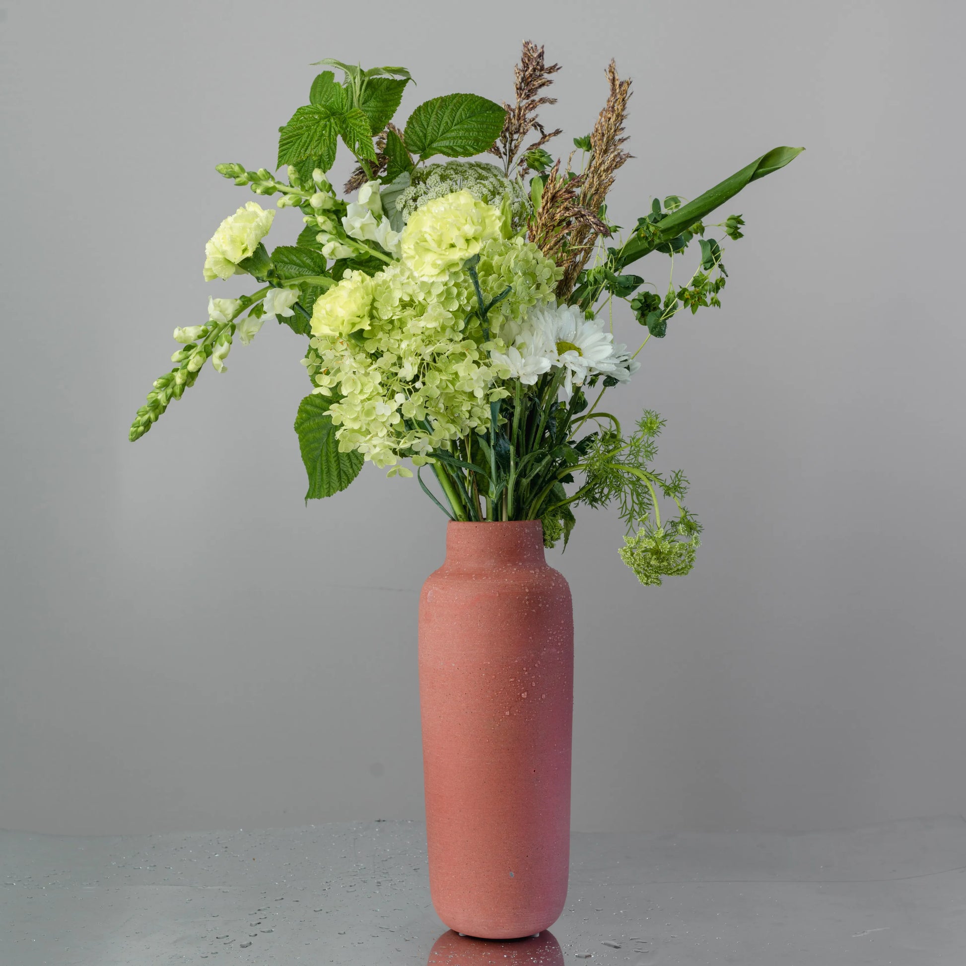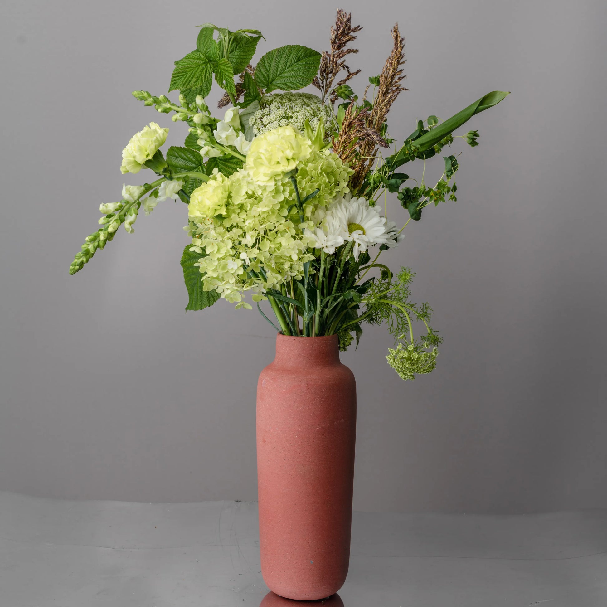 O ramo “Green Mix” é uma composição fresca e natural, reunida nos mais requintados tons de verde. A hortênsia verde cria volume e suavidade, tornando-se a base do ramo. O viburno e a alchemila adicionam textura e leveza, destacando a beleza natural e a simplicidade. Os cravos de cor de menta e o antúrio esverdeado conferem ao ramo suaves tons de frescor, lembrando uma manhã fresca de verão. As ervas campestres e os ramos de framboesa completam a composição, adicionando toques naturais leves e criando uma sensação de verdadeira harmonia verde. O ramo “Green Mix” simboliza simplicidade e sofisticação natural, proporcionando uma sensação de tranquilidade e frescor.