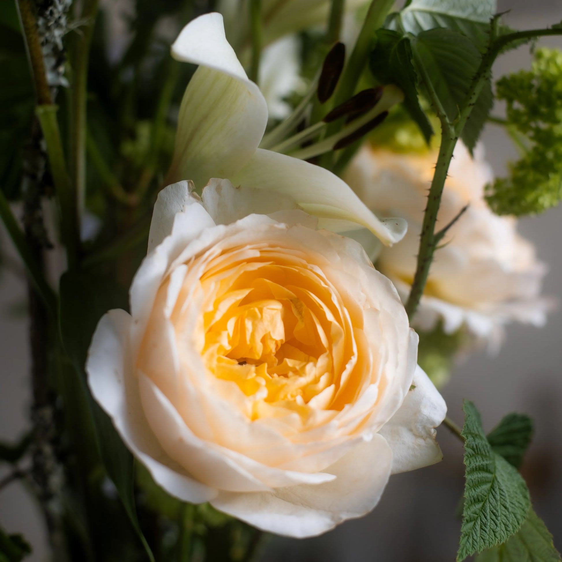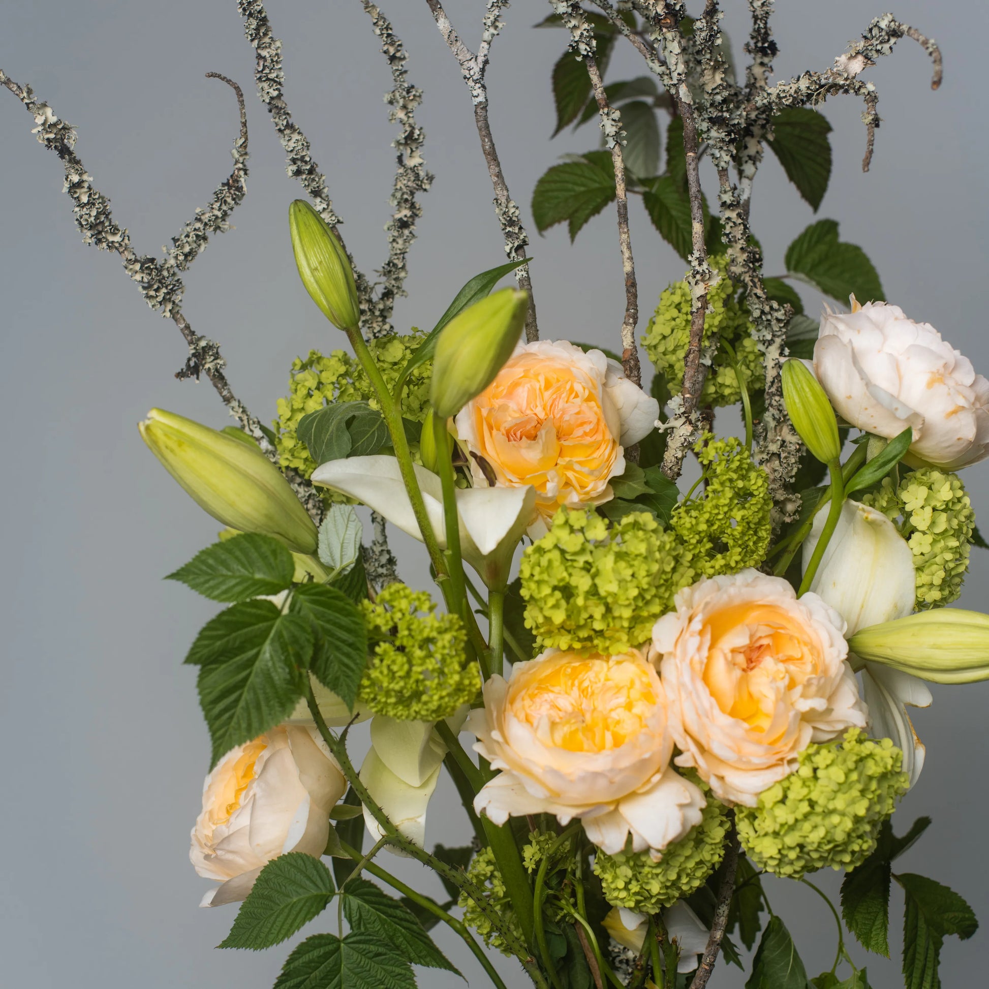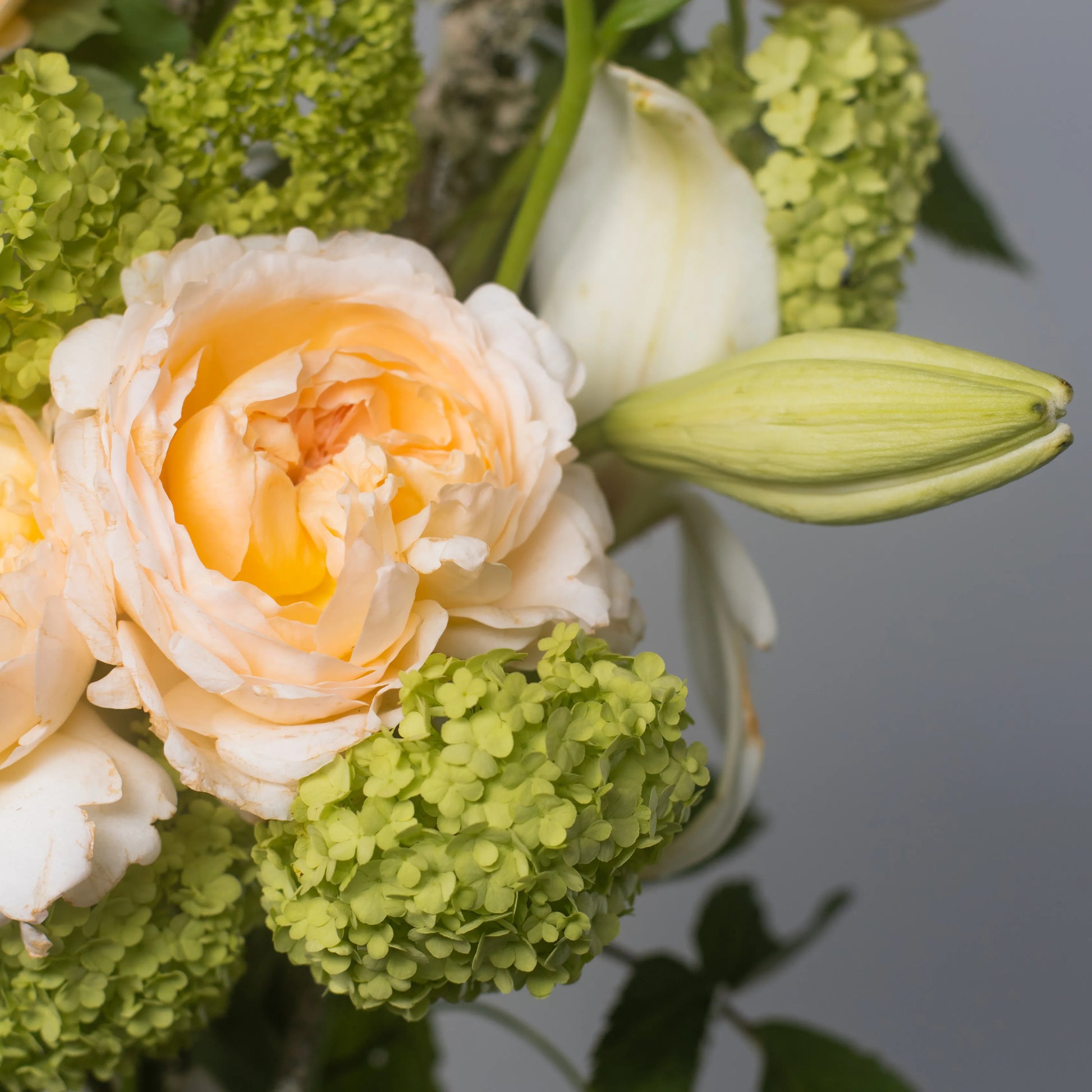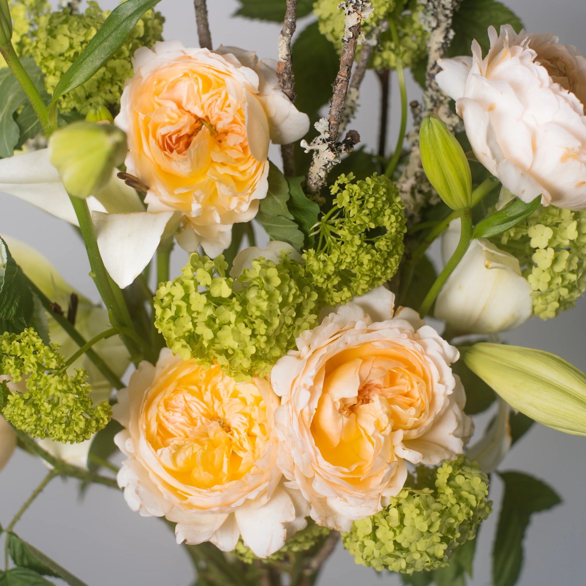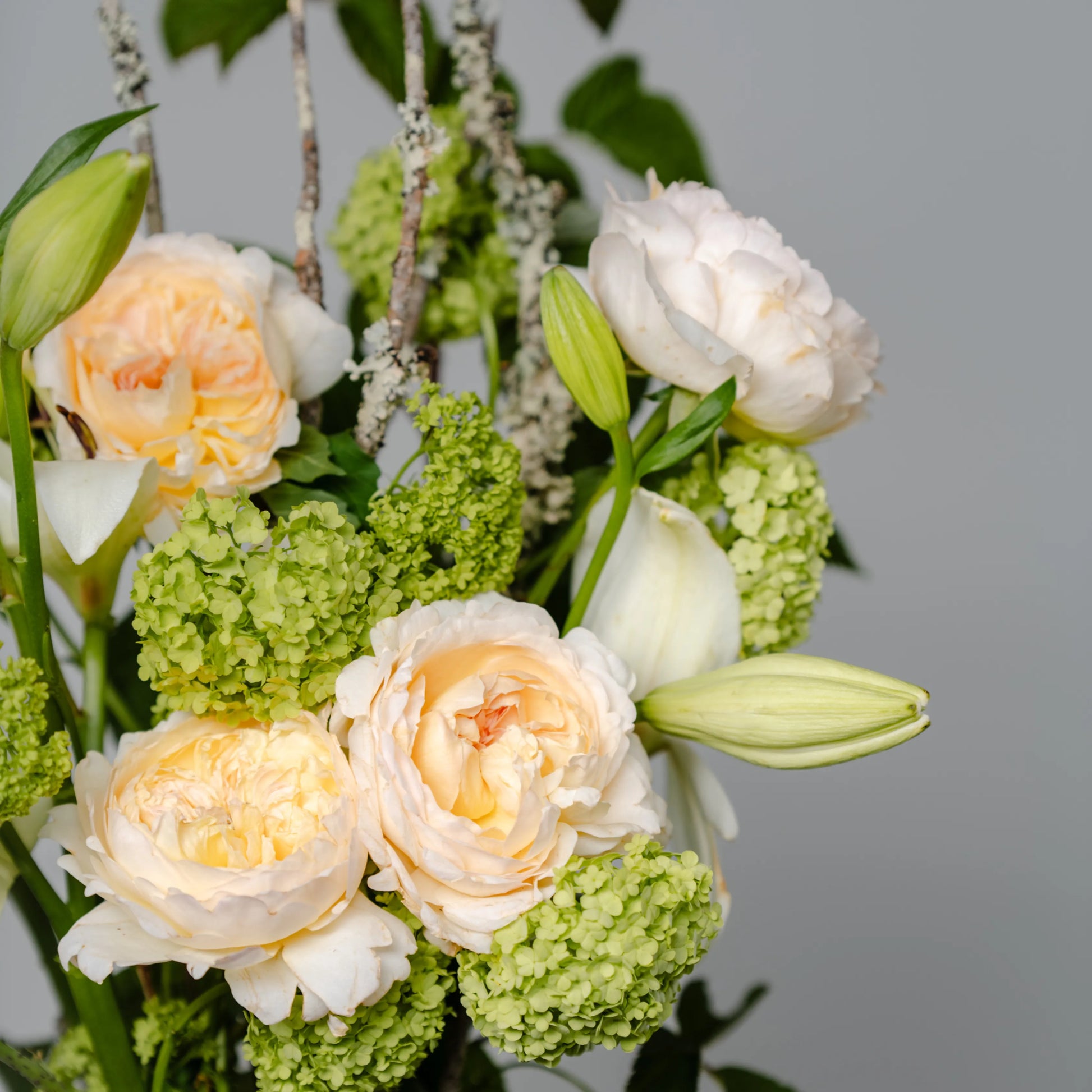 O ramo “Jardim Selvagem” é uma combinação refinada de beleza natural e elegância descontraída. As rosas pêssego em forma de peônia criam uma base calorosa e romântica, simbolizando ternura e harmonia. As lírios brancos adicionam sofisticação e pureza ao buquê, seus grandes flores lembram a tranquilidade e a majestade da natureza. Os ramos de framboesa conferem vivacidade e um toque de selvageria à composição, realçando a beleza natural. O viburno adiciona frescor e acentos vibrantes, enquanto os magníficos ramos com musgo completam o visual, trazendo ao buquê uma sensação de profundidade e mistério da floresta. “Jardim Selvagem” é a escolha perfeita para quem deseja mergulhar na atmosfera da natureza selvagem e trazer uma parte dela para casa.