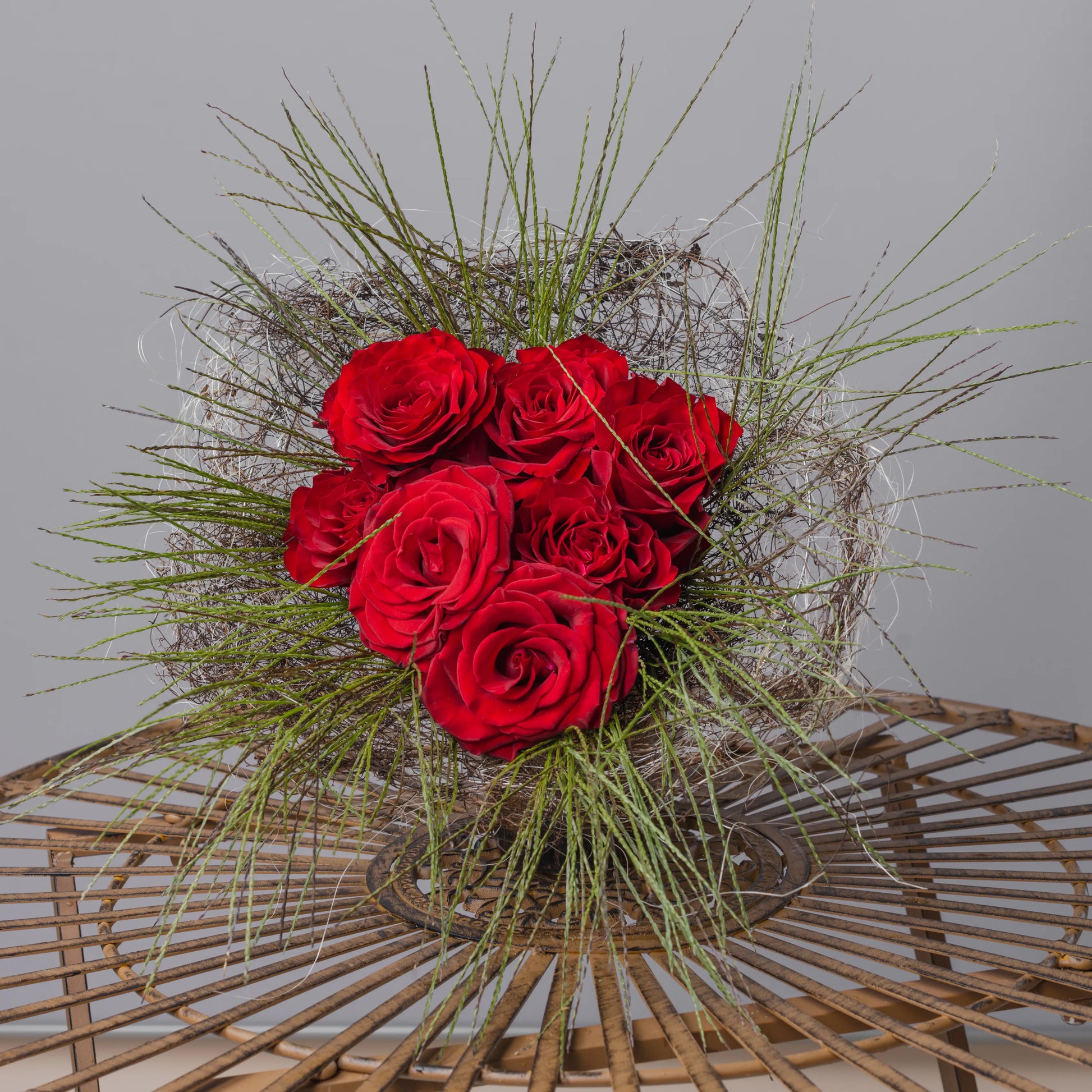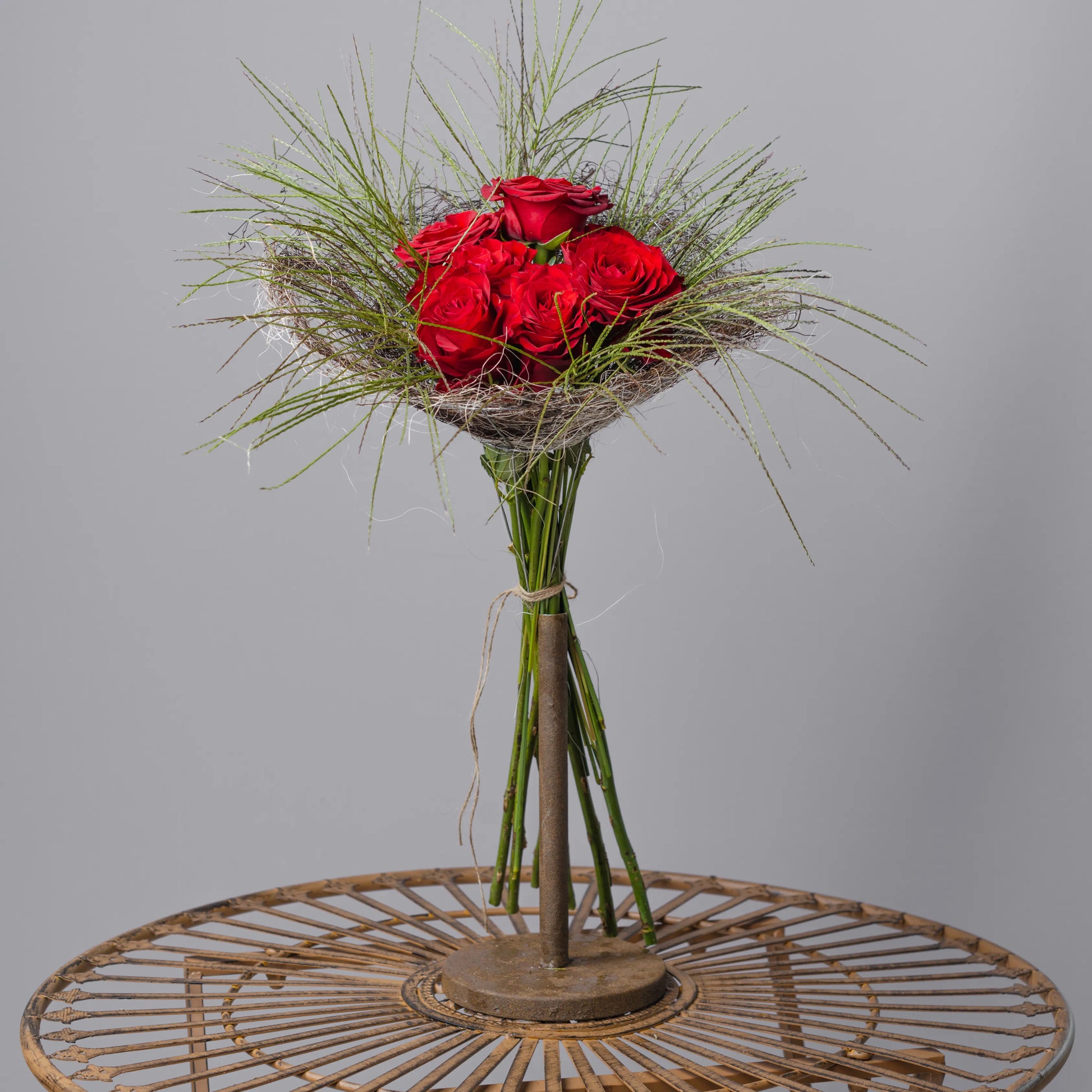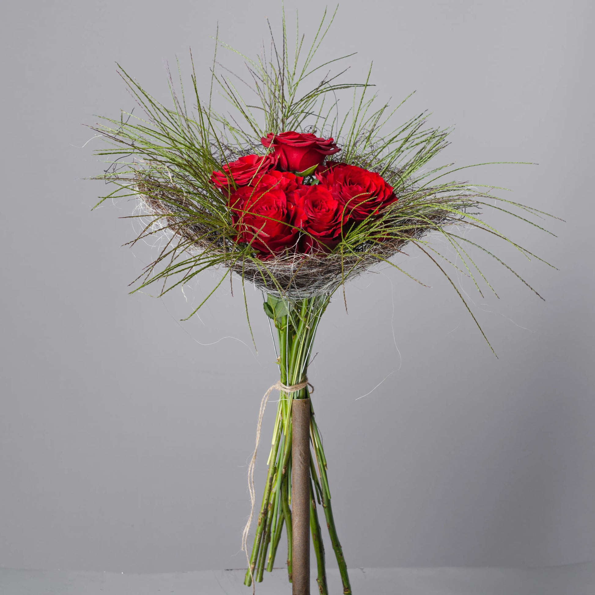 O ramo “Paixão” é uma harmoniosa combinação de luxuosas rosas vermelhas e delicadas ervas campestres. Essas flores, reunidas em uma estrutura de materiais naturais, simbolizam sentimentos profundos e paixão. Elementos naturais acrescentam uma singularidade e beleza natural ao buquê. “Paixão” é a escolha perfeita para quem deseja expressar suas emoções sinceras e criar uma impressão inesquecível.