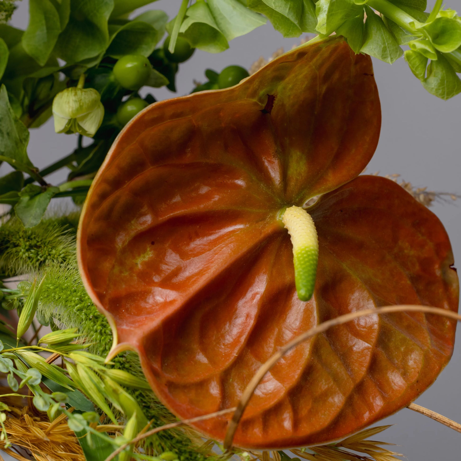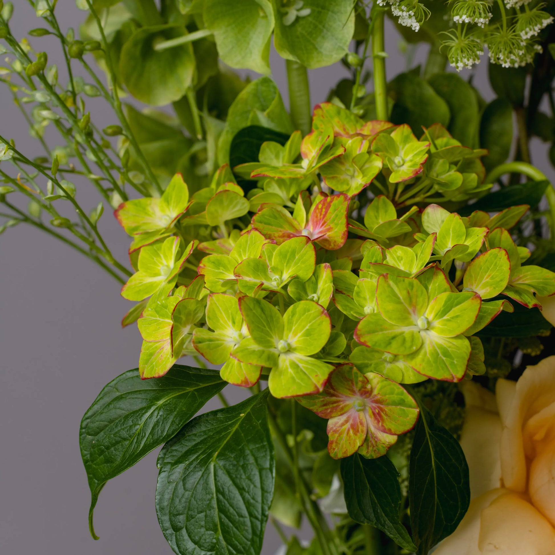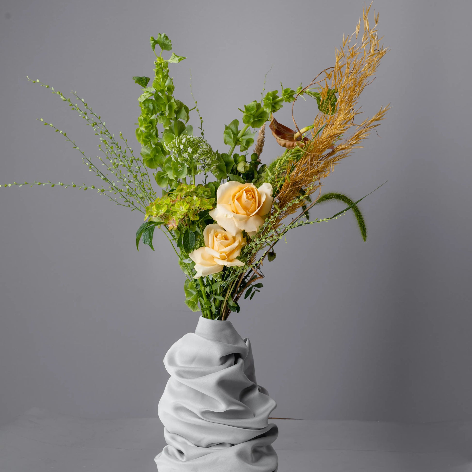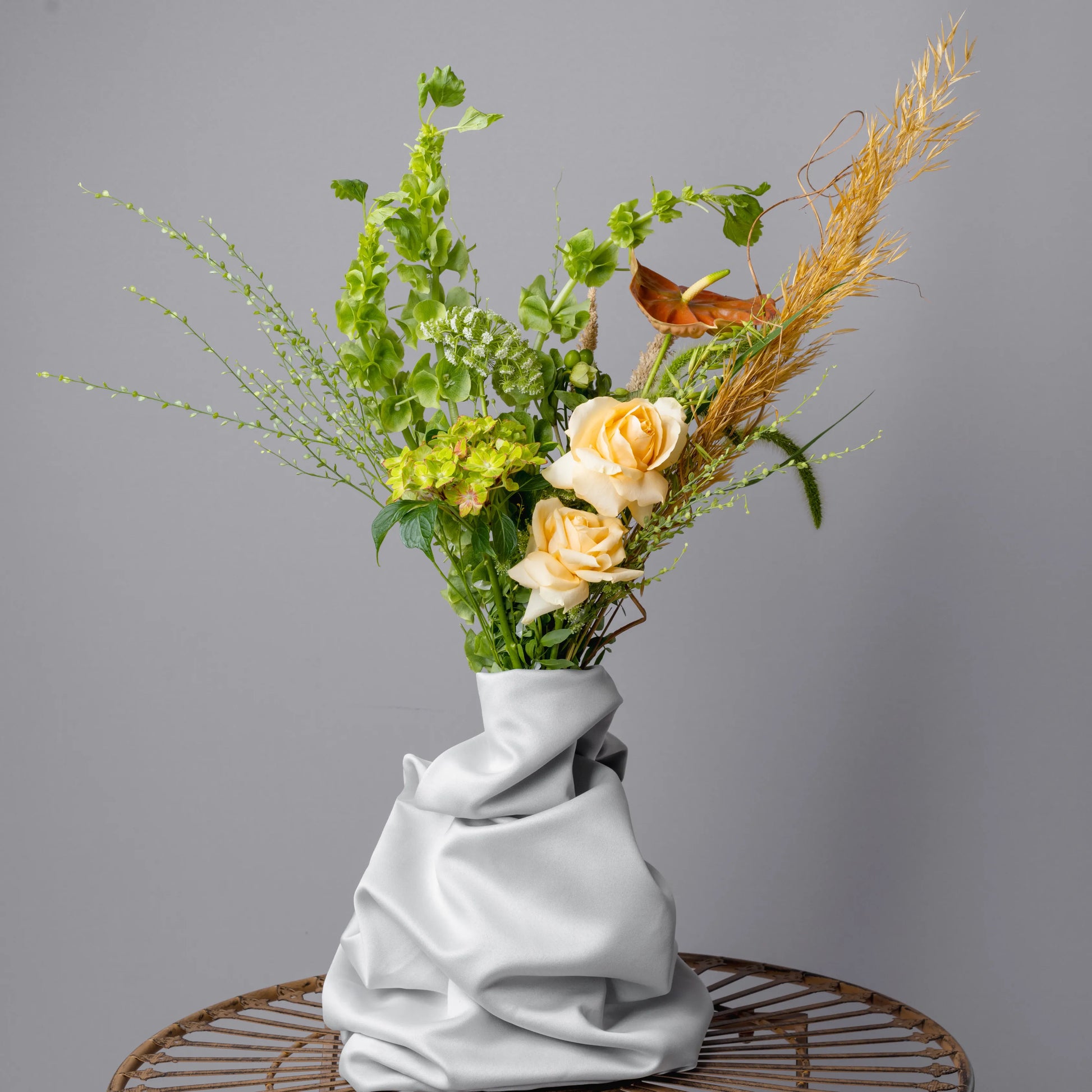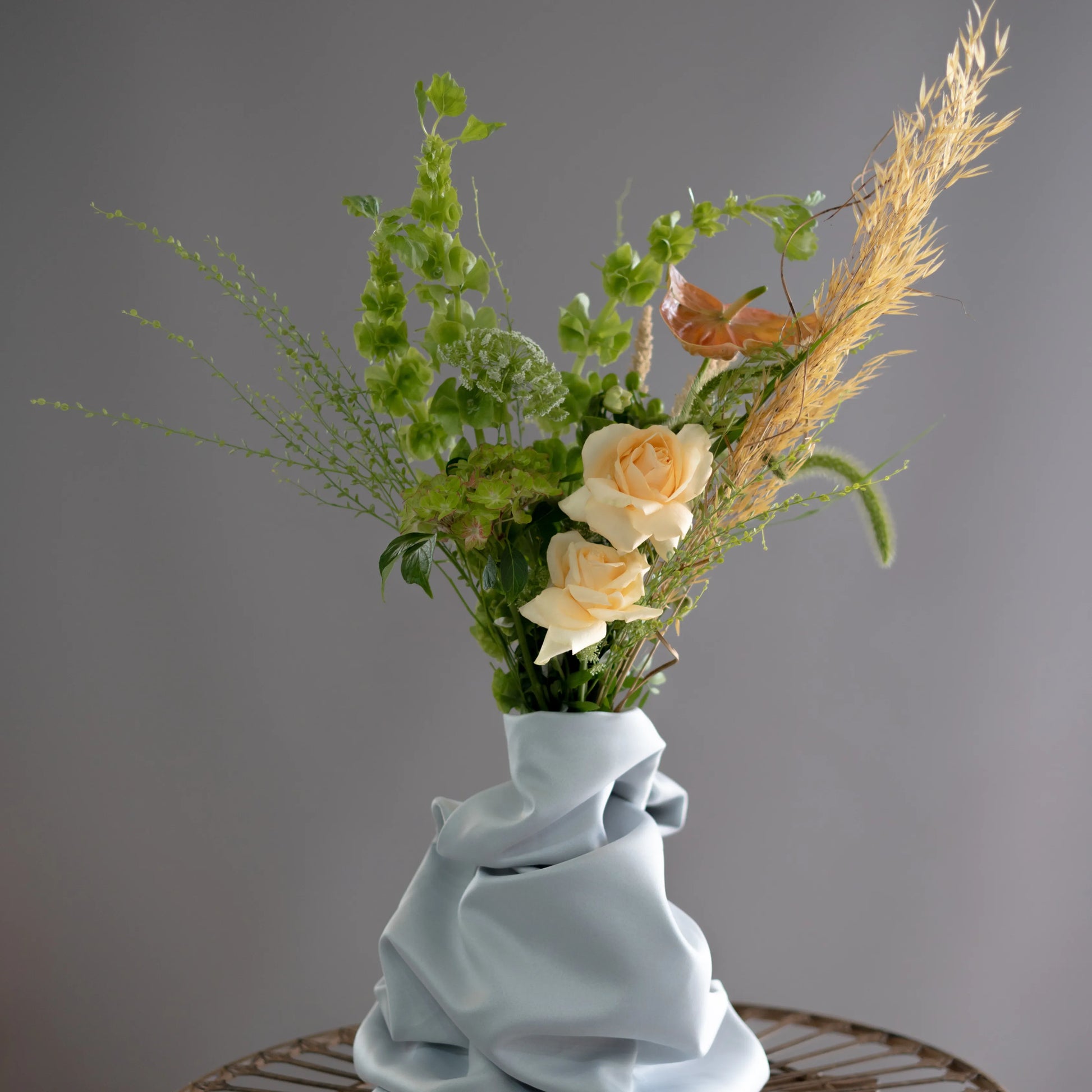 O ramo “Reflexões” é uma elegante combinação de tons verde-creme e bege, complementados por ervas campestres e delicadas rosas de cor bege. Este ramo personifica a tranquilidade e a reflexão, despertando memórias calorosas e sonhos sobre o futuro. Os elementos naturais e as cores suaves criam uma atmosfera de paz e harmonia, ideal para quem aprecia a beleza da natureza e momentos de silêncio.