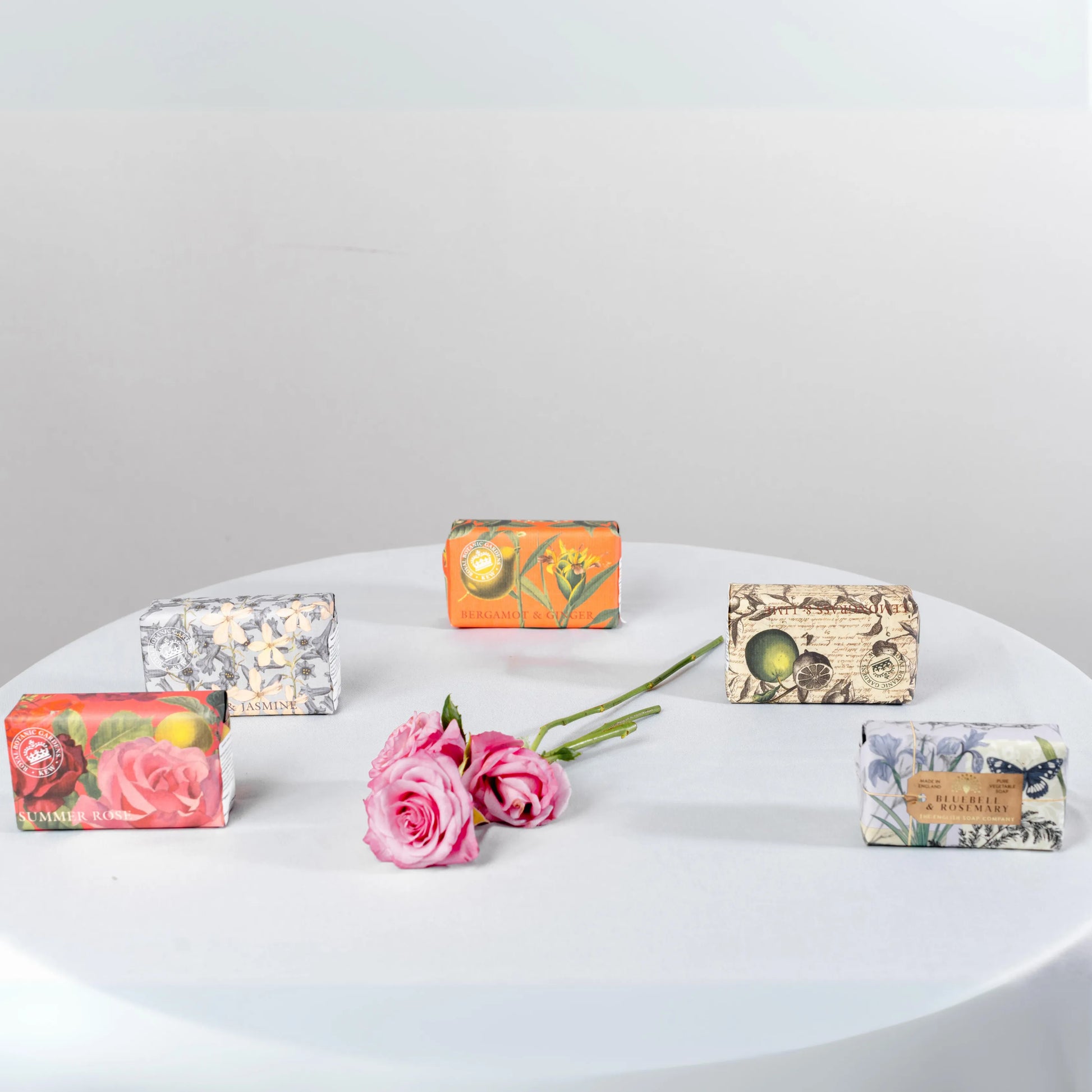 Descubra a elegância da natureza com os sabonetes artesanais da Royal Botanic Gardens. Cada sabonete é meticulosamente criado com ingredientes de origem natural, inspirado pelas fragrâncias ricas e diversas dos famosos jardins botânicos. Escolha entre uma variedade de aromas encantadores, desde a suavidade floral da lavanda e jasmim, o frescor cítrico do limão siciliano, até a exuberância das notas herbais do alecrim e menta. Cada barra proporciona uma experiência de banho única, deixando a pele limpa, macia e levemente perfumada. Perfeito para presentear ou transformar o seu ritual diário em um momento de puro prazer e bem-estar