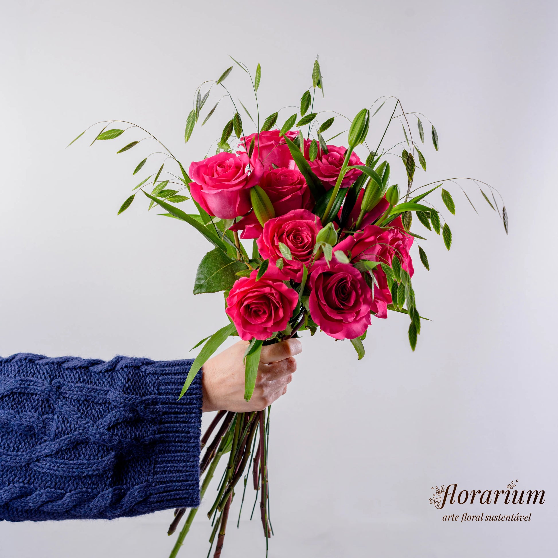 O amor tem o seu próprio tempo para florescer, e este ramo representa exatamente isso. As rosas rosa intenso expressam paixão e ternura, enquanto os lírios fechados simbolizam a promessa de sentimentos que ainda vão desabrochar. A aveia selvagem acrescenta um toque natural e espontâneo, tornando este ramo um presente perfeito para celebrar amores profundos e genuínos.