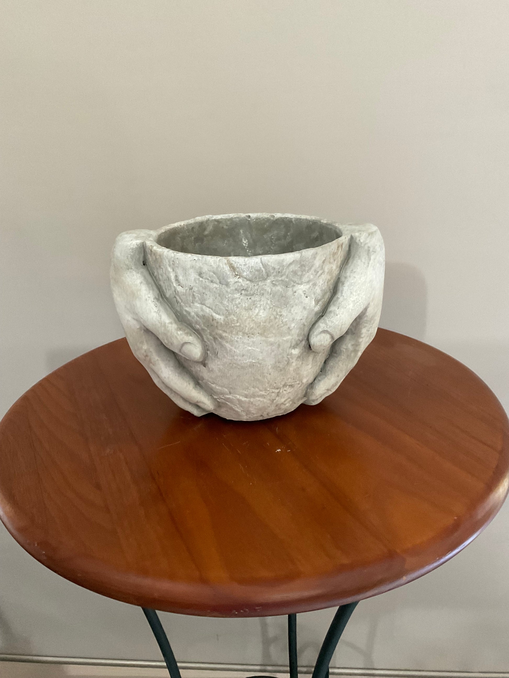 O contraste entre a textura crua do betão e a suavidade do gesto transmite uma sensação de equilíbrio entre força e delicadeza, tornando-o ideal para arranjos minimalistas, suculentas ou flores delicadas. Perfeito para interiores modernos, zen ou com personalidade artística.